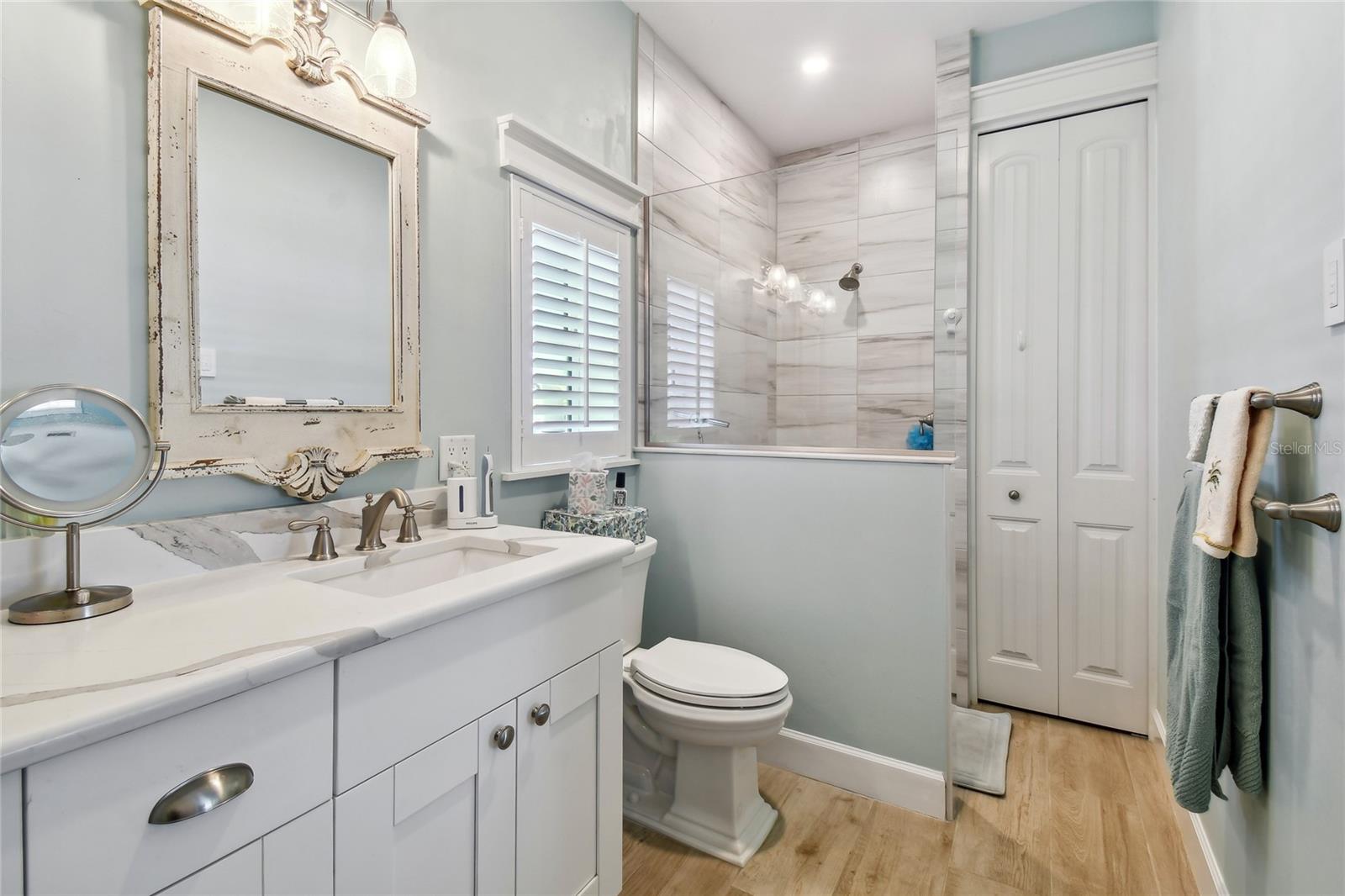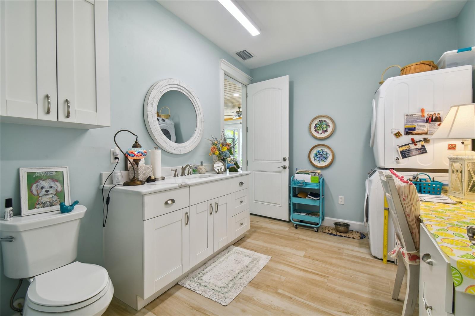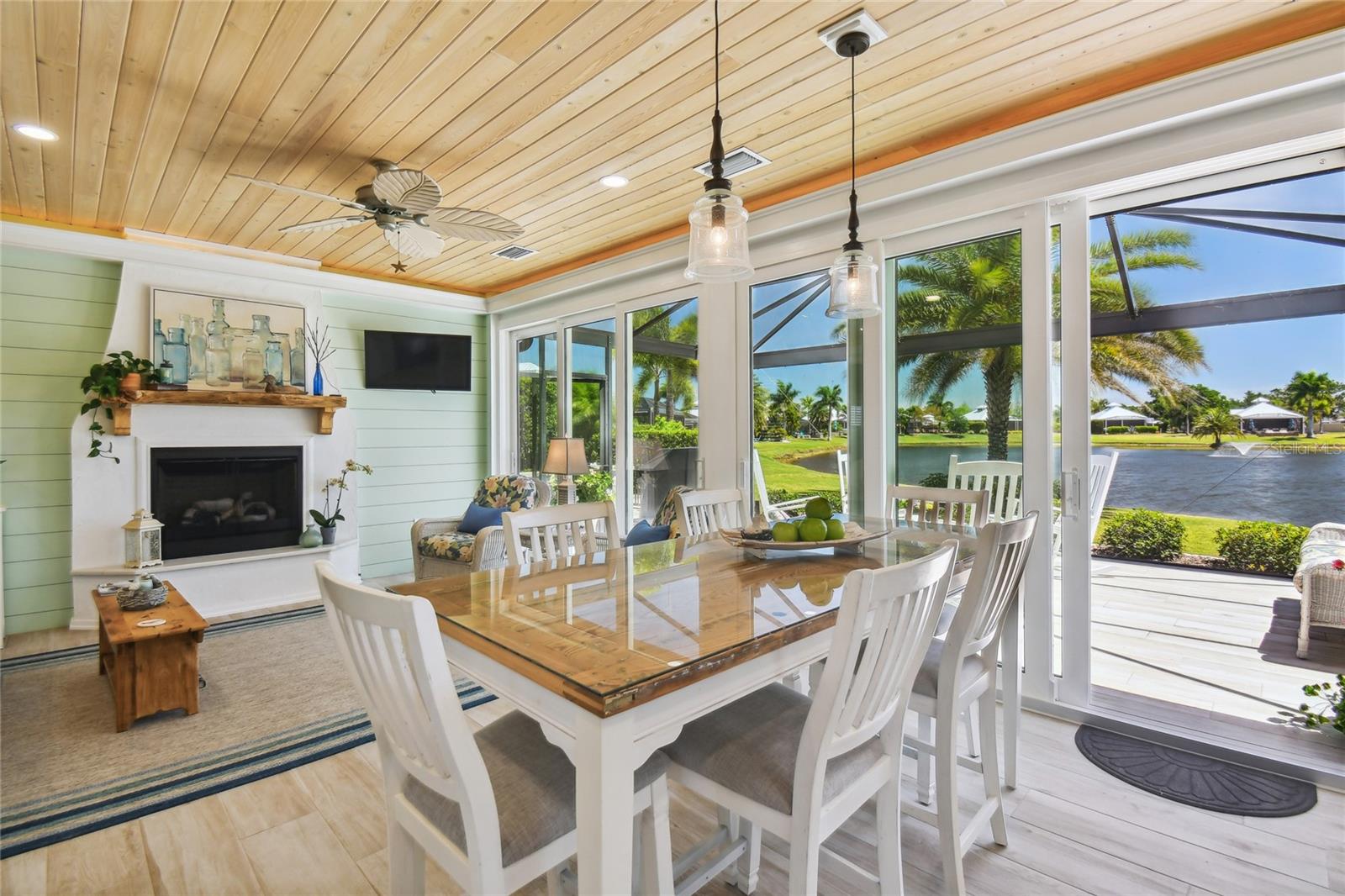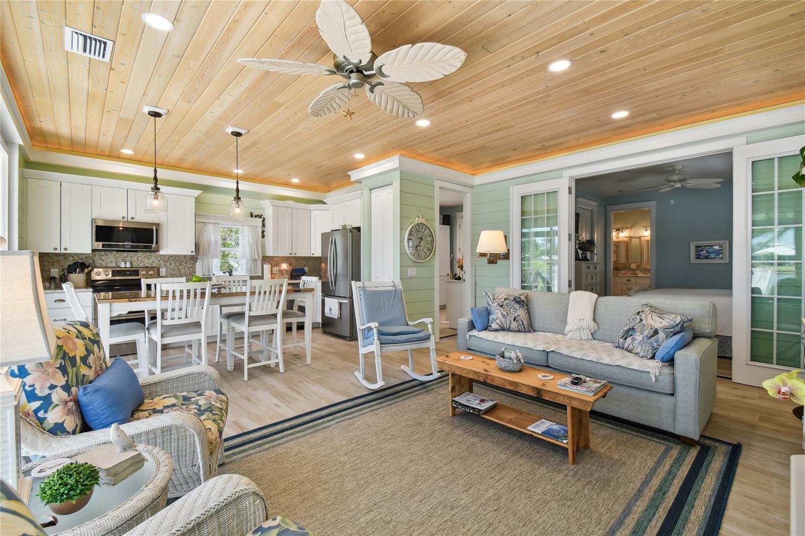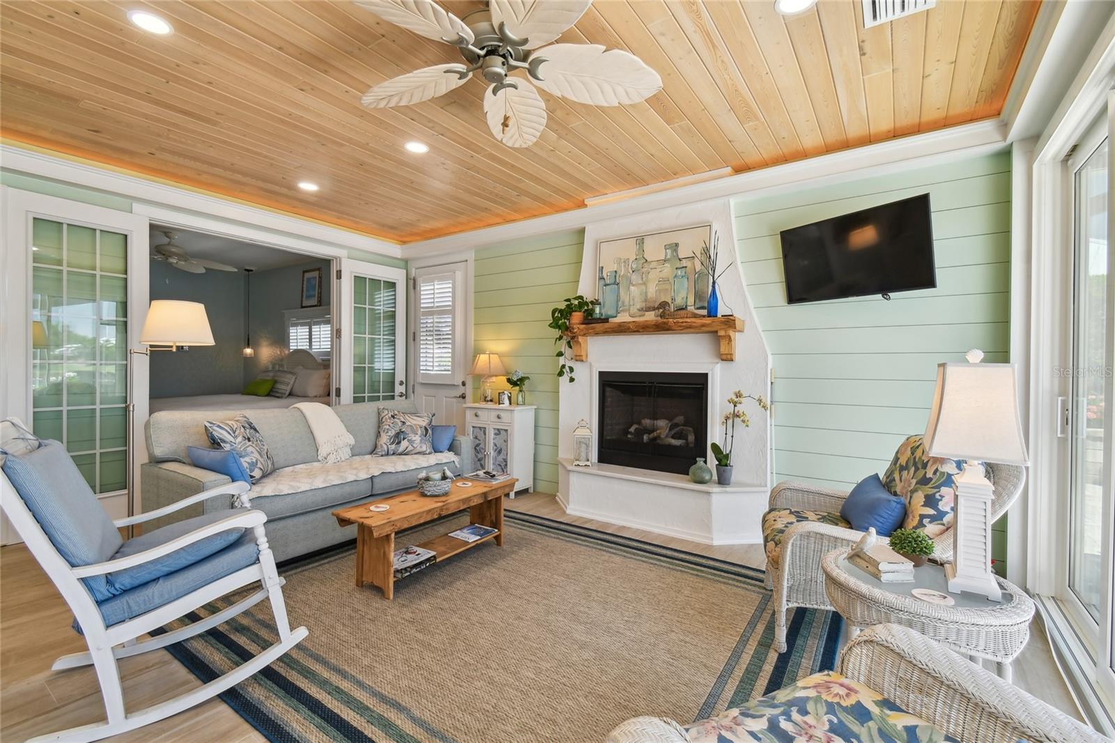 Experimente o luxo nesta casita excepcional no Thornton Creek Motorcoach Resort. Esta propriedade única, uma das poucas com um banheiro e meio, oferece mais de 1.000 pés quadrados de área de estar com ar-condicionado, além de uma espaçosa varanda com tela de 375 pés quadrados, perfeita para desfrutar de vistas serenas da orla. Situada à beira-mar, esta casita oferece vistas tranquilas e pitorescas que fazem com que cada dia pareça férias. A exuberante paisagem tropical aumenta o charme e apelo da propriedade. Ao entrar, você encontrará uma convidativa sala de estar e uma cozinha completa equipada com eletrodomésticos de última geração e espaço suficiente para uma mesa de jantar grande. Grandes controles deslizantes conectam perfeitamente a sala de estar e a cozinha à varanda, combinando a vida interna e externa. O AC central garante conforto o ano todo, enquanto a lareira a gás dá um toque aconchegante. As elegantes portas francesas do quarto abrem-se para a sala de estar, realçando a sensação de abertura da casa. A grande sala bônus inclui um lavabo, uma lavadora e secadora empilháveis e pode ser usada como escritório ou sala de artesanato. Além disso, existe uma garagem climatizada para carrinhos de golfe para mais arrumação. Abra a porta para uma vida excepcional em ônibus com esta casita deslumbrante. Não perca esta rara oportunidade de possuir um pedaço do paraíso.