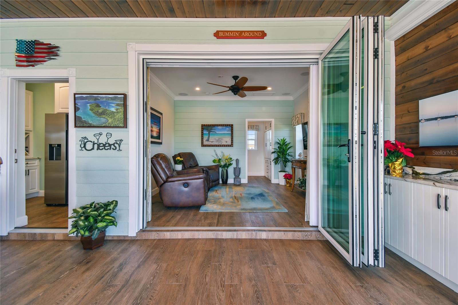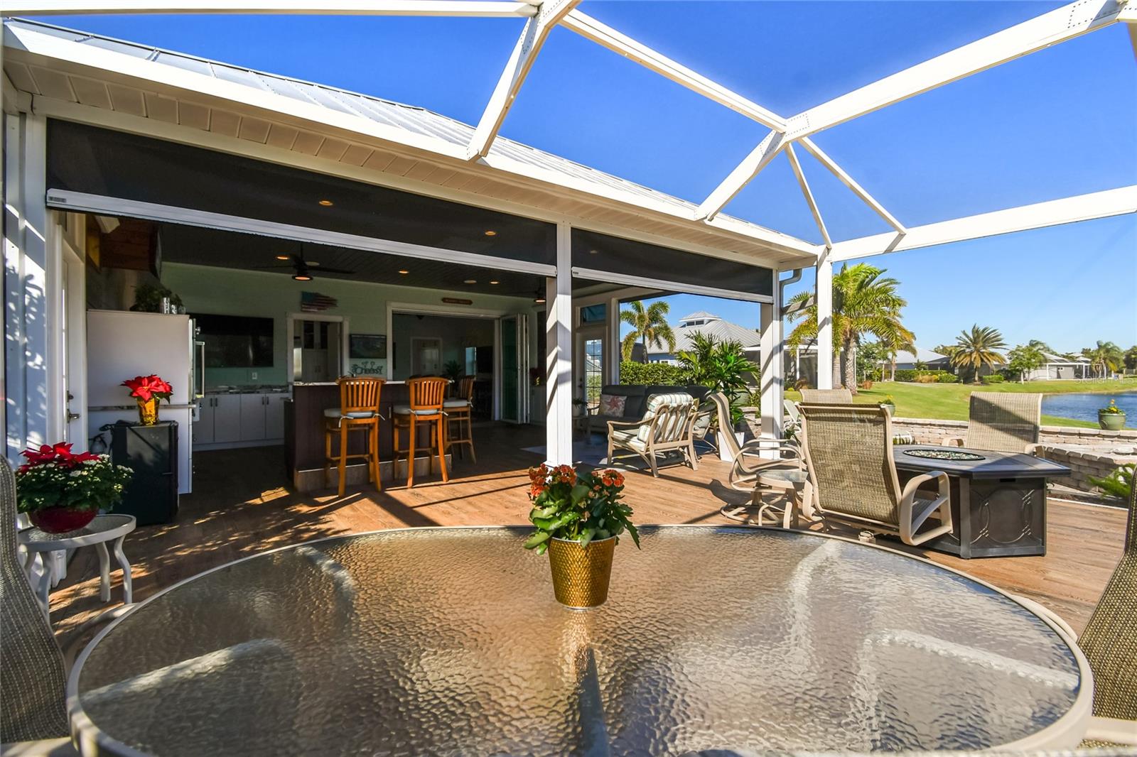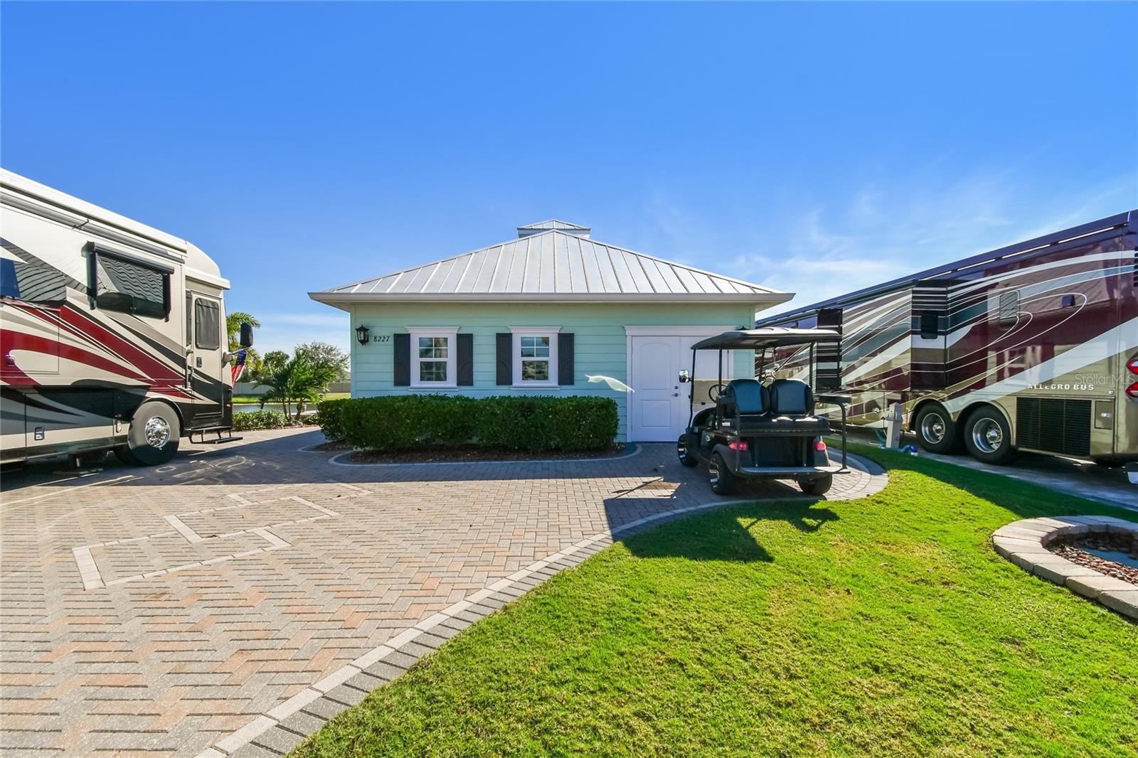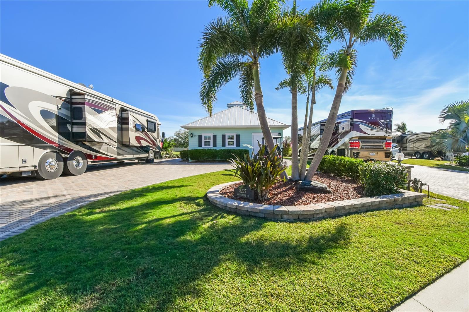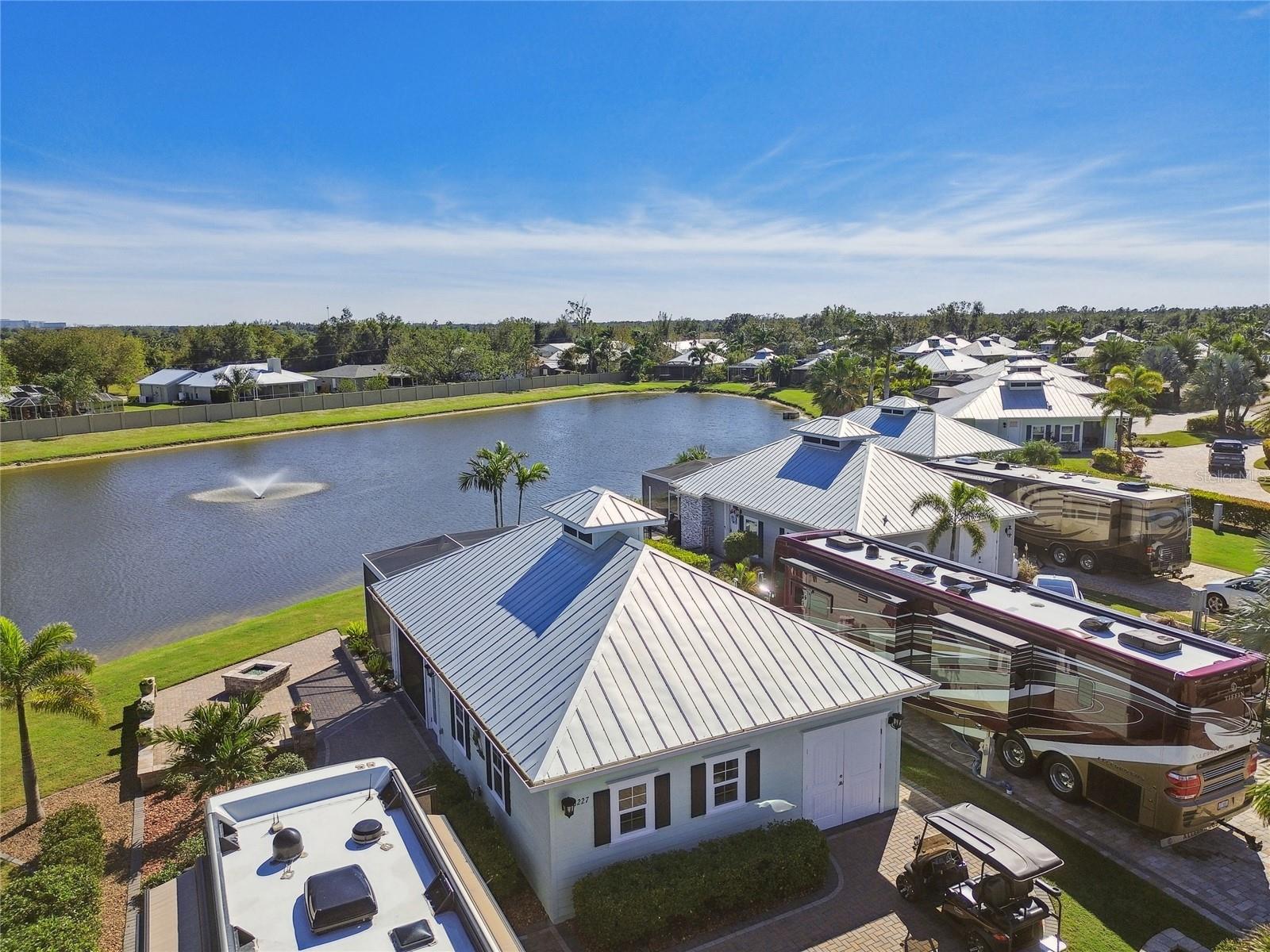 Descubra a combinação perfeita de luxo e conforto com esta casita bem conservada no Thornton Creek Motorcoach Resort. Esta casita oferece 863 pés quadrados de área útil com ar-condicionado e 1.360 pés quadrados no total, com um layout projetado para conveniência e estilo. Um jardim frontal com paisagismo exuberante, adornado com palmeiras e vegetação tropical, cria uma entrada convidativa para este retiro à beira-mar. Um grande pátio pavimentado na parte traseira da propriedade oferece uma fogueira e vistas serenas do mar, emoldurado por um muro de contenção. O pátio flui perfeitamente para a varanda com tela, que inclui outra fogueira a gás cercada por assentos e uma mesa de jantar na extremidade oposta. Da varanda, entre na cozinha e na área de estar principal, onde tetos de tábuas de madeira e telas motorizadas de Kevlar oferecem proteção o ano todo. A cozinha gourmet possui eletrodomésticos de última geração, incluindo forno Viking, churrasqueira e fogão embutidos, pia de fazenda e uma ilha espaçosa com banquetas envolventes. A despensa do mordomo acrescenta ainda mais armazenamento e inclui uma geladeira e armários embutidos extras. Os controles deslizantes em estilo acordeão abrem para um espaço flexível que funciona perfeitamente como um quarto ou sala de estar. O banheiro inclui um box amplo de azulejos, uma penteadeira grande e muito espaço de armazenamento embutido para uma sensação elegante e organizada. A garagem do carrinho de golfe inclui lavadora e secadora, pia e muitos armários embutidos para todas as suas necessidades de armazenamento. Agende seu tour privado hoje e experimente o melhor da vida luxuosa em uma casita!