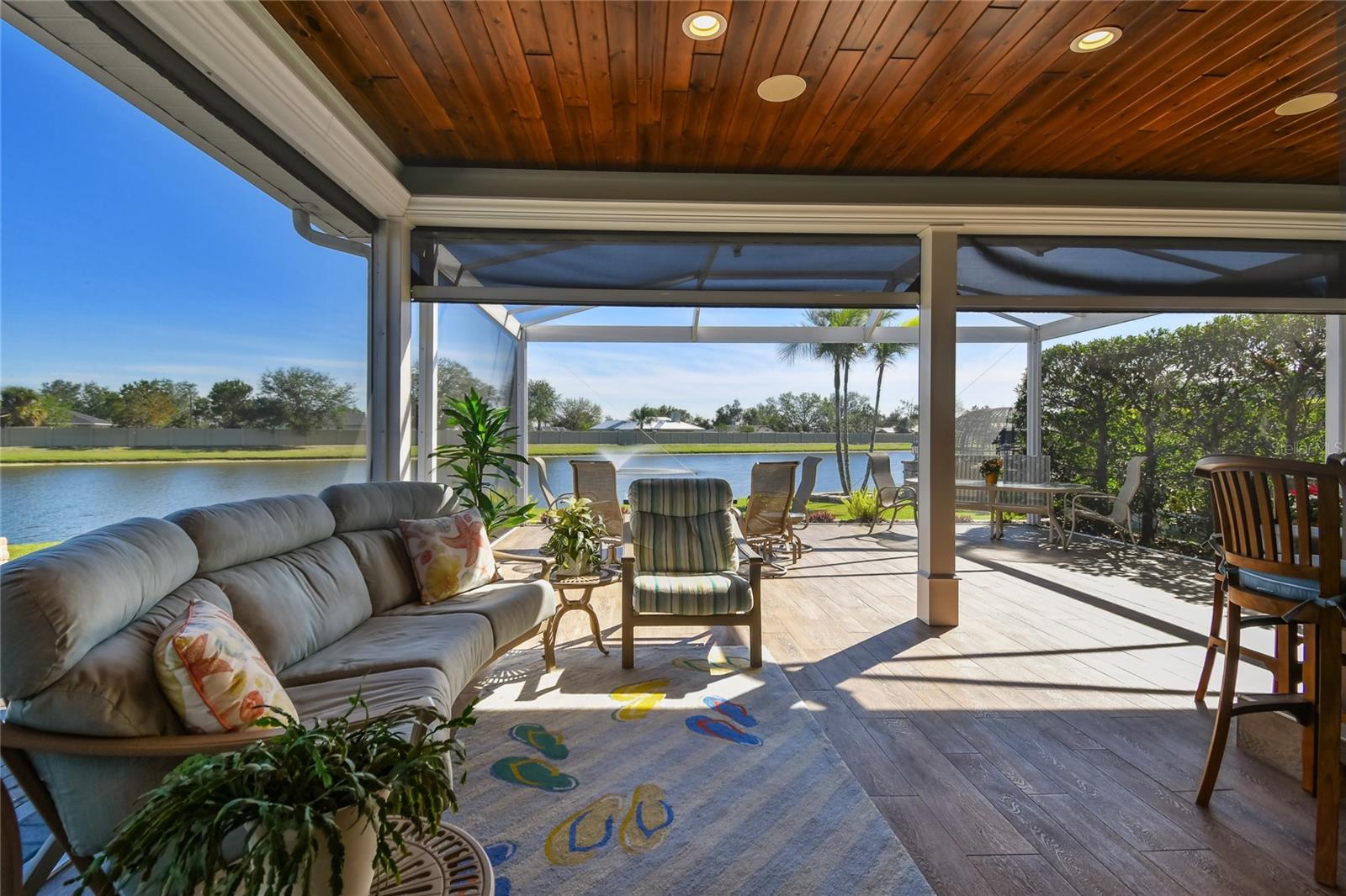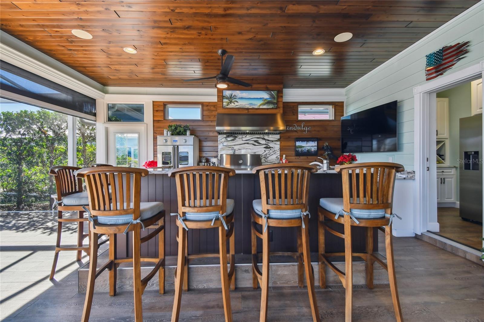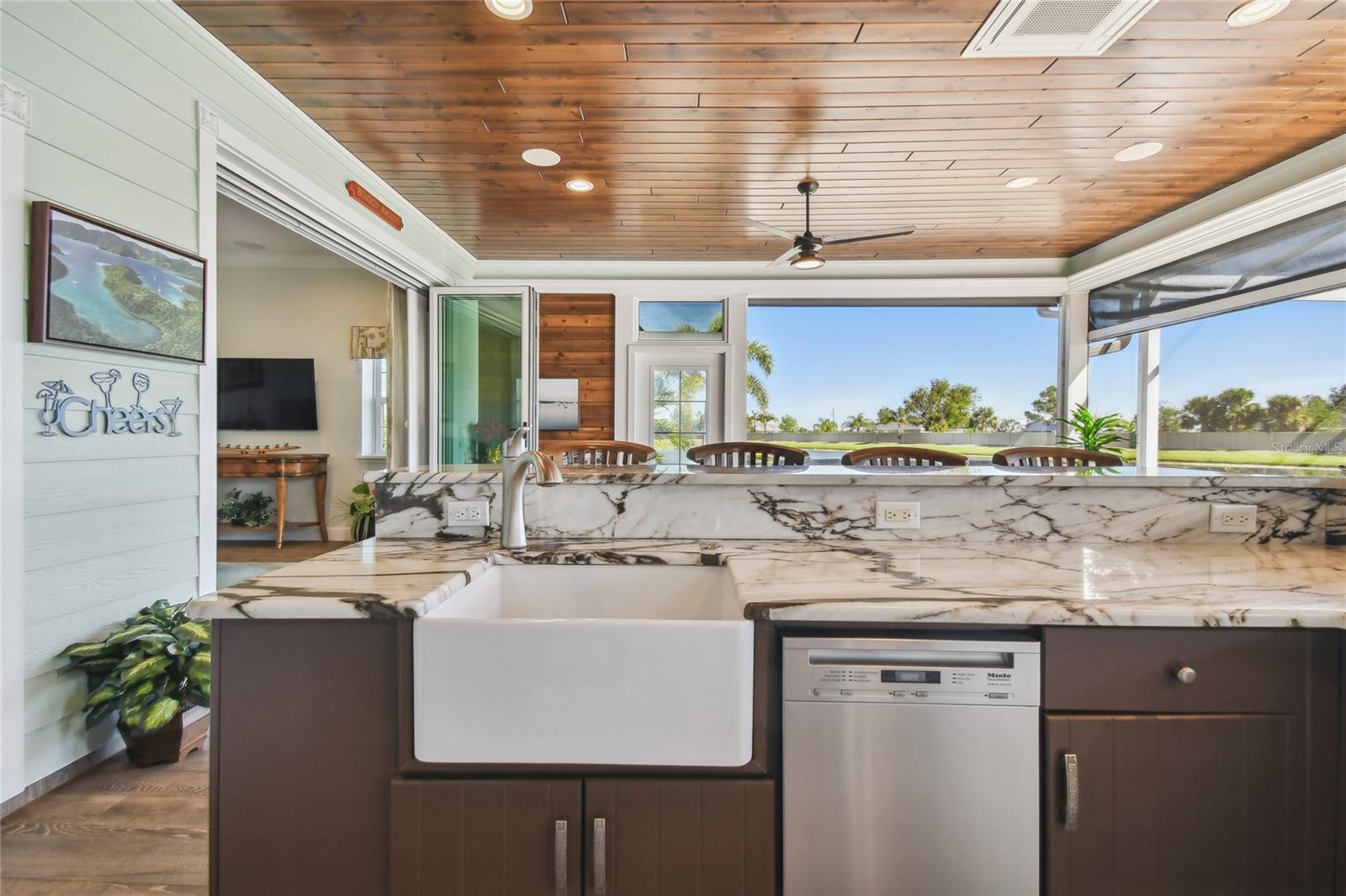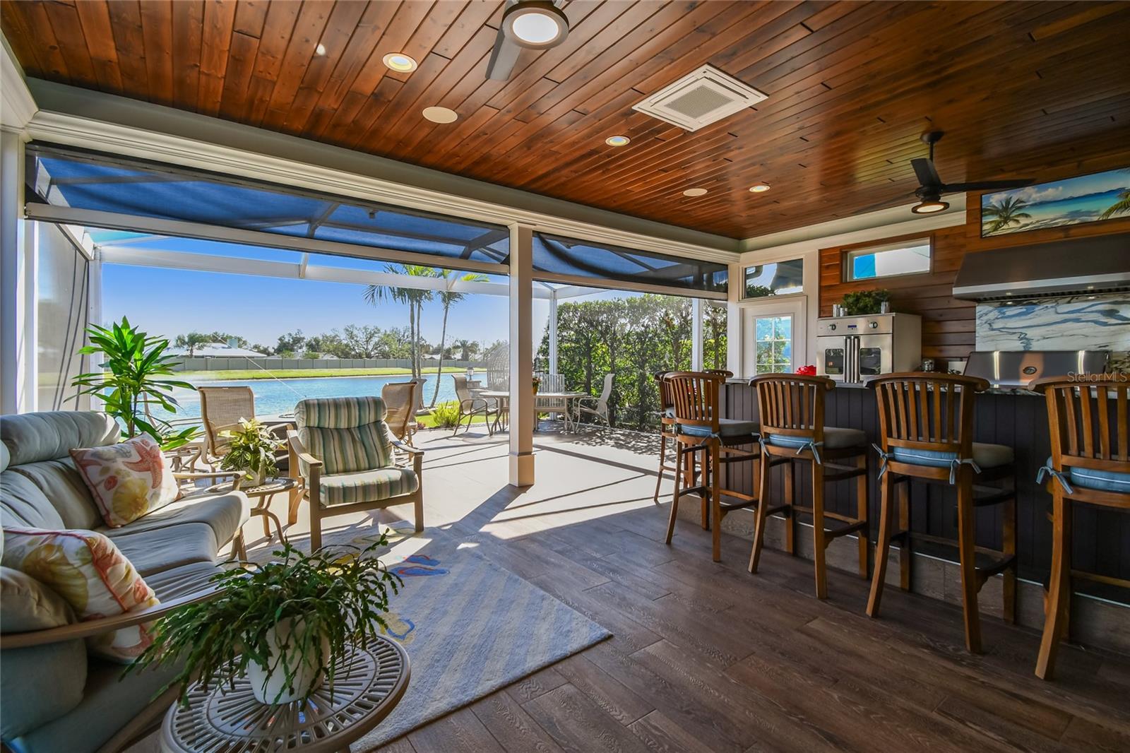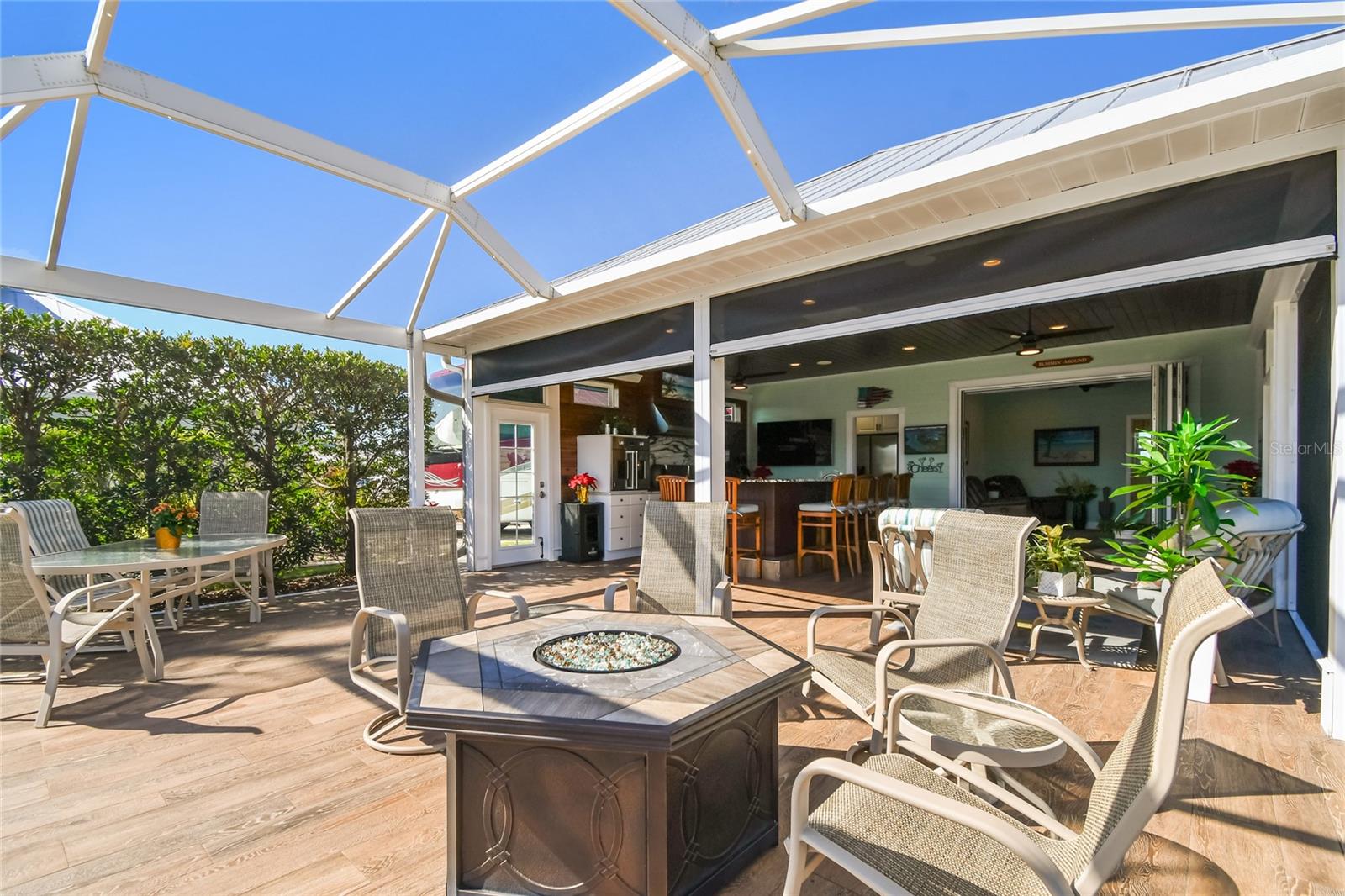 Descubra a combinação perfeita de luxo e conforto com esta casita bem conservada no Thornton Creek Motorcoach Resort. Esta casita oferece 863 pés quadrados de área útil com ar-condicionado e 1.360 pés quadrados no total, com um layout projetado para conveniência e estilo. Um jardim frontal com paisagismo exuberante, adornado com palmeiras e vegetação tropical, cria uma entrada convidativa para este retiro à beira-mar. Um grande pátio pavimentado na parte traseira da propriedade oferece uma fogueira e vistas serenas do mar, emoldurado por um muro de contenção. O pátio flui perfeitamente para a varanda com tela, que inclui outra fogueira a gás cercada por assentos e uma mesa de jantar na extremidade oposta. Da varanda, entre na cozinha e na área de estar principal, onde tetos de tábuas de madeira e telas motorizadas de Kevlar oferecem proteção o ano todo. A cozinha gourmet possui eletrodomésticos de última geração, incluindo forno Viking, churrasqueira e fogão embutidos, pia de fazenda e uma ilha espaçosa com banquetas envolventes. A despensa do mordomo acrescenta ainda mais armazenamento e inclui uma geladeira e armários embutidos extras. Os controles deslizantes em estilo acordeão abrem para um espaço flexível que funciona perfeitamente como um quarto ou sala de estar. O banheiro inclui um box amplo de azulejos, uma penteadeira grande e muito espaço de armazenamento embutido para uma sensação elegante e organizada. A garagem do carrinho de golfe inclui lavadora e secadora, pia e muitos armários embutidos para todas as suas necessidades de armazenamento. Agende seu tour privado hoje e experimente o melhor da vida luxuosa em uma casita!