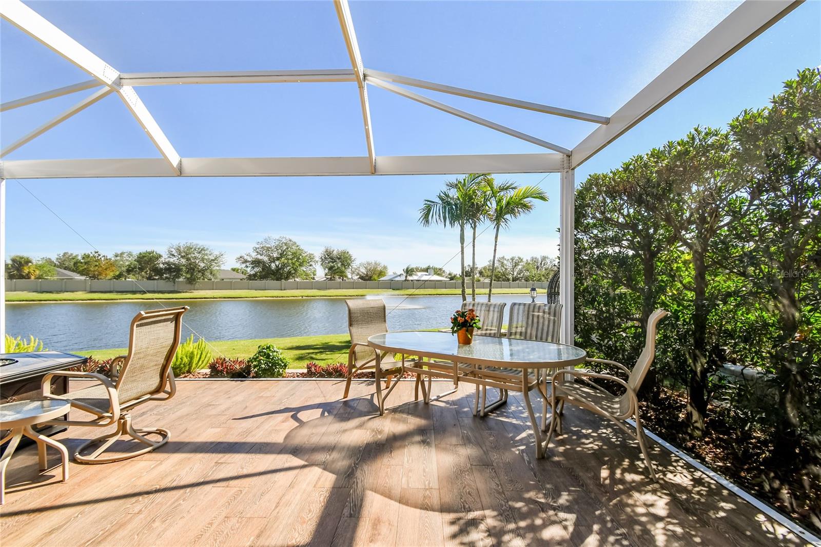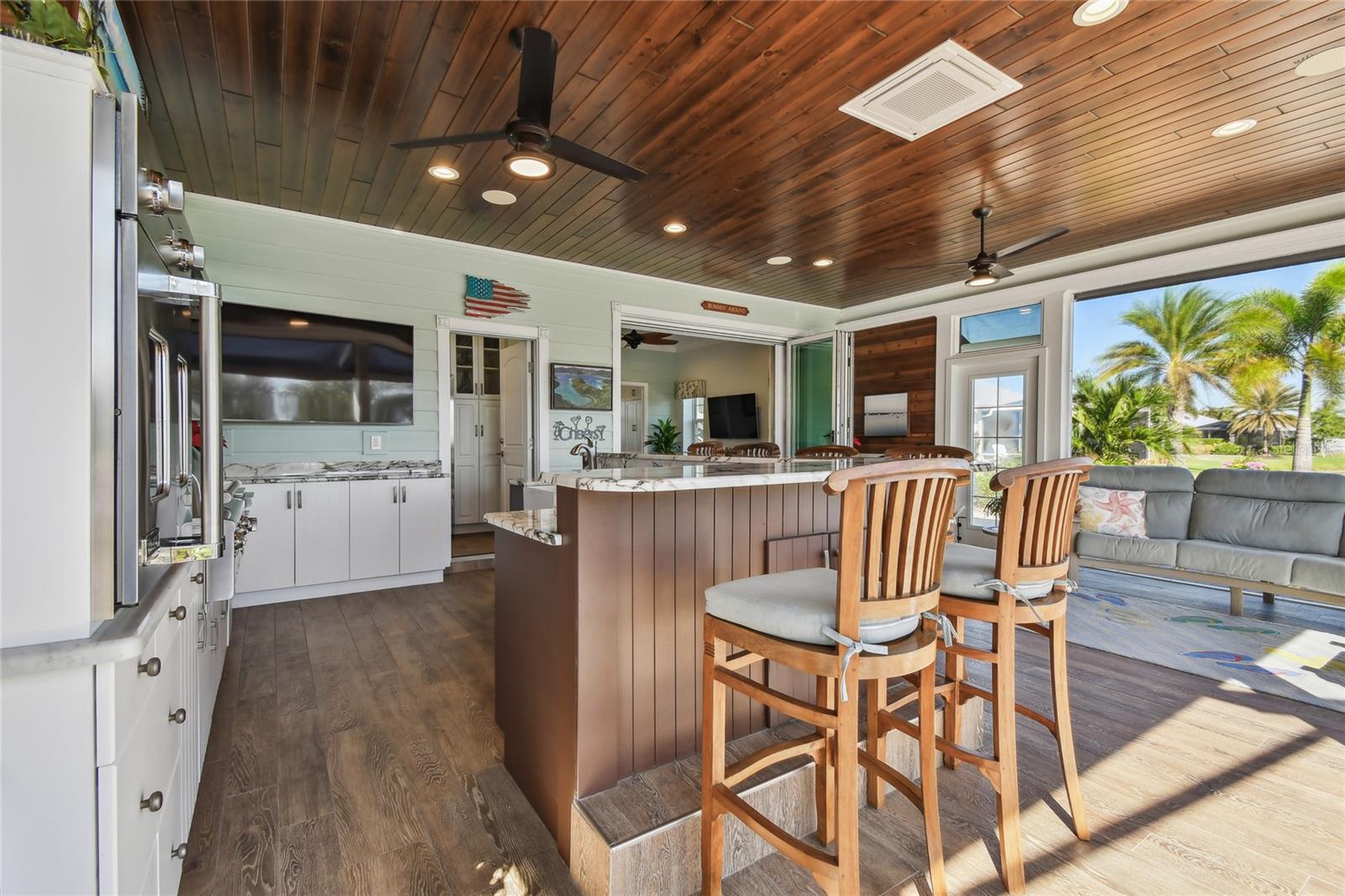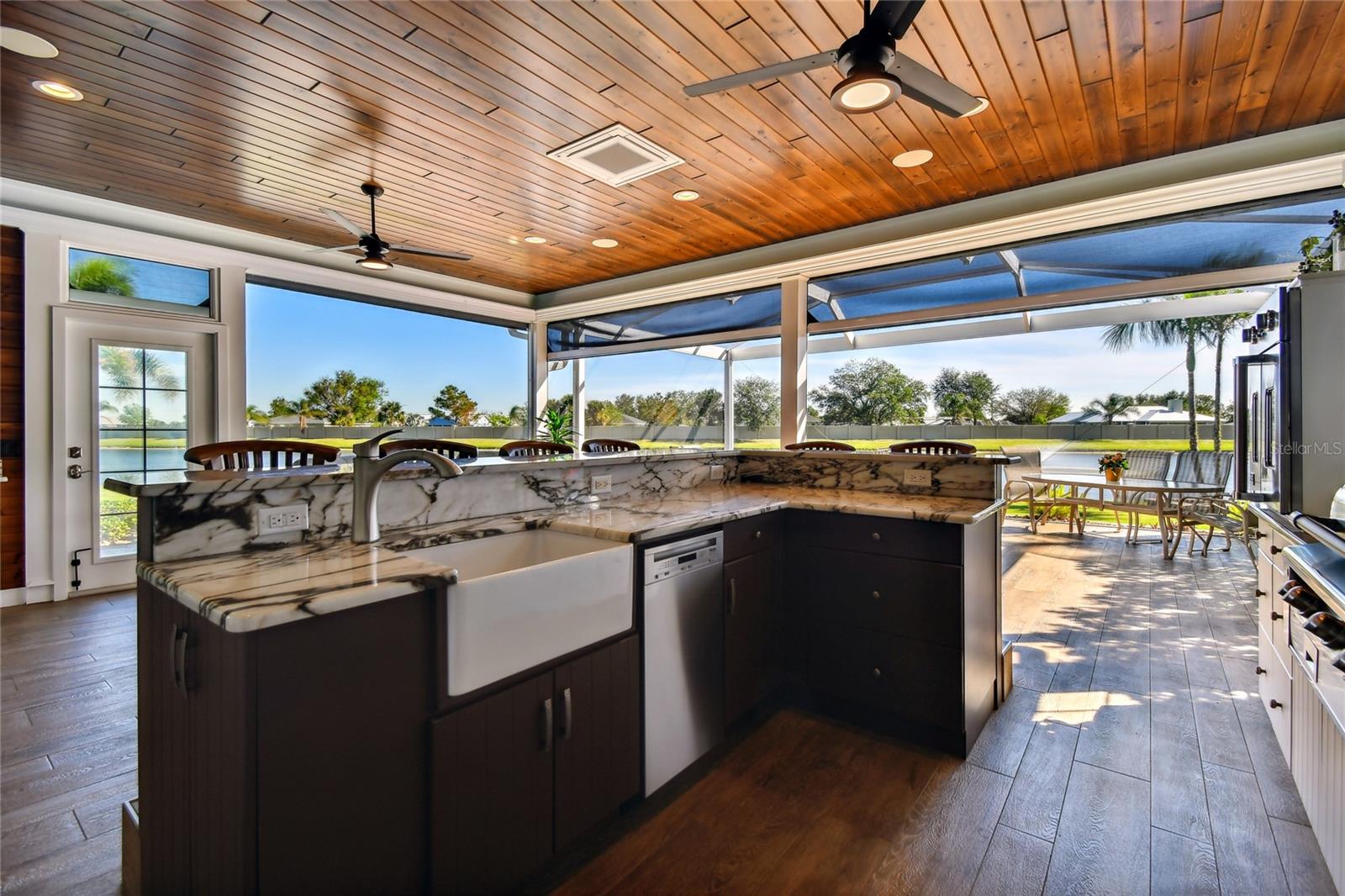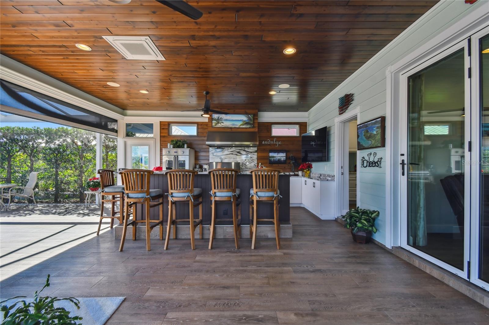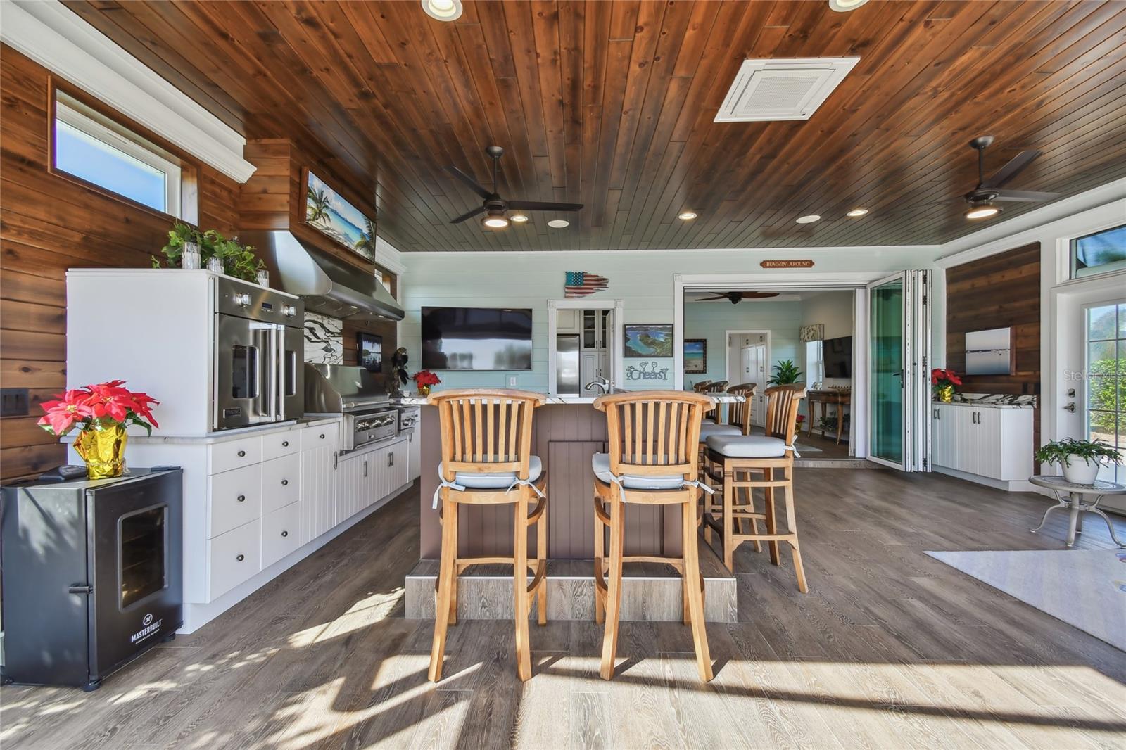Descubra a combinação perfeita de luxo e conforto com esta casita bem conservada no Thornton Creek Motorcoach Resort. Esta casita oferece 863 pés quadrados de área útil com ar-condicionado e 1.360 pés quadrados no total, com um layout projetado para conveniência e estilo. Um jardim frontal com paisagismo exuberante, adornado com palmeiras e vegetação tropical, cria uma entrada convidativa para este retiro à beira-mar. Um grande pátio pavimentado na parte traseira da propriedade oferece uma fogueira e vistas serenas do mar, emoldurado por um muro de contenção. O pátio flui perfeitamente para a varanda com tela, que inclui outra fogueira a gás cercada por assentos e uma mesa de jantar na extremidade oposta. Da varanda, entre na cozinha e na área de estar principal, onde tetos de tábuas de madeira e telas motorizadas de Kevlar oferecem proteção o ano todo. A cozinha gourmet possui eletrodomésticos de última geração, incluindo forno Viking, churrasqueira e fogão embutidos, pia de fazenda e uma ilha espaçosa com banquetas envolventes. A despensa do mordomo acrescenta ainda mais armazenamento e inclui uma geladeira e armários embutidos extras. Os controles deslizantes em estilo acordeão abrem para um espaço flexível que funciona perfeitamente como um quarto ou sala de estar. O banheiro inclui um box amplo de azulejos, uma penteadeira grande e muito espaço de armazenamento embutido para uma sensação elegante e organizada. A garagem do carrinho de golfe inclui lavadora e secadora, pia e muitos armários embutidos para todas as suas necessidades de armazenamento. Agende seu tour privado hoje e experimente o melhor da vida luxuosa em uma casita!