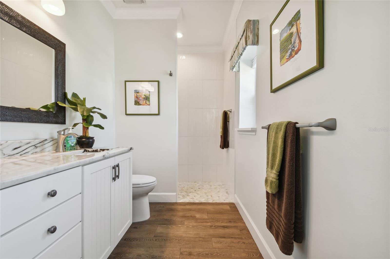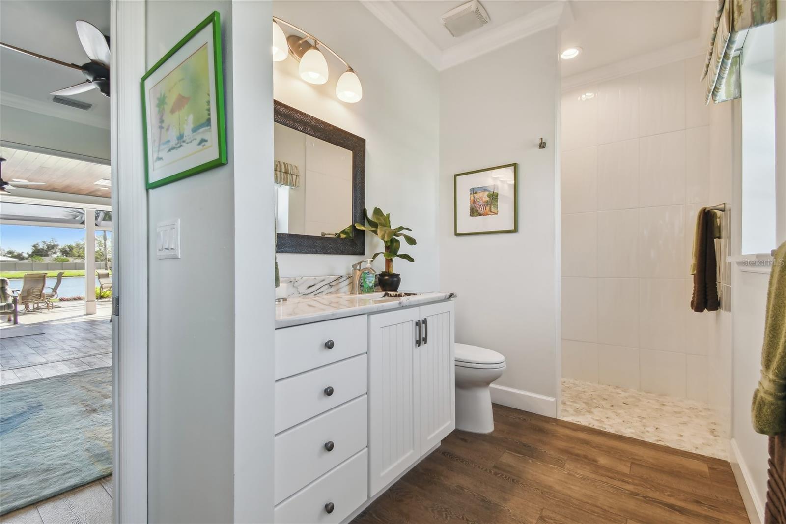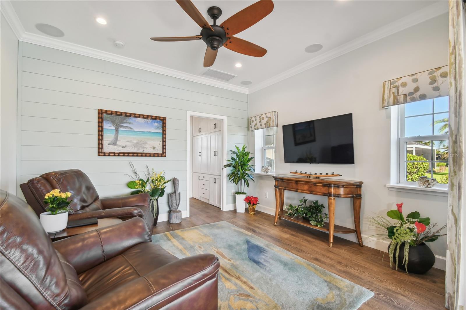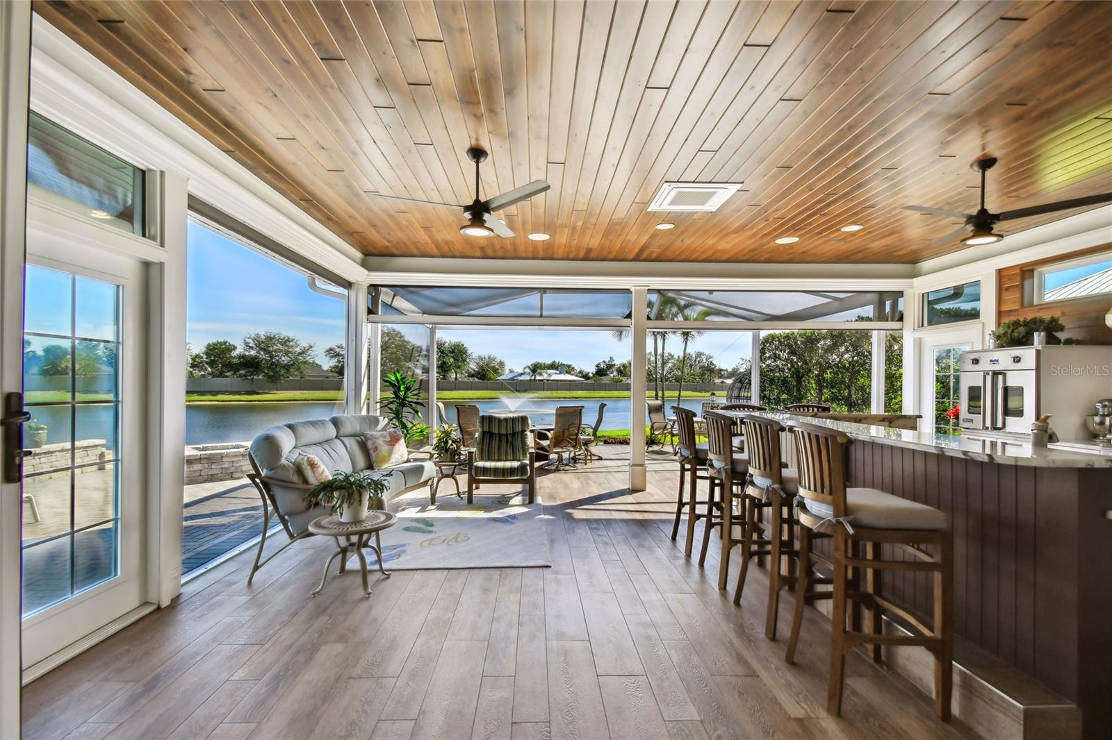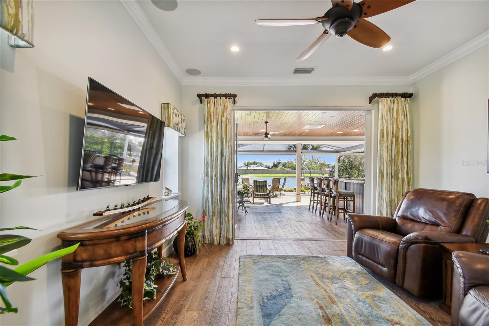 Descubra a combinação perfeita de luxo e conforto com esta casita bem conservada no Thornton Creek Motorcoach Resort. Esta casita oferece 863 pés quadrados de área útil com ar-condicionado e 1.360 pés quadrados no total, com um layout projetado para conveniência e estilo. Um jardim frontal com paisagismo exuberante, adornado com palmeiras e vegetação tropical, cria uma entrada convidativa para este retiro à beira-mar. Um grande pátio pavimentado na parte traseira da propriedade oferece uma fogueira e vistas serenas do mar, emoldurado por um muro de contenção. O pátio flui perfeitamente para a varanda com tela, que inclui outra fogueira a gás cercada por assentos e uma mesa de jantar na extremidade oposta. Da varanda, entre na cozinha e na área de estar principal, onde tetos de tábuas de madeira e telas motorizadas de Kevlar oferecem proteção o ano todo. A cozinha gourmet possui eletrodomésticos de última geração, incluindo forno Viking, churrasqueira e fogão embutidos, pia de fazenda e uma ilha espaçosa com banquetas envolventes. A despensa do mordomo acrescenta ainda mais armazenamento e inclui uma geladeira e armários embutidos extras. Os controles deslizantes em estilo acordeão abrem para um espaço flexível que funciona perfeitamente como um quarto ou sala de estar. O banheiro inclui um box amplo de azulejos, uma penteadeira grande e muito espaço de armazenamento embutido para uma sensação elegante e organizada. A garagem do carrinho de golfe inclui lavadora e secadora, pia e muitos armários embutidos para todas as suas necessidades de armazenamento. Agende seu tour privado hoje e experimente o melhor da vida luxuosa em uma casita!
