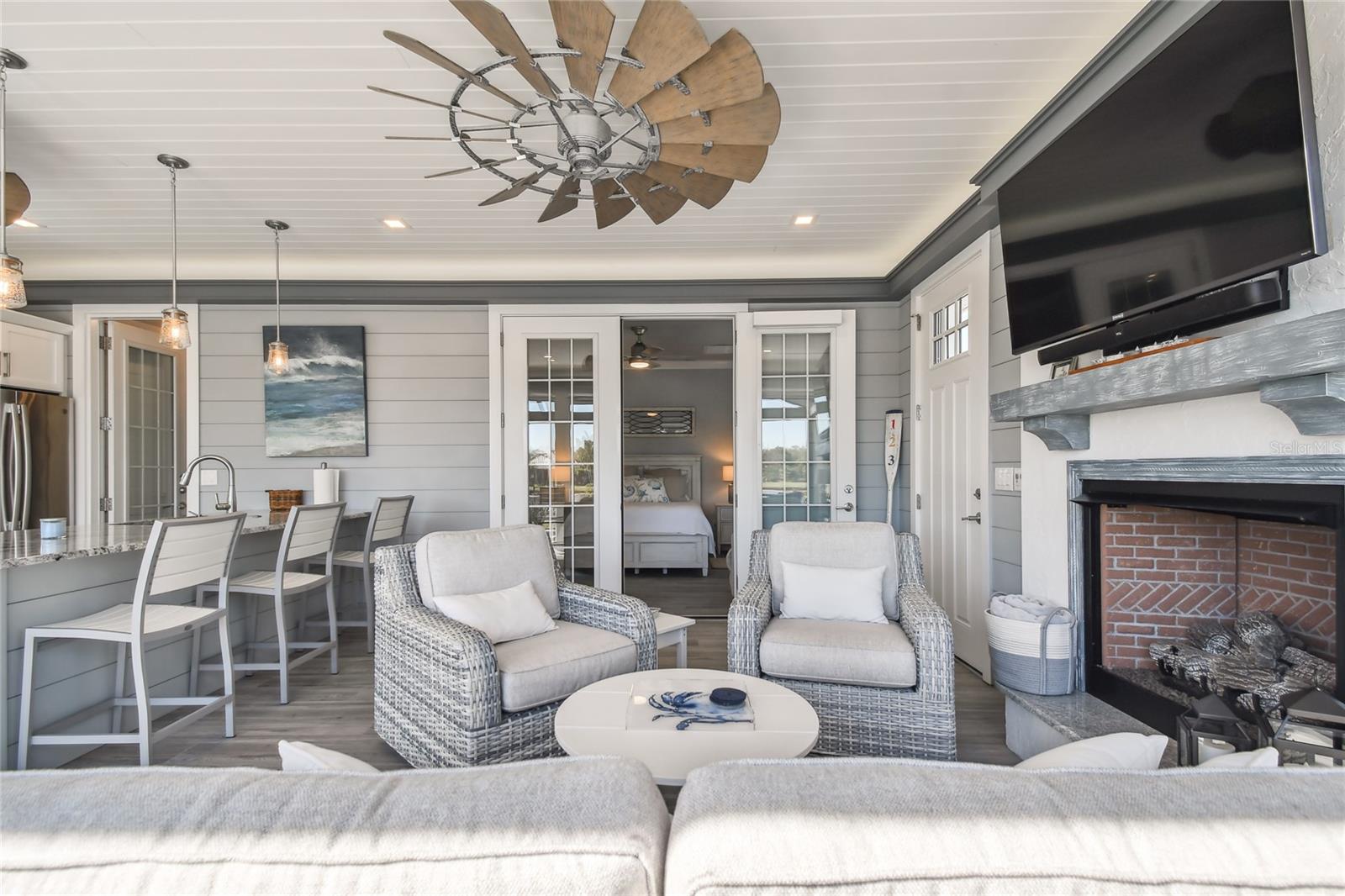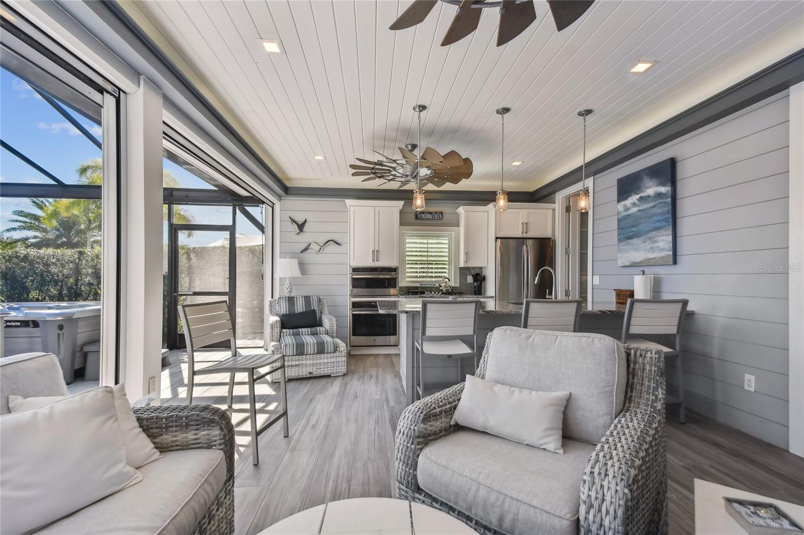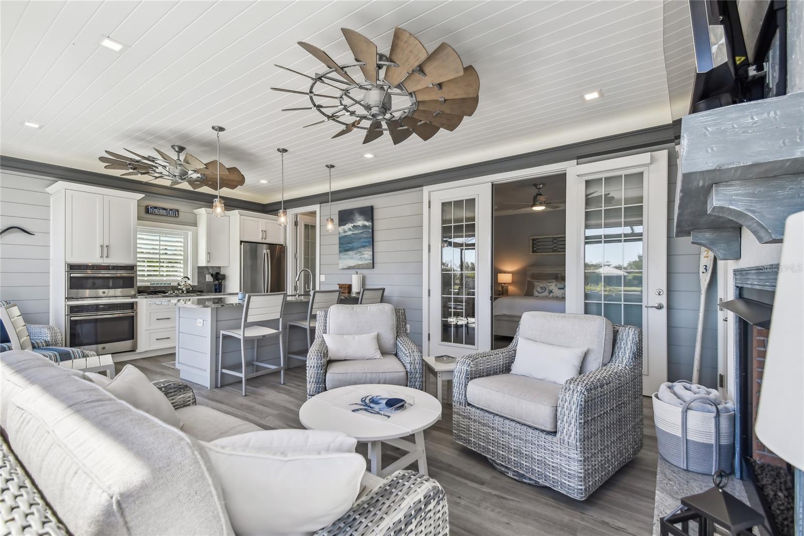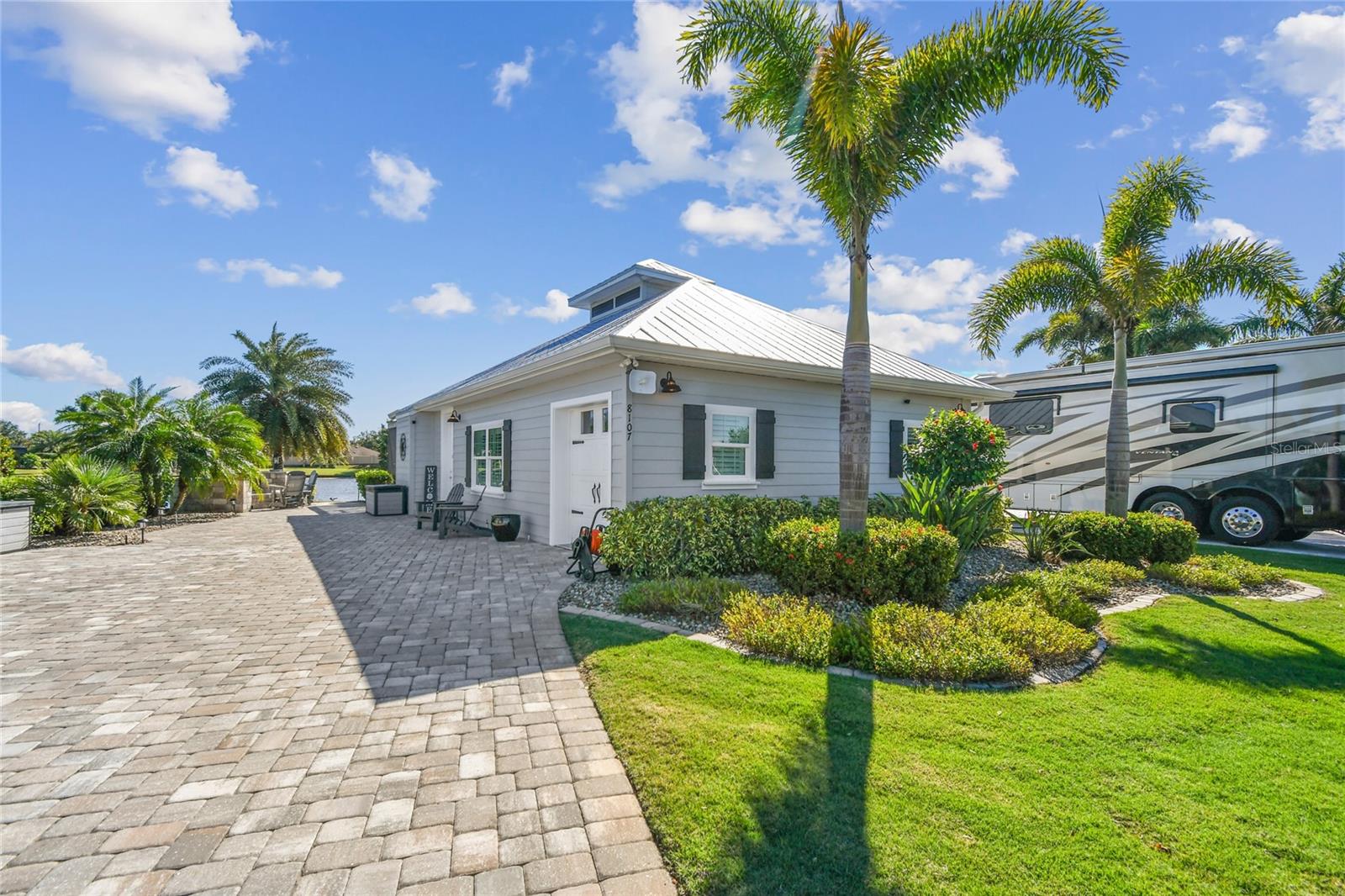 Venha experimentar o melhor da vida em casita de luxo no Lote 28. A grande plataforma pavimentada acomoda ônibus de qualquer tamanho com facilidade, enquanto um caminho serpenteia ao redor da casita, levando a uma aconchegante fogueira e área de estar. Rodeado por palmeiras ondulantes e vistas tranquilas para o mar, este espaço ao ar livre é o local perfeito para relaxar. Entre em uma varanda acolhedora com tela completa, banheira de hidromassagem e lareira a gás com assentos. Telas motorizadas de Kevlar contra furacões acrescentam conforto e proteção, combinando perfeitamente a varanda com a área de estar principal. Projetada com estilo e função em mente, a cozinha possui fogão a gás, forno embutido, micro-ondas, lava-louças e geladeira com porta francesa. A ilha com tampo de granito e bancos de bar serve como peça central para entretenimento. Com 764 pés quadrados com ar condicionado, esta casita cuidadosamente projetada oferece tudo que você precisa para um retiro luxuoso. O espaçoso quarto abre através de elegantes portas francesas para vistas deslumbrantes sobre o mar e a área de estar principal. Um banheiro indulgente o aguarda, completo com box amplo, acabamentos impecáveis e espaço para relaxar. Uma lavanderia dedicada com lavadora, secadora, pia agrícola e armários personalizados garantem comodidade prática. Para armazenamento adicional, a garagem do carrinho de golfe possui uma porta de enrolar e espaço superior embutido. Agende uma visita hoje e descubra porque esta propriedade excepcional é o refúgio perfeito.