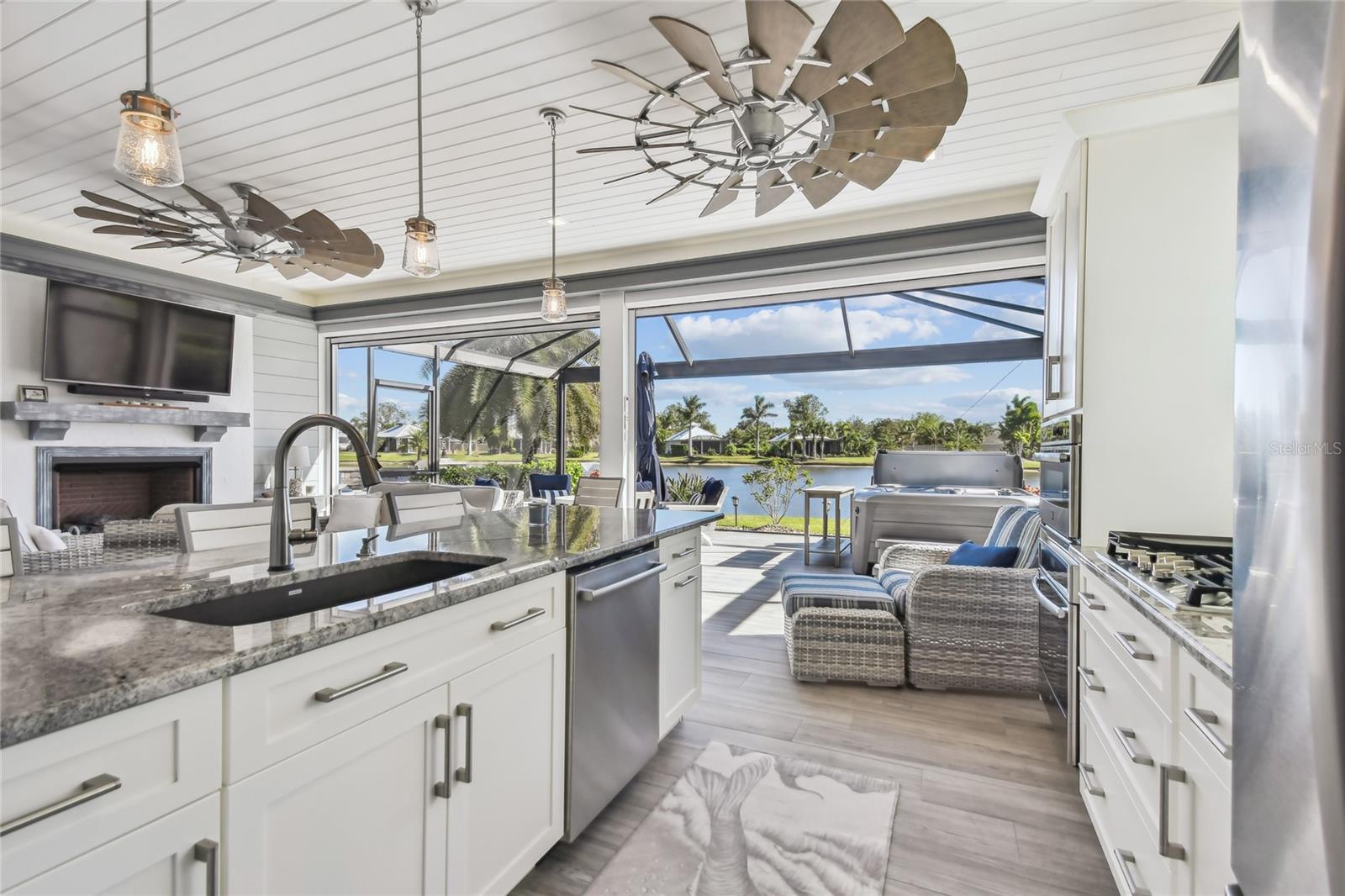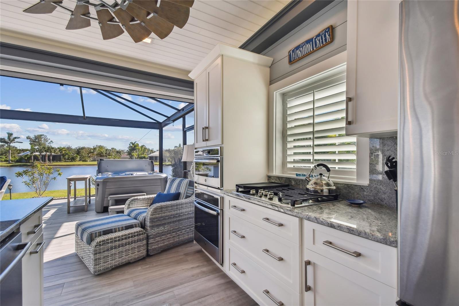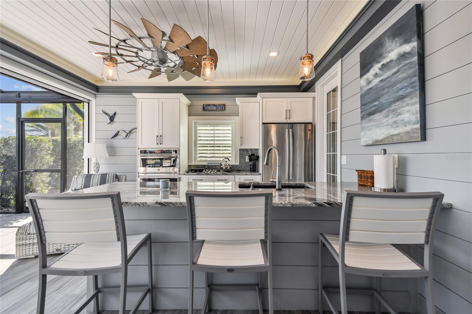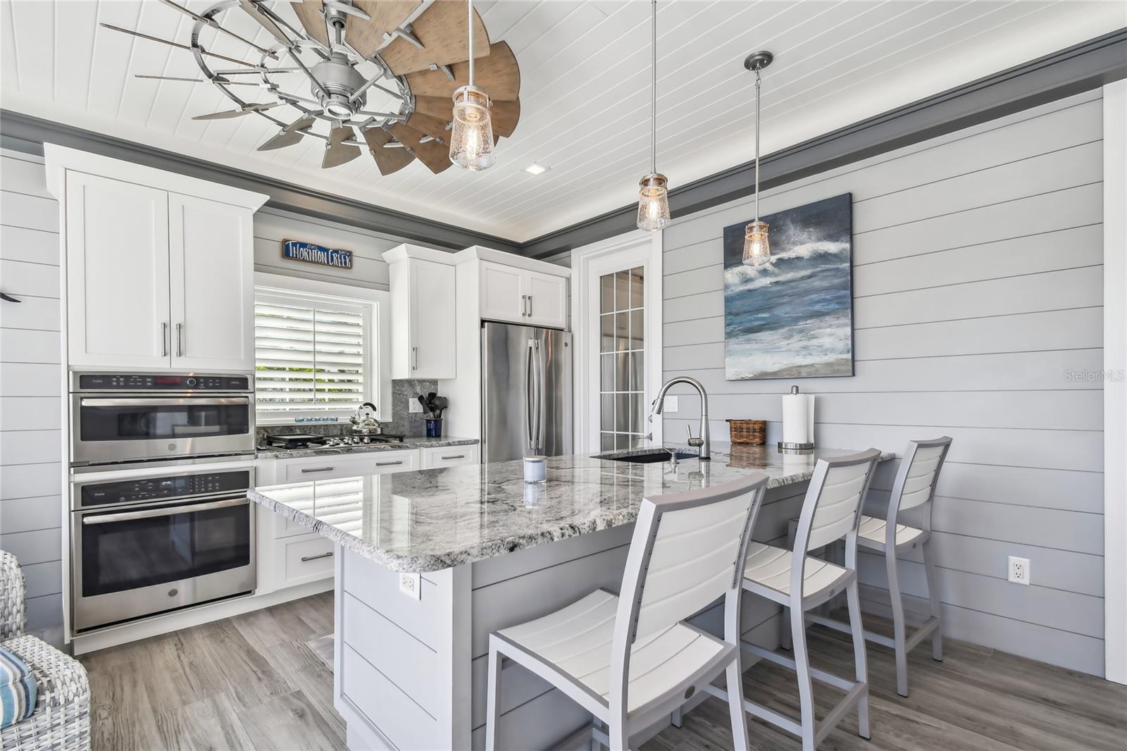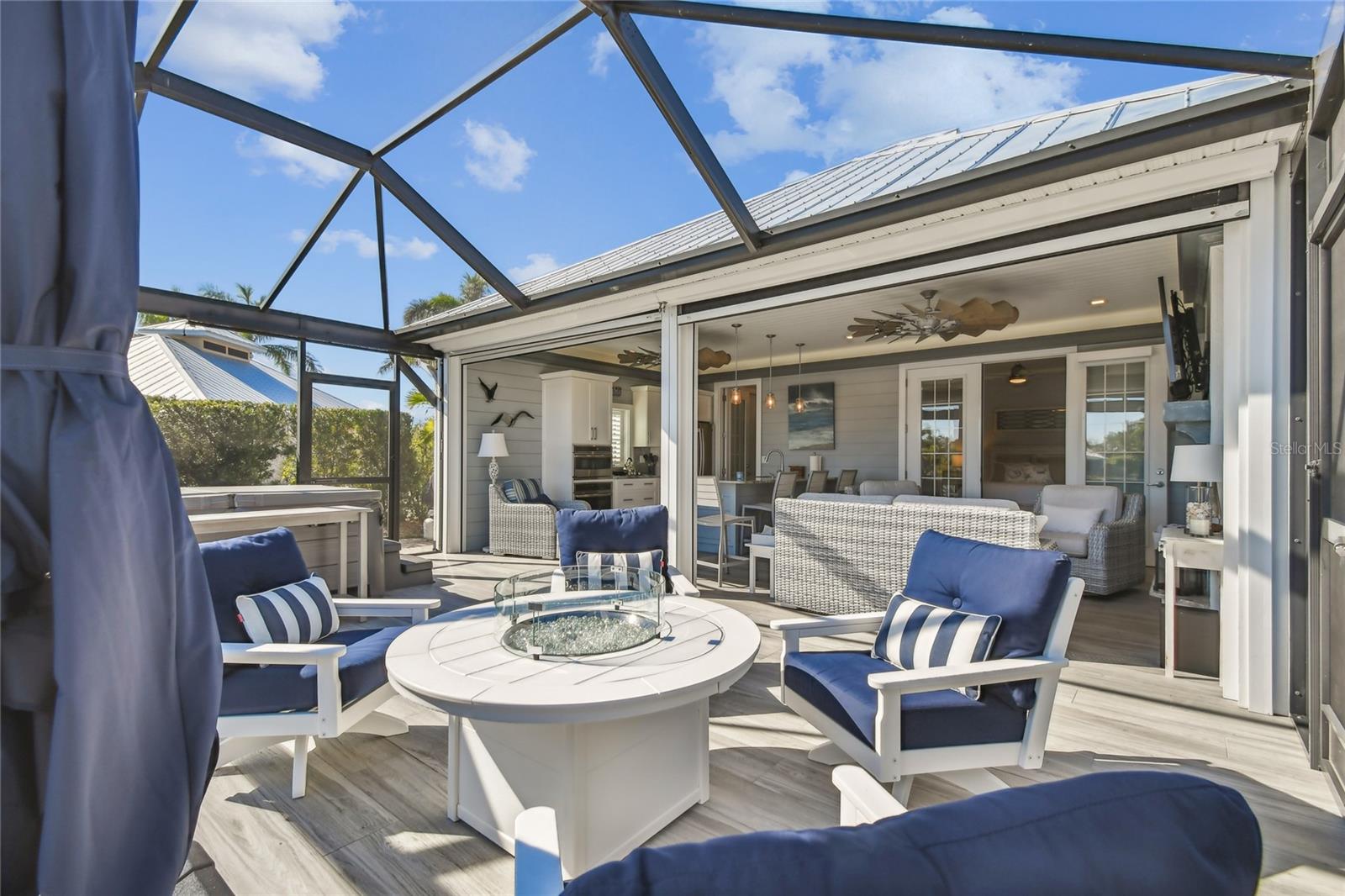 Venha experimentar o melhor da vida em casita de luxo no Lote 28. A grande plataforma pavimentada acomoda ônibus de qualquer tamanho com facilidade, enquanto um caminho serpenteia ao redor da casita, levando a uma aconchegante fogueira e área de estar. Rodeado por palmeiras ondulantes e vistas tranquilas para o mar, este espaço ao ar livre é o local perfeito para relaxar. Entre em uma varanda acolhedora com tela completa, banheira de hidromassagem e lareira a gás com assentos. Telas motorizadas de Kevlar contra furacões acrescentam conforto e proteção, combinando perfeitamente a varanda com a área de estar principal. Projetada com estilo e função em mente, a cozinha possui fogão a gás, forno embutido, micro-ondas, lava-louças e geladeira com porta francesa. A ilha com tampo de granito e bancos de bar serve como peça central para entretenimento. Com 764 pés quadrados com ar condicionado, esta casita cuidadosamente projetada oferece tudo que você precisa para um retiro luxuoso. O espaçoso quarto abre através de elegantes portas francesas para vistas deslumbrantes sobre o mar e a área de estar principal. Um banheiro indulgente o aguarda, completo com box amplo, acabamentos impecáveis e espaço para relaxar. Uma lavanderia dedicada com lavadora, secadora, pia agrícola e armários personalizados garantem comodidade prática. Para armazenamento adicional, a garagem do carrinho de golfe possui uma porta de enrolar e espaço superior embutido. Agende uma visita hoje e descubra porque esta propriedade excepcional é o refúgio perfeito.