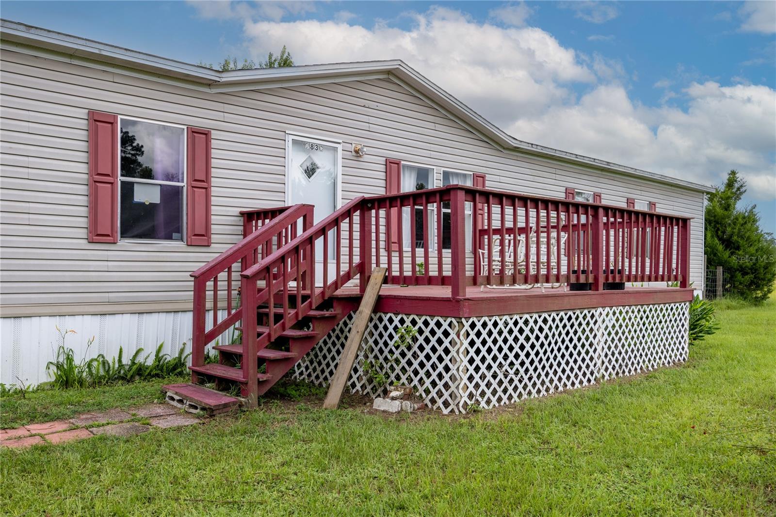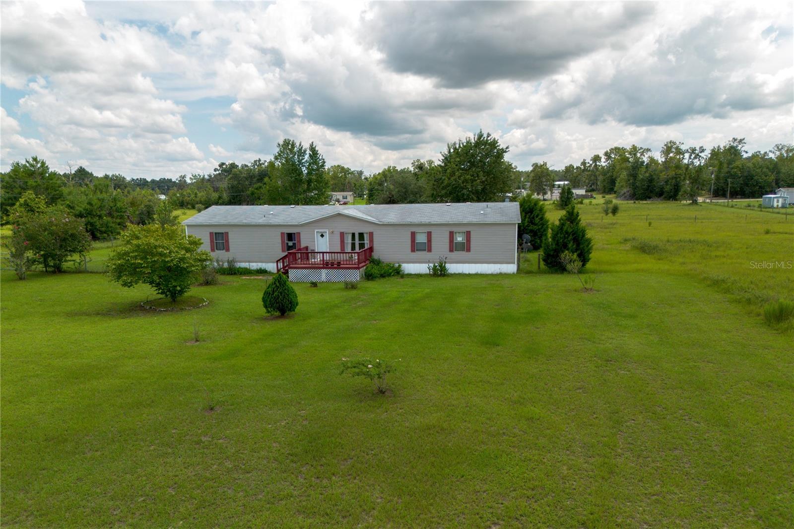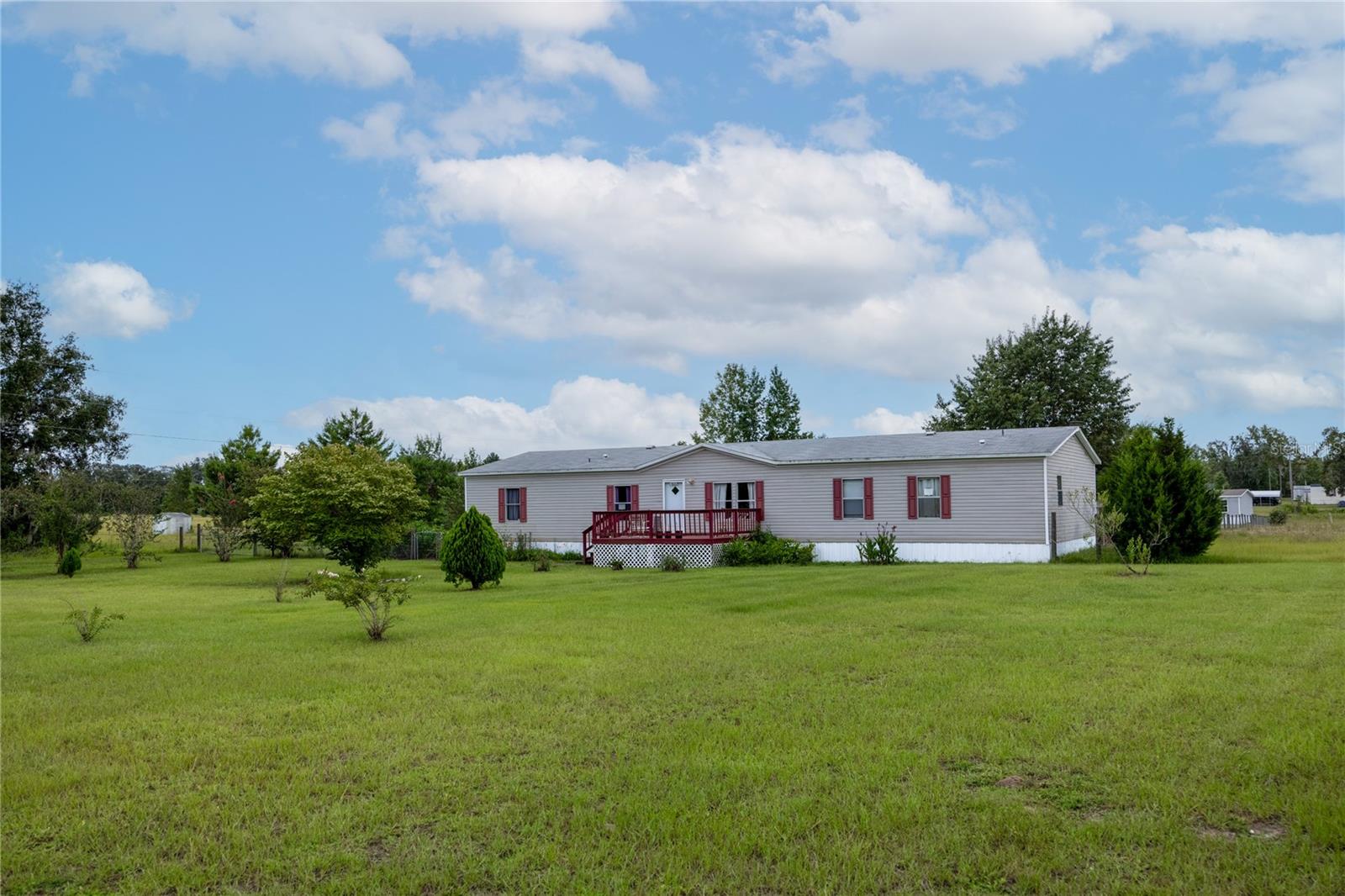 Desfrute da vida no campo em 1,25 acres em Archer. 4/3 Fleetwood Eagle Trace Model Mobile Home com 2280 pés quadrados de lote retangular, Home fica no meio com uma varanda convidativa para relaxar. Entre nesta maravilhosa casa na sala de estar formal e sinta a abertura com o piso laminado continuando por toda a casa. Em seguida, é o quarto da família com cozinha grande e espaçosa. A Center Island possui uma barra de café da manhã e estante junto com uma área para uma mesa. Muito espaço de balcão e armazenamento com lavanderia a porta de fundo e varanda de costas coberta expansiva. A varanda traseira tem escadas e uma rampa para facilitar o acesso. A terra é bonita com árvores frutíferas (duas ameixas de limão e japonês) e uma dispersão de outras árvores em toda a propriedade. Unidade de armazenamento para equipamentos de gramado e muito espaço no quintal para uma área de fogueira, playground, cornhole e ferradura. A vida é ótima neste lugar tranquilo e pacífico no paraíso.