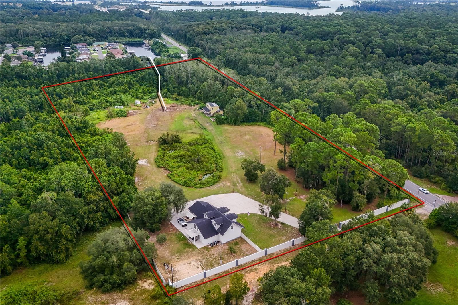 PREÇO REDUZIDO - Propriedade em frente ao canal de 10 acres... esta extraordinária propriedade de 10 acres é um sonho tornado realidade para quem procura luxo, privacidade e natureza à sua porta. Situada em um ambiente sereno, esta propriedade dispõe de uma casa de dois andares com 5 quartos espaçosos e 4,5 banheiros, perfeita para receber hóspedes. Além da casa, a propriedade oferece um lago artificial adicionando um elemento de água tranquilo bem no seu quintal ou preencha e tenha ainda mais propriedades para fazer o que quiser. Imagine relaxar na varanda cercada pela natureza, com a vantagem adicional de 391 pés de frente para o canal, aproximadamente 13 pés de profundidade e 80 pés de largura...levando diretamente para Little Lake Harris e The Harris Chain. Desfrute de passeios de barco, pesca e inúmeras atividades aquáticas sem sair de sua propriedade! A propriedade é protegida por uma cerca de segurança de 375 pés de comprimento e 9 pés de altura com portão, oferecendo privacidade incomparável. Um ponto de acesso adicional logo na saída 561 com um portão adicional e avental de concreto que leva à frente do canal. Um celeiro oferece amplo espaço de armazenamento para seus equipamentos, veículos ou necessidades de hobby, tornando esta propriedade tão funcional quanto bonita. Com 1.118 pés de acesso rodoviário na saída da CR-561, a conveniência encontra o isolamento nesta propriedade incomparável. Este é verdadeiramente um paraíso para os amantes do ar livre; com todas as comodidades que você poderia precisar. Não perca a oportunidade de possuir este pedaço do Paraíso! Entre em contato hoje mesmo para um tour privado neste retiro exclusivo à beira do lago!