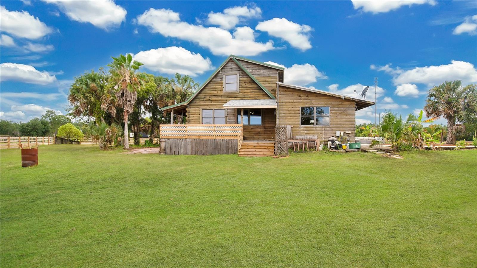 Uma ou mais fotos foram virtualmente encenadas. PREÇO PARA VENDER! Morar pronto e pode acomodar um fechamento rápido! Um sonho para os amantes de cavalos! Localizada em uma estrada de terra privada em Reveille Farms, no lado oeste do Condado de Volusia, esta linda cabana de madeira de 2 quartos e 3 banheiros fica em 5 acres de grama verdejante. A poucos minutos do Rio St. John, onde você pode pescar, passear de barco ou fazer um curto passeio de barco até Silver Glen Springs. Esta propriedade possui 2 celeiros; um celeiro de corredor central 34x44 com várias baias, incluindo uma baia de parto, junto com uma área de arreios e alimentação; e celeiro adicional separado de 24x24, juntamente com vários piquetes cercados, é uma configuração perfeita para os entusiastas de equinos! Há muitas áreas para passear pela casa e fica a apenas alguns minutos da Floresta Nacional de Ocala e de outras áreas de equitação. Dentro desta linda casa de madeira, você encontrará uma planta aberta, com pisos de madeira verdadeira, proporcionando aquele charme acolhedor da vida no campo. 3 banheiros atualizados com bom gosto e belos detalhes proporcionam um toque moderno. Lá fora, você pode desfrutar do ar do campo em sua varanda coberta que envolve toda a entrada lateral da casa. Esta casa também está pronta para o verão, com uma piscina subterrânea para se refrescar após um longo dia de trabalho ou passeio. Com um pouco de amor esta casa será uma vitrine para todos os seus convidados! São muitas as possibilidades para esta casa e imóvel, não perca a oportunidade, ligue hoje mesmo!