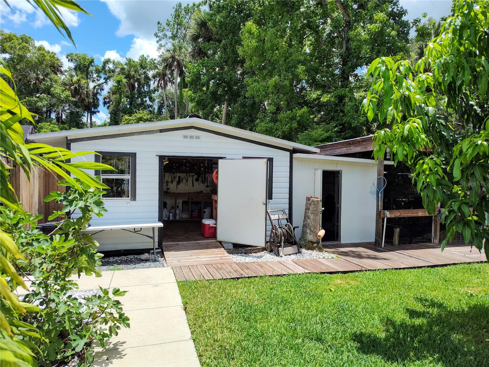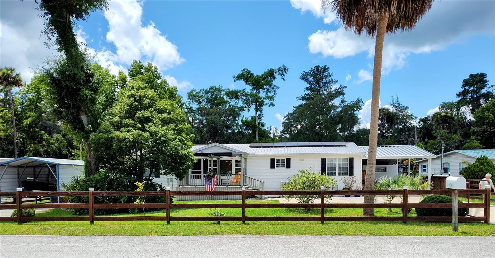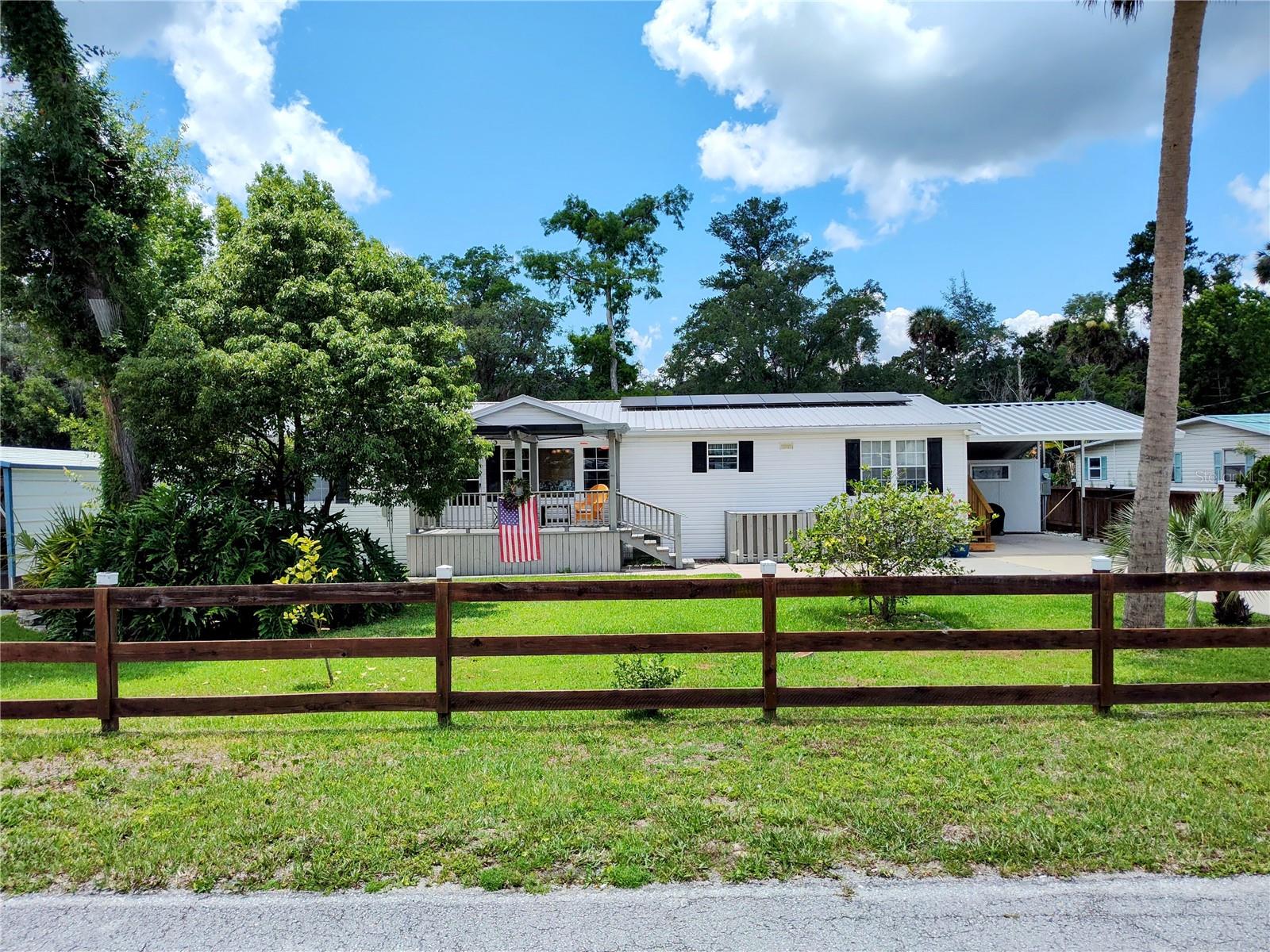 Bem-vindo a esta casa lindamente atualizada de três quartos e dois banheiros com telhado de metal (2017) com painéis solares (pagos integralmente) e protetores de calhas (2018). Existem cinco edifícios externos bem construídos para armazenamento, incluindo um estúdio de artista, jardim/galpão de ferramentas, abrigo contra tornados, sala de equipamentos e armazenamento de gerador para todo o gerador da casa com conexão de painel. Esta casa fica em frente ao canal de 100', levando a uma curta distância do Rio St. As atualizações recentes incluem uma remodelação completa da cozinha com uma grande ilha de açougueiro, armários de fechamento suave com gavetas, incluindo uma despensa. Bancadas de quartzo, adornadas com um lindo backsplash de azulejos azuis importados, certamente chamarão sua atenção. Nova geladeira LG de 4 portas, fogão/forno a gás, freezer vertical, bem como lavadora e secadora, todos transmitidos aos novos proprietários. Novo piso laminado de pranchas de madeira à prova d'água Concord Maple 12 mm para a cozinha, sala de jantar, sala de estar, quarto principal e banheiro adjacente. O banheiro principal foi completamente remodelado para incluir um enorme box amplo, uma nova penteadeira com backsplash envolvendo sua banheira de imersão; uma adição maravilhosa depois de um longo dia pescando no rio ou trabalhando em sua exuberante horta orgânica. Existem árvores de fruto incluindo manga, abacate, 2 pessegueiros, uma figueira e um limoeiro que estão prosperando. A propriedade é totalmente cercada com uma grande área para seus filhotes nos fundos. Há uma garagem de um lado e uma sombra metálica do outro, oferecendo amplo estacionamento para seus carros e barcos. Sua própria doca de pesca e doca para barcos sob o telhado; você está pronto para mais um dia na água. Venha desfrutar dos dias tranquilos e preguiçosos no Rio St. Johns. Você vai se apaixonar!