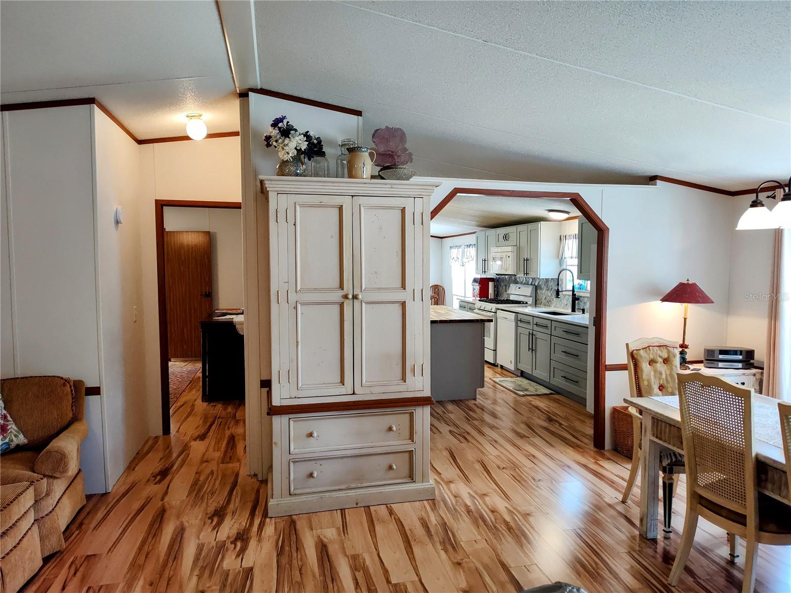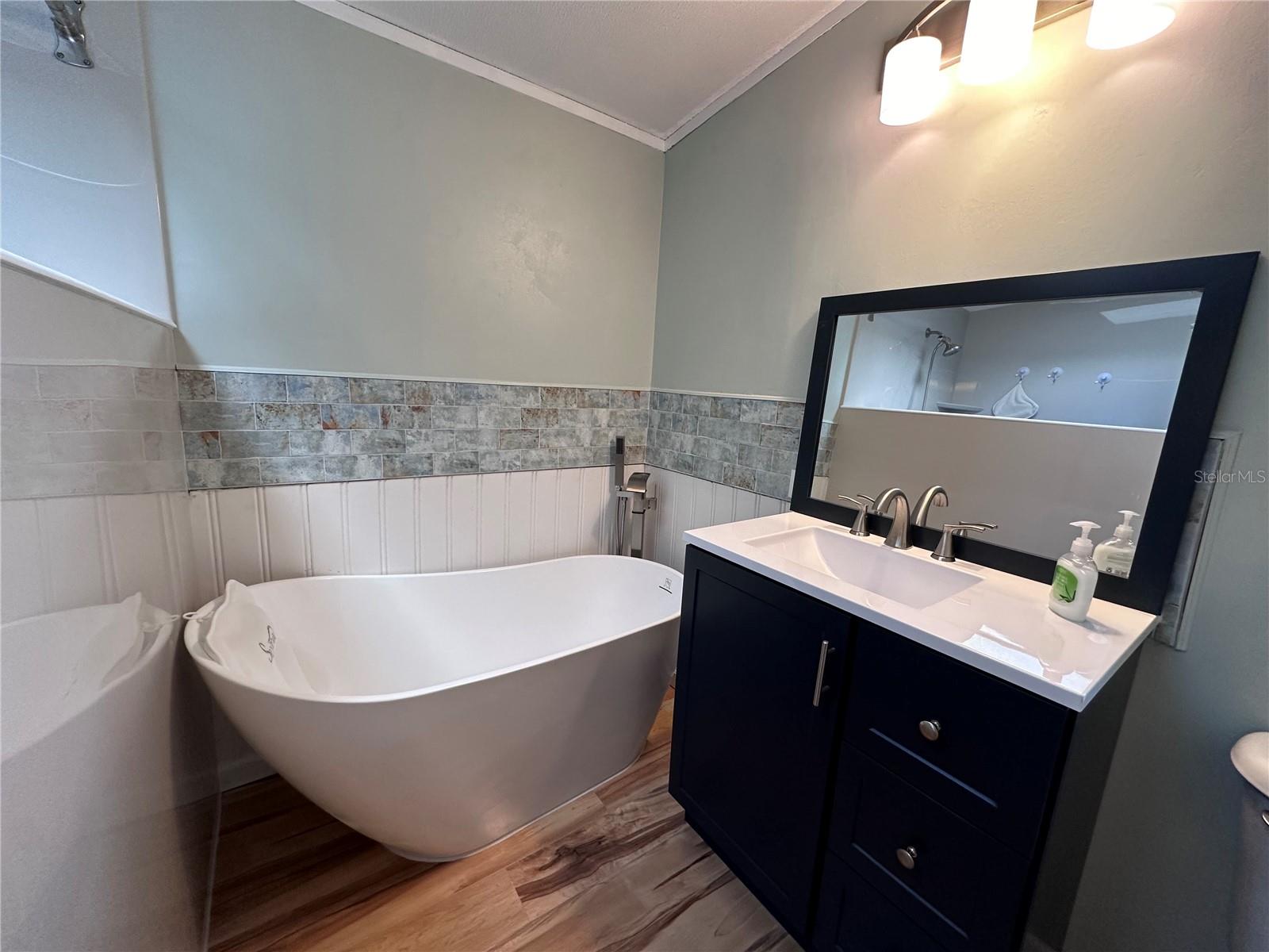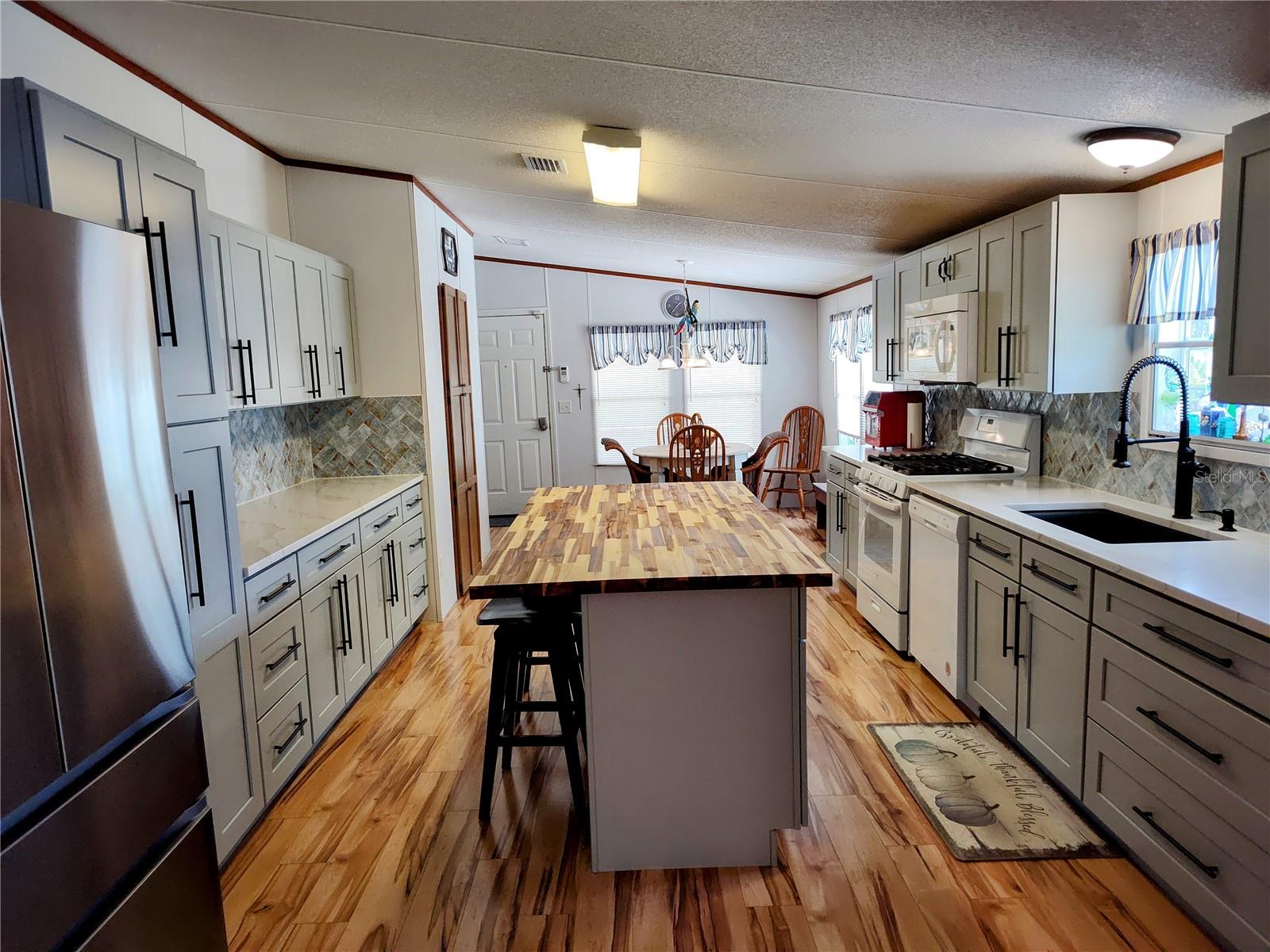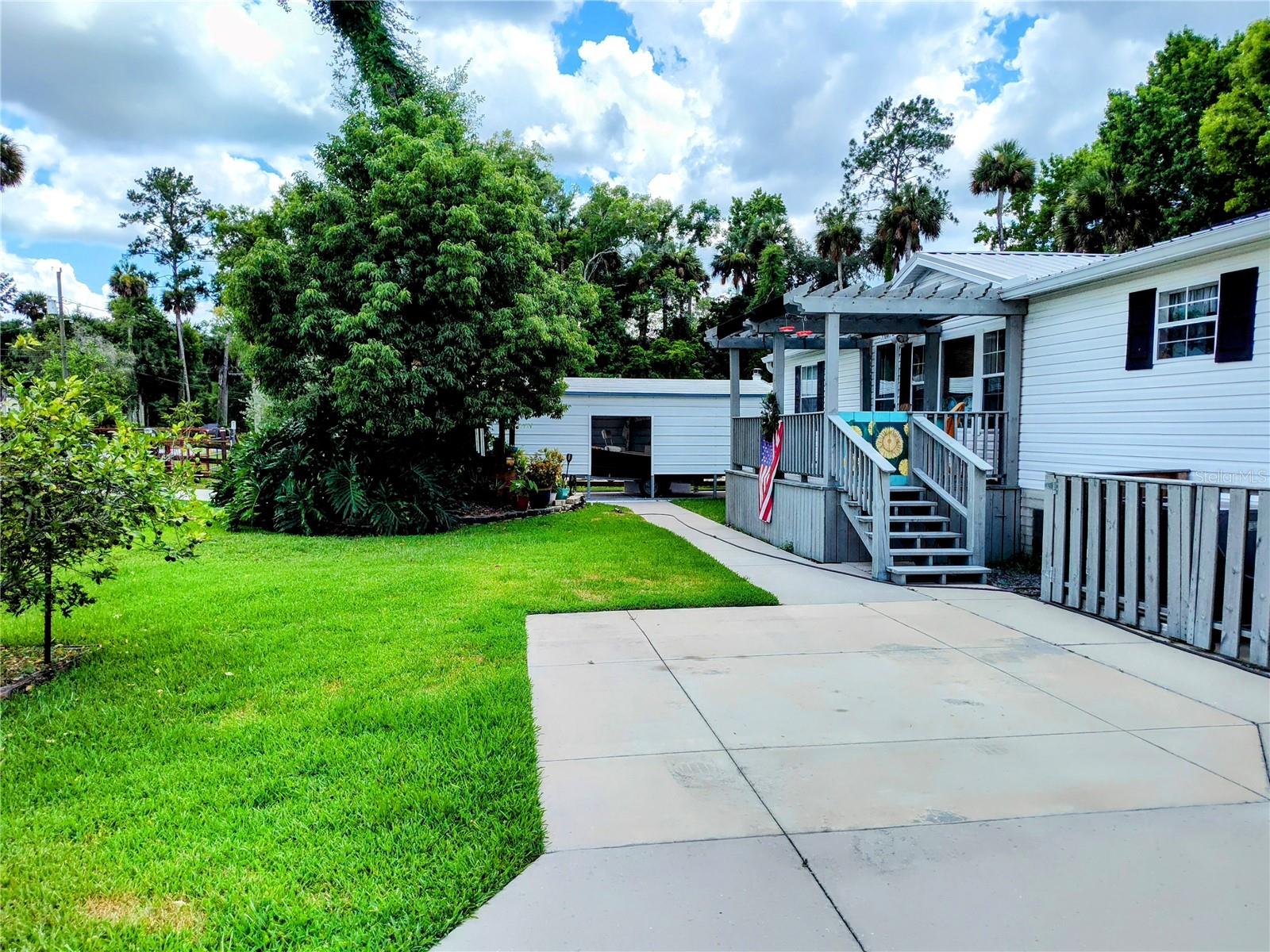 Bem-vindo a esta casa lindamente atualizada de três quartos e dois banheiros com telhado de metal (2017) com painéis solares (pagos integralmente) e protetores de calhas (2018). Existem cinco edifícios externos bem construídos para armazenamento, incluindo um estúdio de artista, jardim/galpão de ferramentas, abrigo contra tornados, sala de equipamentos e armazenamento de gerador para todo o gerador da casa com conexão de painel. Esta casa fica em frente ao canal de 100', levando a uma curta distância do Rio St. As atualizações recentes incluem uma remodelação completa da cozinha com uma grande ilha de açougueiro, armários de fechamento suave com gavetas, incluindo uma despensa. Bancadas de quartzo, adornadas com um lindo backsplash de azulejos azuis importados, certamente chamarão sua atenção. Nova geladeira LG de 4 portas, fogão/forno a gás, freezer vertical, bem como lavadora e secadora, todos transmitidos aos novos proprietários. Novo piso laminado de pranchas de madeira à prova d'água Concord Maple 12 mm para a cozinha, sala de jantar, sala de estar, quarto principal e banheiro adjacente. O banheiro principal foi completamente remodelado para incluir um enorme box amplo, uma nova penteadeira com backsplash envolvendo sua banheira de imersão; uma adição maravilhosa depois de um longo dia pescando no rio ou trabalhando em sua exuberante horta orgânica. Existem árvores de fruto incluindo manga, abacate, 2 pessegueiros, uma figueira e um limoeiro que estão prosperando. A propriedade é totalmente cercada com uma grande área para seus filhotes nos fundos. Há uma garagem de um lado e uma sombra metálica do outro, oferecendo amplo estacionamento para seus carros e barcos. Sua própria doca de pesca e doca para barcos sob o telhado; você está pronto para mais um dia na água. Venha desfrutar dos dias tranquilos e preguiçosos no Rio St. Johns. Você vai se apaixonar!