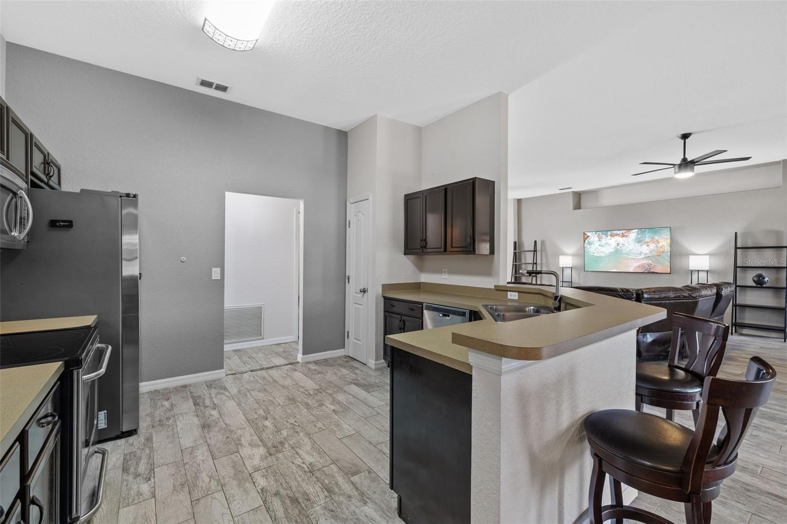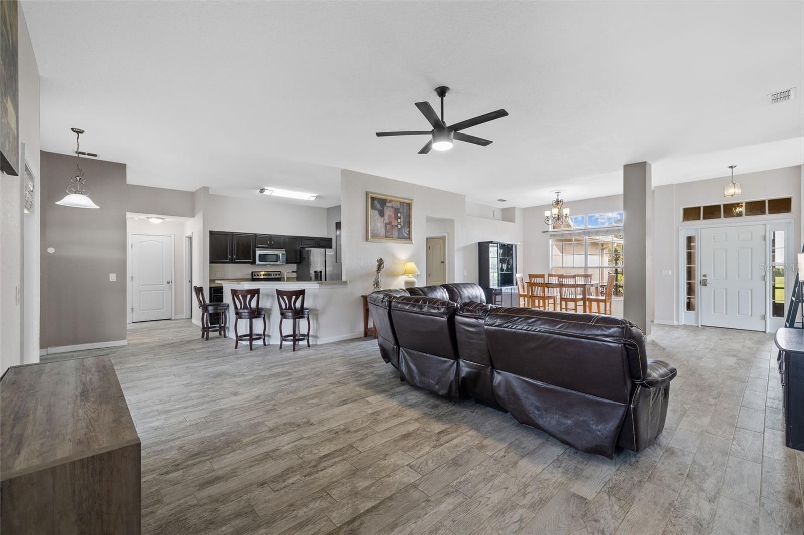 De volta ao mercado - o financiamento caiu! Lakeview Beauty em 107 Amber Estates, Auburndale, FL Bem-vindo a esta impressionante casa de 4 quartos e 3 banheiros, com 2.284 pés quadrados de espaço de vida lindamente atualizado em um lote de 0,26 acres. Com uma garagem de 3 carros de grandes dimensões, varandas dianteiras e traseiras, protegendo você. Você tem as melhores vistas do lago da comunidade, pois esta é a única casa com uma vista completa do lago, esta propriedade é um achado raro para relaxamento, entretenimento e preço! Entre em um belo layout aberto, aprimorado por pisos de azulejos de cerâmica por toda parte e uma nova tinta concluída em 2021. Um conjunto completo de ladrilhos de cerâmica totalmente famosos foi comprado, oferecendo a oportunidade de instalar um novo piso. O interior brilha da enorme quantidade de luz natural radiante na tinta fresca, armários refinados e ventiladores de teto atualizados, estilo de mistura com funcionalidade moderna também feita em 2021. Desfrute de sem costura, que vive no amplo pátio traseiro de tijolos, localização incrível para hospedar reuniões ou simplesmente molho no ambiente tranquilo. Você também tem a capacidade de instalar um pool; Além de ter acesso à doca e um lago de retenção próximo que raramente preencheu/retido pela água. Esta propriedade captura a essência da serenidade à beira -mar. Faça o seu! A conveniência é a chave, utensílios de aço inoxidável, lavadora, secadora, mobiliário (s) de varanda, ladrilhos de cerâmica, estão todos incluídos na venda. É a beira do lago que vive no seu melhor em um local ideal para viajar pelo estado da Flórida - não perca esta casa excepcional em Amber Estates, Auburndale!