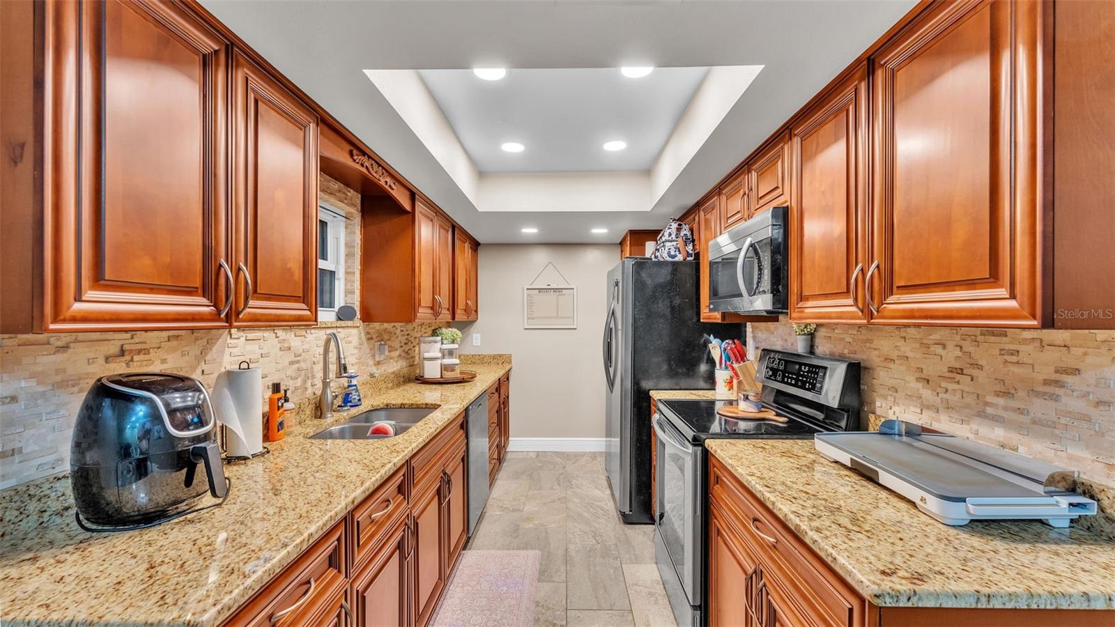 Aninhado em uma rua tranquila e sem saída, sem o HOA para se preocupar, esta casa imaculada é exatamente o que você está procurando! Possui uma planta fantástica com uma grande sala grande com lareira a lenha, teto da catedral e iluminação embutida. Esta área, combinada com uma adorável cozinha e canto de café da manhã considerável, oferece um espaço principal abundante que permite que os entes queridos se reúnam confortavelmente. A cozinha apresenta belos balcões e armários de granito e belos utensílios de aço inoxidável. Cada quarto é de tamanho generoso e um layout dividido fornece privacidade para a suíte primária, que tem um banheiro completo com um closet, vaidade dupla e chuveiro. Além do interior maravilhoso, ele também possui ótimas características externas, como uma garagem de 2 carros, um sistema de irrigação, um edifício de armazenamento, um pátio coberto traseiro com vista para um enorme quintal cercado de privacidade e muito mais. Esta casa foi muito cuidada, de fato, manutenção/ atualização feita desde 2024 inclui um novo aquecedor de água, tinta interior fresca, todos os novos rodapés, novos pisos de vinil de luxo em grande parte da casa, novos pontos de venda e interruptores de luz, um painel de gerador para fácil conexão com o sistema gerador portátil (não incluído) e muito mais. O telhado também tem apenas 4-5 anos. Situado em uma área bem estabelecida, convenientemente localizada, com fácil acesso ao centro da cidade, I-4, bem como às cidades vizinhas- é perfeito para os passageiros. Não perca a chance de fazer deste seu próprio!