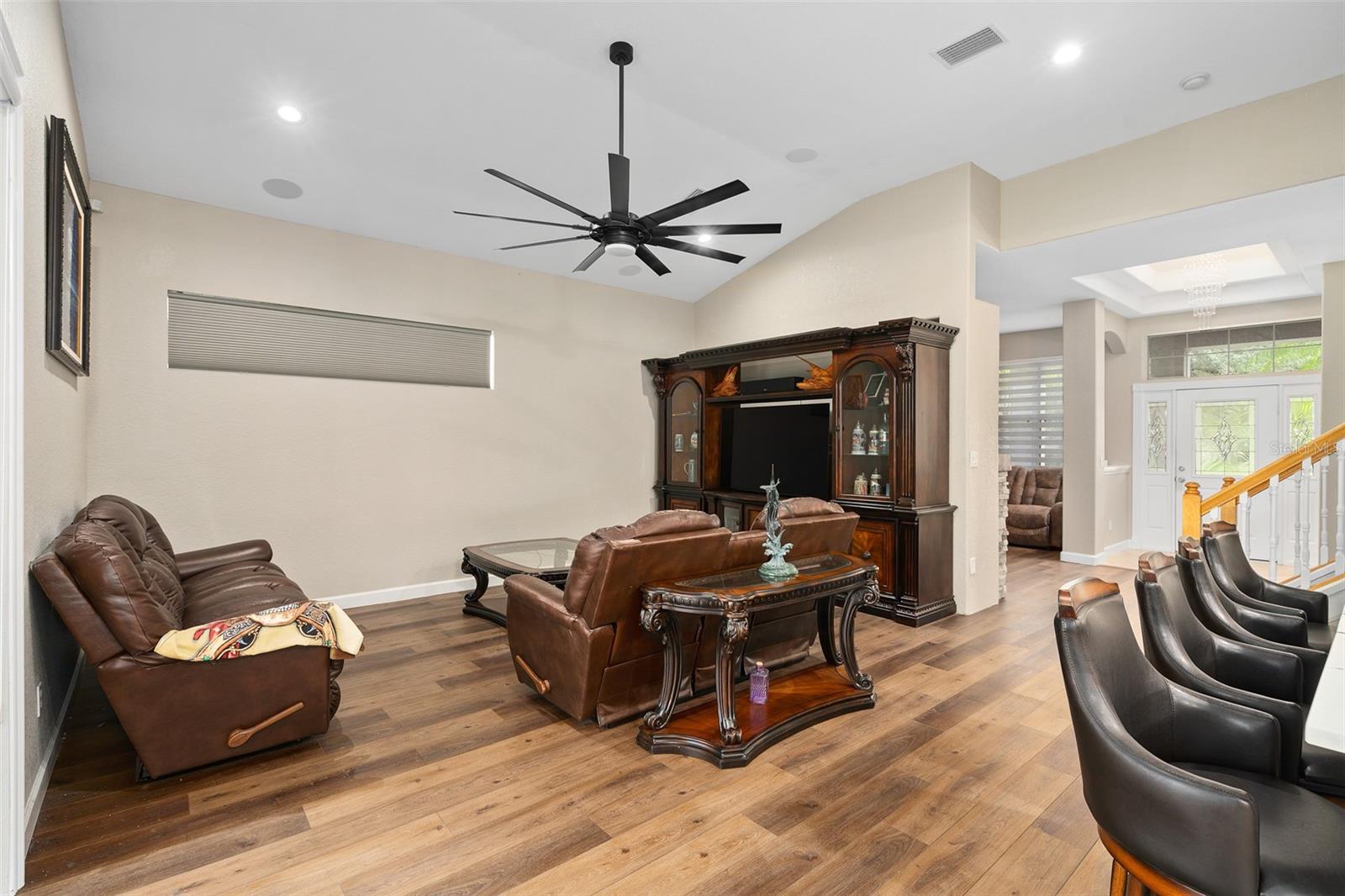 NENHUM DANO DE TEMPESTADE DOS FURACÕES! ESTA CASA TEM ATUALIZAÇÕES! ATUALIZAÇÕES! ATUALIZAÇÕES! Descubra uma elegância incomparável nesta casa de tirar o fôlego de 3.304 pés quadrados, com um total de 4.480 pés quadrados, incluindo uma grande varanda frontal e uma espaçosa varanda traseira fechada. Situada em um terreno de 0,34 acres, esta residência oferece 4 quartos, 4,5 banheiros e uma garagem para 3 carros, além de uma grande garagem para pavimentação que acomoda até 6 caminhões. Entre em um espaço lindamente projetado com uma lareira elétrica embutida em pedra personalizada com um manto de tábuas, complementado por um luxuoso piso de tábuas de vinil nas áreas principais e no andar de cima. A cozinha do chef é uma obra-prima com armários de madeira com gavetas em formato de andorinha, bancadas e backsplash de pedra personalizados, uma impressionante ilha de pedra em cascata, fornos duplos de aço inoxidável, fogão, pia funda e despensa com opção de despensa adicional sob as escadas. A entrada apresenta teto duplo e lustre personalizado, dando um tom de sofisticação. As persianas Zebra e os interiores recém-pintados acrescentam um toque de modernidade, enquanto o telhado, com apenas 5 anos, e os aparelhos de ar condicionado, com 2 anos, garantem confiabilidade. A espaçosa suíte master no andar de baixo inclui um grande closet Califórnia, um espaço flexível separado, ideal para uma sala de ginástica ou escritório, e acesso direto à varanda traseira através de uma porta deslizante. O banheiro principal é um retiro luxuoso com uma grande banheira de hidromassagem, penteadeiras para ele e para ela, uma penteadeira para maquiagem e um box amplo separado com iluminação personalizada. No andar de cima, desfrute do luxuoso piso de pranchas de vinil por toda parte, uma caverna dedicada ao homem com uma unidade embutida personalizada com balcão de pedra e geladeira de zona dupla. Este incrível oásis de loft é perfeito para o melhor encontro de futebol universitário e/ou profissional para impressionar seus amigos e família. Os quartos 2 e 3 têm dimensões generosas de 15x15 e compartilham um banheiro Jack and Jill com pias duplas. O quarto 3 tem um banheiro adjacente para maior comodidade. A varanda traseira é o sonho de qualquer artista, com um banheiro completo dedicado, perfeito para uso à beira da piscina, e uma área protegida com teto de madeira personalizado que rivaliza com casas de milhões de dólares. Do outro lado da estrada fica o mirante comunitário, que facilita uma reunião rápida. O bairro também tem uma passagem direta para a escola local por segurança. A poucos minutos das rampas de barco locais também fazem deste local um sonho para os amantes da água. Esta casa realmente tem tudo. Agende hoje mesmo sua visita e experimente o que há de melhor em uma vida de luxo.