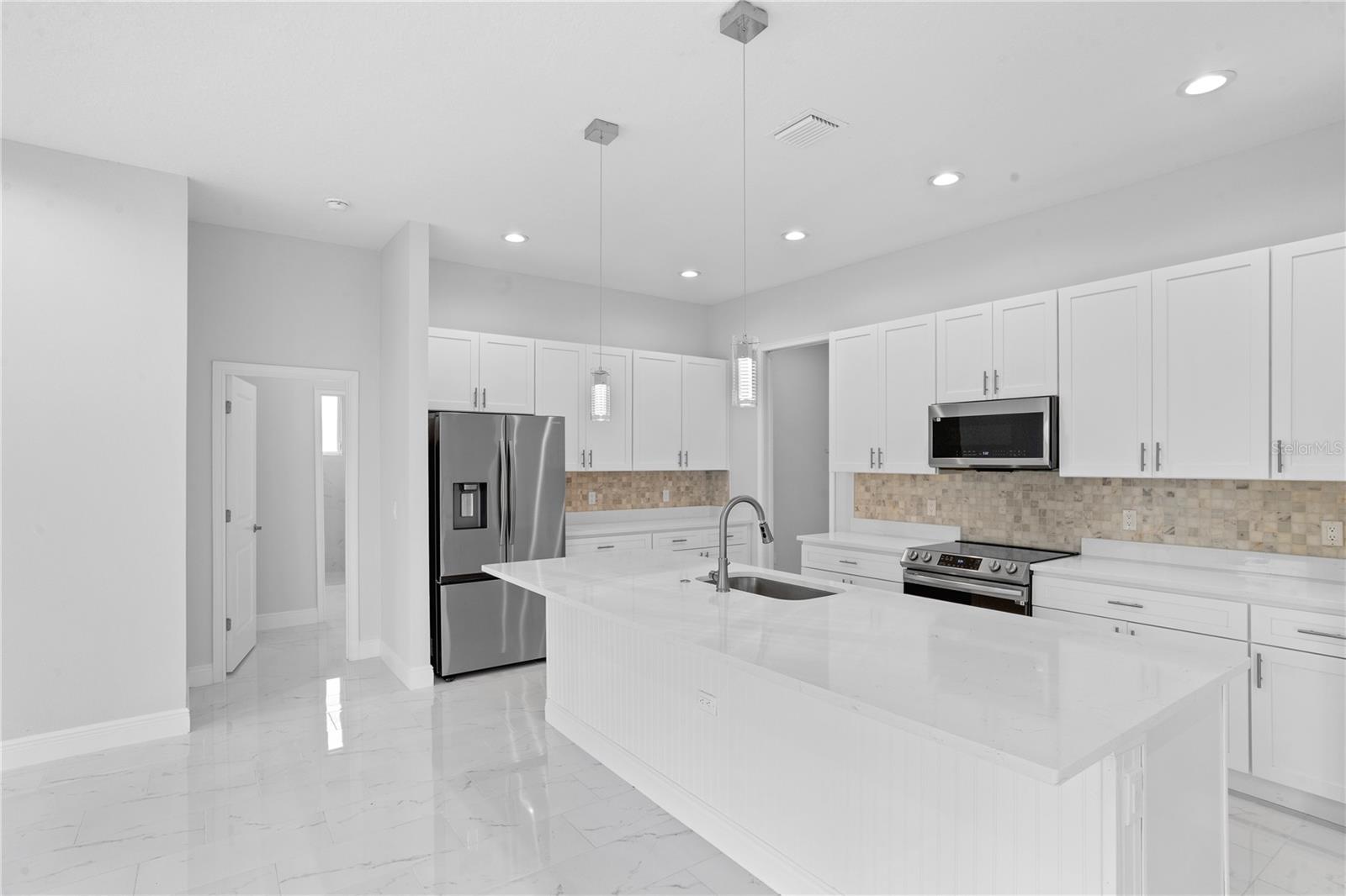 Vendedor motivado! Descubra esta bela construção totalmente nova, com uma planta térrea bem projetada com acabamentos luxuosos e tetos de 9 pés por toda parte. Esta casa oferece 4 quartos, 3 banheiros completos e uma espaçosa área de estar e jantar em plano aberto. Também inclui garagem para 2 carros e calçada pavimentada para uma aparência exterior polida. A casa está repleta de atualizações, incluindo bancadas de quartzo, piso de cerâmica de alta qualidade, banheiro principal com chuveiro e banheira separados, pias duplas, closet e eletrodomésticos de aço inoxidável. A cozinha é aprimorada com um backsplash chique e armários de 42 polegadas, proporcionando amplo espaço de armazenamento.