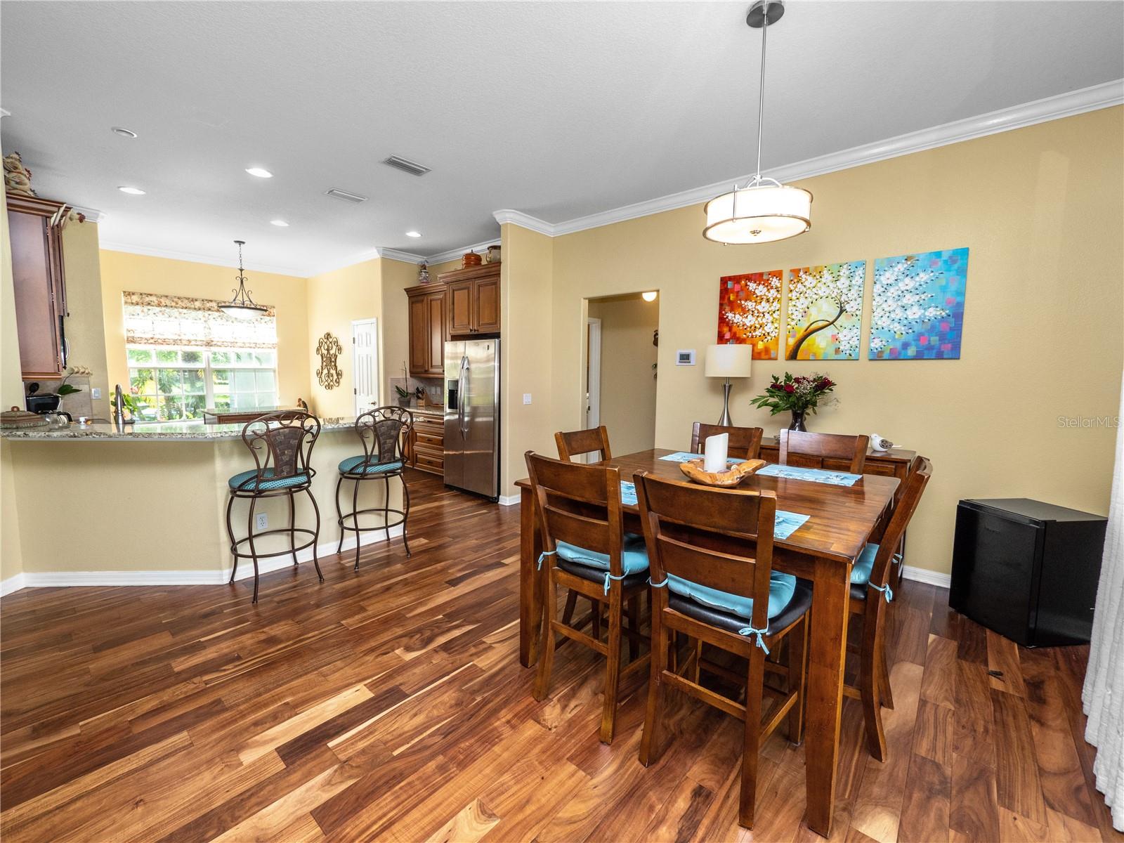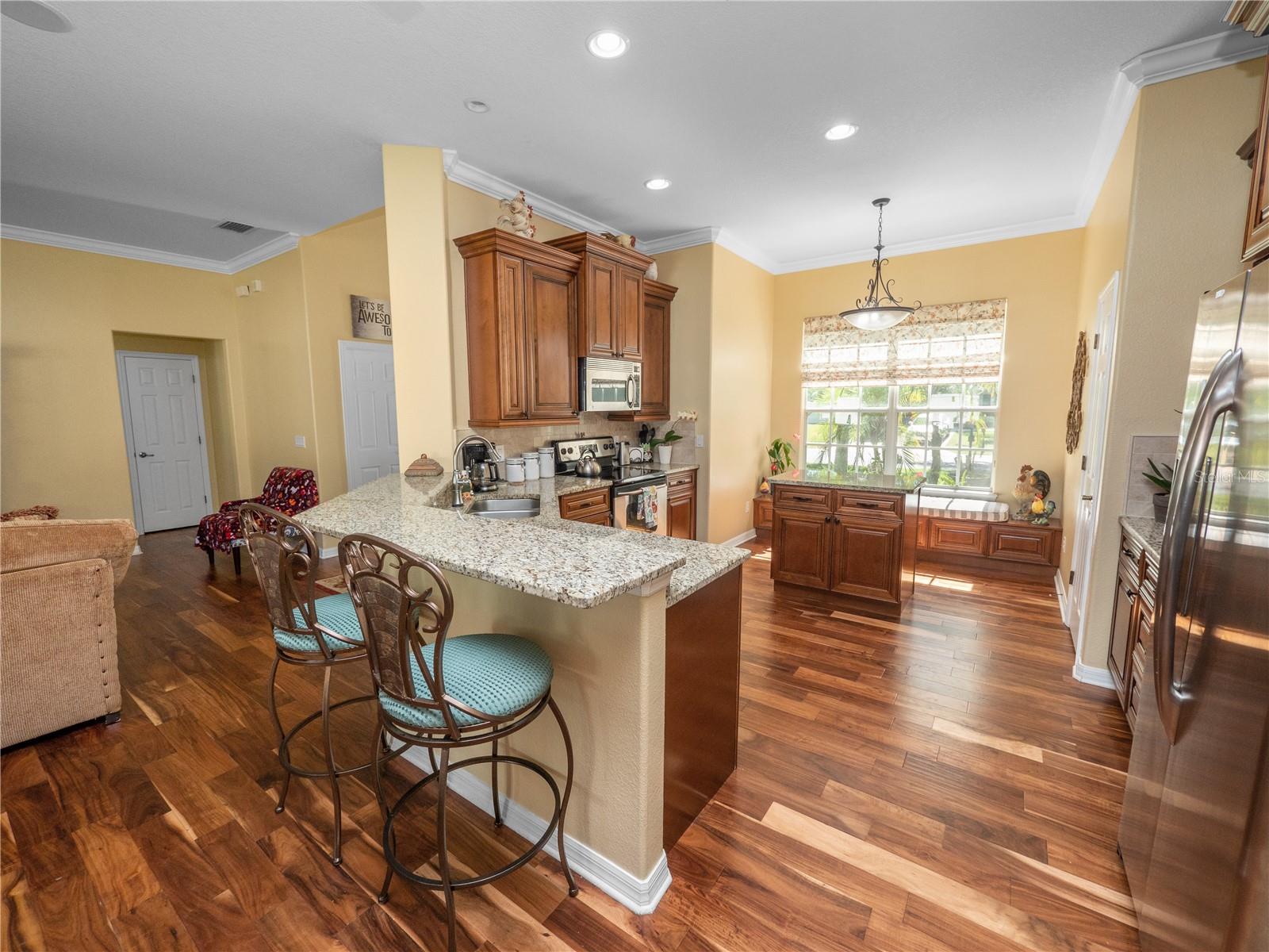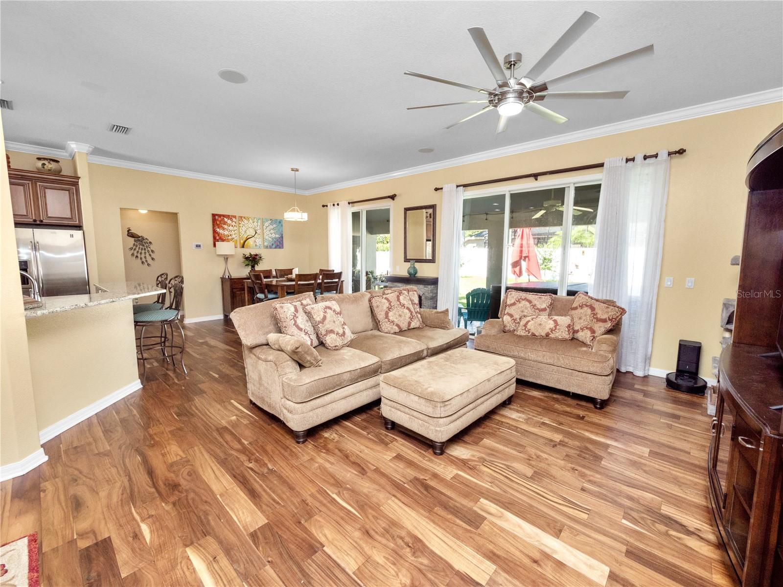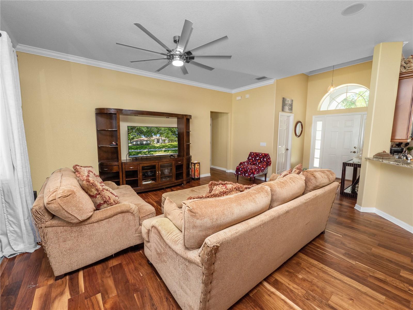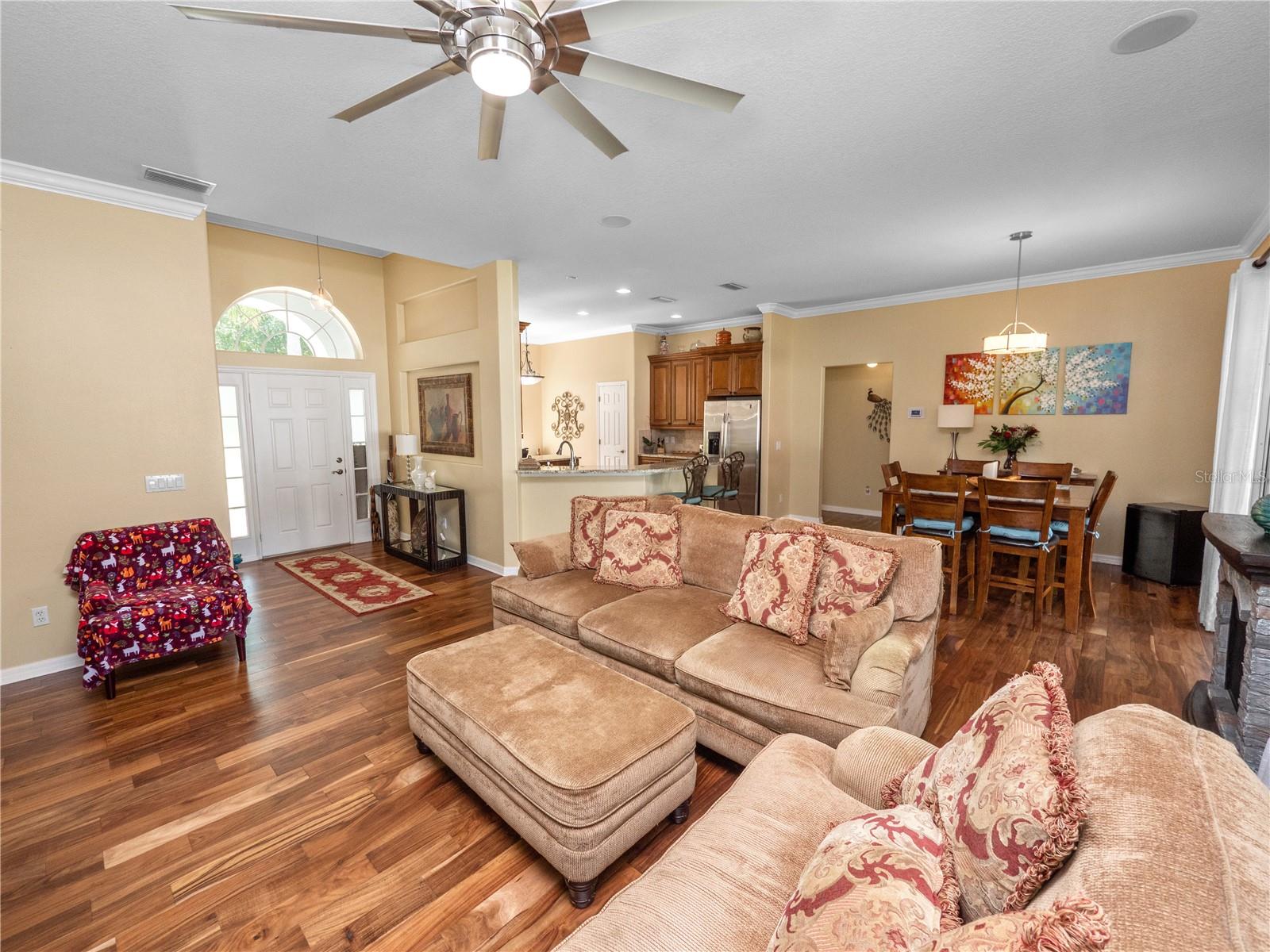 Bem-vindo à comunidade muito procurada de Estates of Auburndale. Esta casa meticulosamente mantida é um achado raro, situada em um terreno de esquina perfeito. Com três quartos, dois banheiros, MAIS uma SALA DE BÔNUS, esta casa oferece mais de 2.000 pés quadrados de área útil e mais de 2.800 no total. Ao entrar, você será recebido por uma planta aberta espaçosa e cuidadosamente projetada. O novo piso moderno em estilo tábua acrescenta um toque de elegância às áreas de estar e de jantar, enquanto a abundância de luz natural cria uma atmosfera acolhedora e convidativa. Na frente da casa existe uma divisão adicional, recentemente pintada, que pode ser utilizada como arrumos, escritório, sala de hobby ou mesmo convertida num quarto quarto. A área de jantar fica ao lado da cozinha, que possui eletrodomésticos de aço inoxidável, bancadas em granito, balcão para café da manhã e amplo espaço para uma área de alimentação adicional. O quarto principal é realmente um sonho, com seu tamanho generoso, teto bandeja, sancas e uma porta de vidro deslizante que dá para a varanda coberta. O banheiro principal oferece pias duplas, chuveiro de azulejos separado e banheira de jardim, perfeita para relaxar após um longo dia. O closet do banheiro principal está equipado com lindas estantes embutidas. A área de estar possui piso de tábuas deslumbrantes, tetos abobadados e oferece uma bela vista do quintal. Abra os controles deslizantes duplos e saia para a espaçosa varanda com vista para o quintal. Com seu lote grande, há muito espaço para entretenimento. Esta casa tem um TELHADO NOVO que foi substituído em 2/2023 e PAINÉIS SOLARES foram adicionados em 10/2023. O A/C foi substituído em 2020. O PURIFICADOR E AMACIADOR DE ÁGUA da Culligan foi instalado em 5/2021. Os quartos de hóspedes têm carpete novo instalado em 6/2024. A iluminação do banheiro de hóspedes foi atualizada em 6/2024. A uma curta distância, você encontrará as áreas comuns da comunidade. As comodidades da área comum incluem duas piscinas (1 piscina infantil), uma quadra de basquete e um playground. Não se esqueça de visitar o habitat das tartarugas localizado perto do parque infantil. Convenientemente localizada a poucos minutos da I-4 e da Polk Parkway, esta casa tem uma localização central entre Tampa e Orlando. Venha e veja por si mesmo porque esta bela casa oferece um valor excepcional.