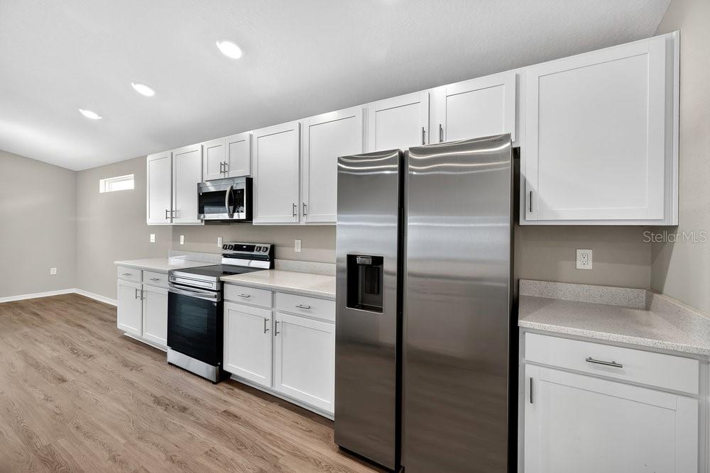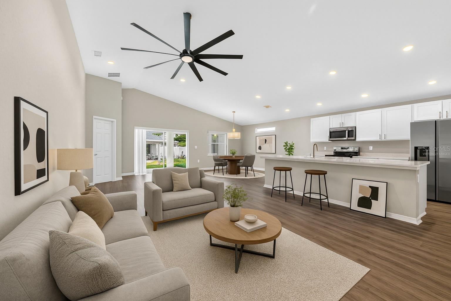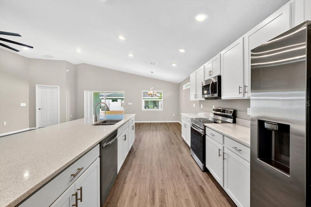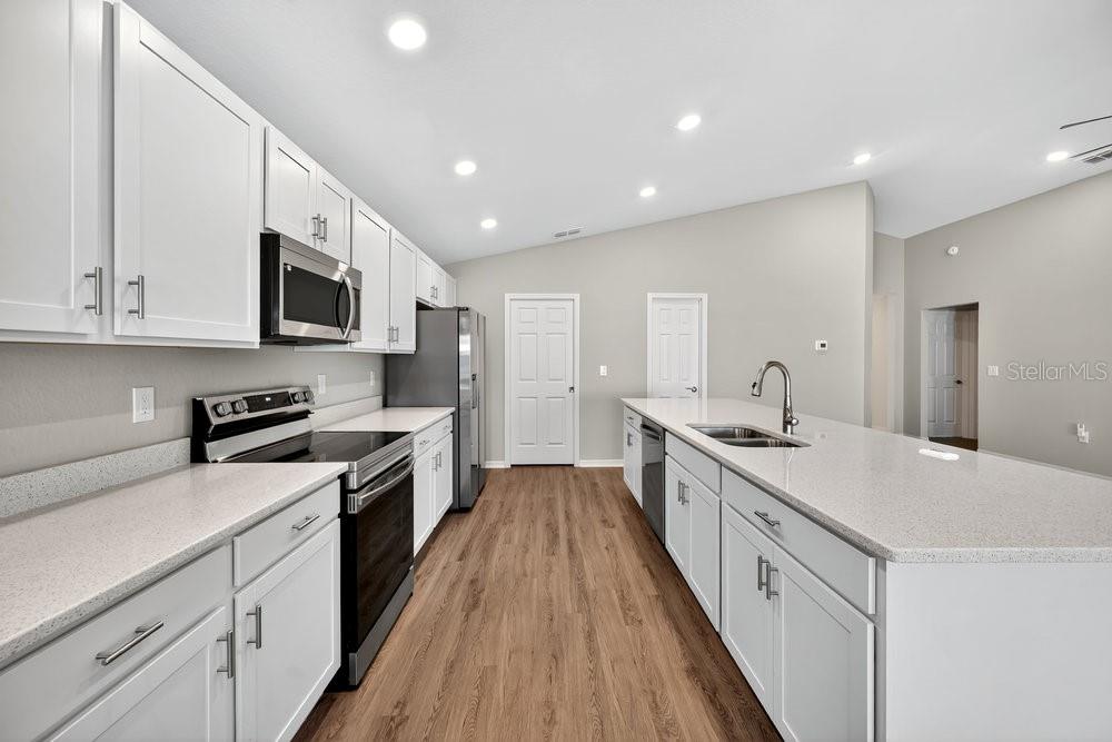 VENDEDOR MOTIVADO. TRAGA TODAS AS OFERTAS! Algumas fotos são virtualmente encenadas. Bem-vindo a esta casa térrea lindamente projetada que oferece 2.005 pés quadrados de espaço moderno, completa com quatro quartos espaçosos e dois banheiros elegantes. O layout de conceito aberto apresenta uma cozinha inspirada no chef com bancadas de quartzo, eletrodomésticos de aço inoxidável Samsung, uma despensa ampla e uma ilha generosa que flui perfeitamente para o café de jantar e sala de reuniões - perfeita para entretenimento ou conforto diário. O luxuoso piso de pranchas de vinil com aparência de madeira aprimora as principais áreas de estar, lavanderia e banheiros, enquanto o carpete resistente a manchas adiciona calor aos quartos. A suíte do proprietário é um retiro privado com closet e banheiro privativo com pia dupla, box amplo de azulejos e toalete fechado. Atualizações adicionais incluem ventiladores de teto para maior conforto, um sistema de amaciante de água para melhorar a qualidade da água, persianas personalizadas e isolamento e janelas com eficiência energética. Desfrute da vida ao ar livre na varanda coberta, além da conveniência de uma garagem para 2 carros, telhas arquitetônicas e garantia total do construtor para sua tranquilidade. Esta casa combina estilo, função e atualizações atenciosas - pronta para você se mudar e torná-la sua. Fotos profissionais a seguir.