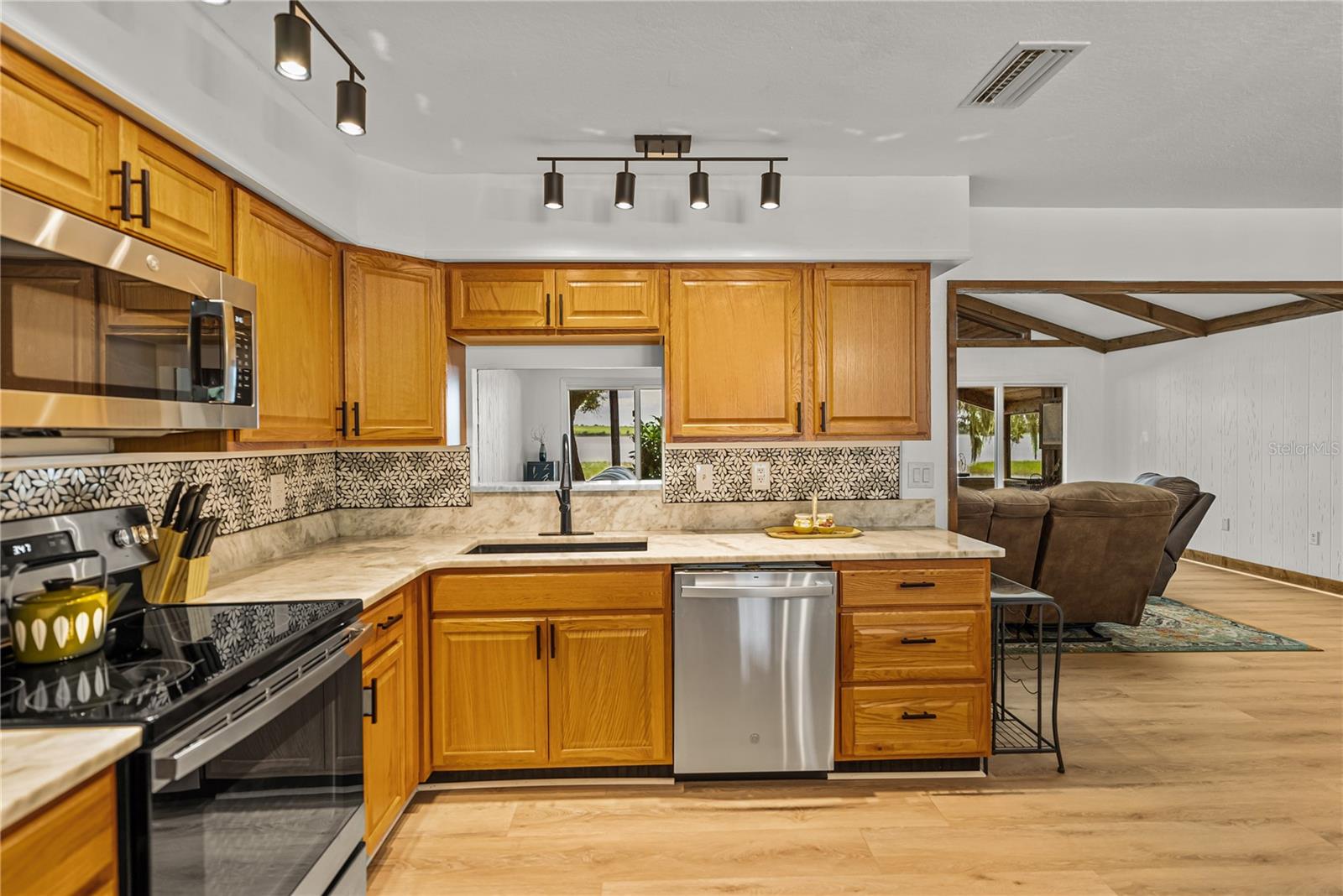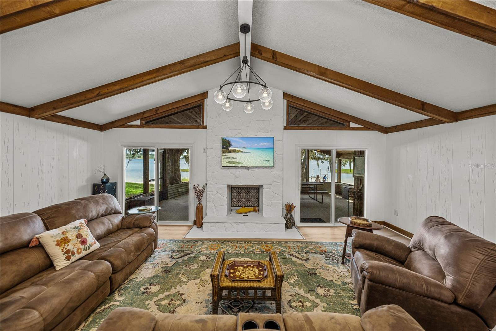 Fabulosa viva à beira do lago! Encretada no lago torto, esta residência é onde você pode relaxar no lago ou no Lanai, saboreando o espetacular nascer do sol e pôr do sol do outro lado do lago! Esta espaçosa casa de 4bd/3 ba está perfeitamente situada sob sua própria rede de carvalho e praia, totalizando 1,73 acres em uma área pacífica e desejável, sem taxas de HOA! Um grande deck da frente dá uma recepção calorosa no design aberto de uma espaçosa sala de felicitações que une a sala de jantar, cozinha e dá orientação para a deslumbrante sala de estar. Uma casa excelente para a família e o divertido, a sala de estar tem uma lareira de pedra bonita, chão ao teto, teto da catedral com vigas, painéis quentes e portas de vidro deslizantes duplas para o Lanai. A cozinha fica no coração da casa, projetada com uma abundância de armários de madeira maciça e lindas bancadas de pedra, uma ilha de contra-altura com assentos cobertos por um lustre adequado, um passe na sala de estar e despensa/armazenamento. A casa possui quartos com triplos com canais convenientes do banheiro. A suíte Master EN tem vista para Crooked Lake e oferece um corredor ao seu closet, vaidade dupla, chuveiro e lavanderia para a casa. Existem dois quartos adicionais, um com um chuveiro de ladrilhos, o outro banho oferece uma banheira, ambos se encaixam bem nos quartos extras e na área de estar. Tenha a gangue para aproveitar a sala de família/jogo que é um espaçoso 19x19, com acesso ao deck da frente para uma maneira separada de entrada. Duas portas de vidro deslizantes da sala levam à sala de tela fascinante e à beira do lago com embutido e teto da catedral, este é um espaço favorável para se manter querido ao se divertir ou se retirar da costa ensolarada. Agora, até o lago para ser divertido nadar, esqui, tomar sol ou pescar! A longa doca tem muita ligação para embarcações e uma cabana coberta para apreciar a magnificência desse principal corpo de água. Crooked Lake é um dos maiores lagos do condado de Polk e no estado da FL Lista de destacadas águas da Flórida. Maravilhosa casa/propriedade na bela Flórida Central, perto, lojas, escolas, faculdades, igrejas com viagens fáceis em todo o estado sobre os EUA Hwy 27 e Sr Hwy 60.
