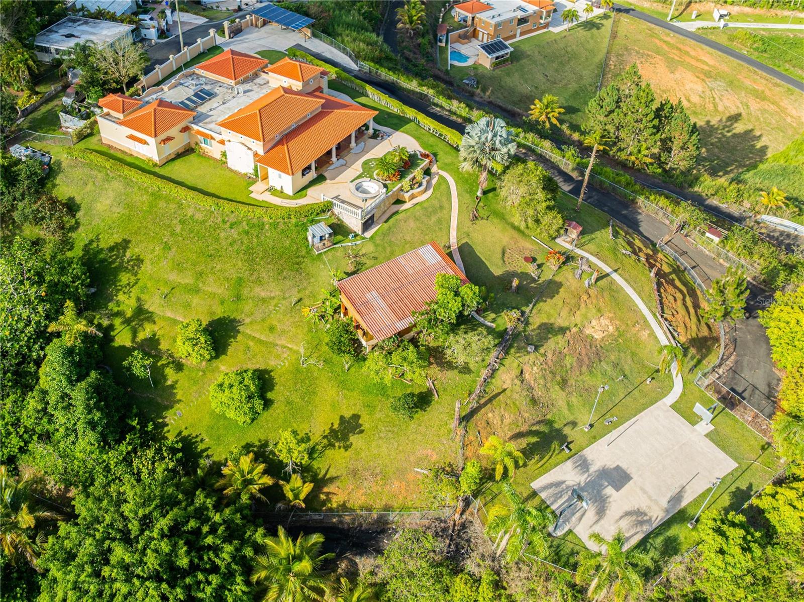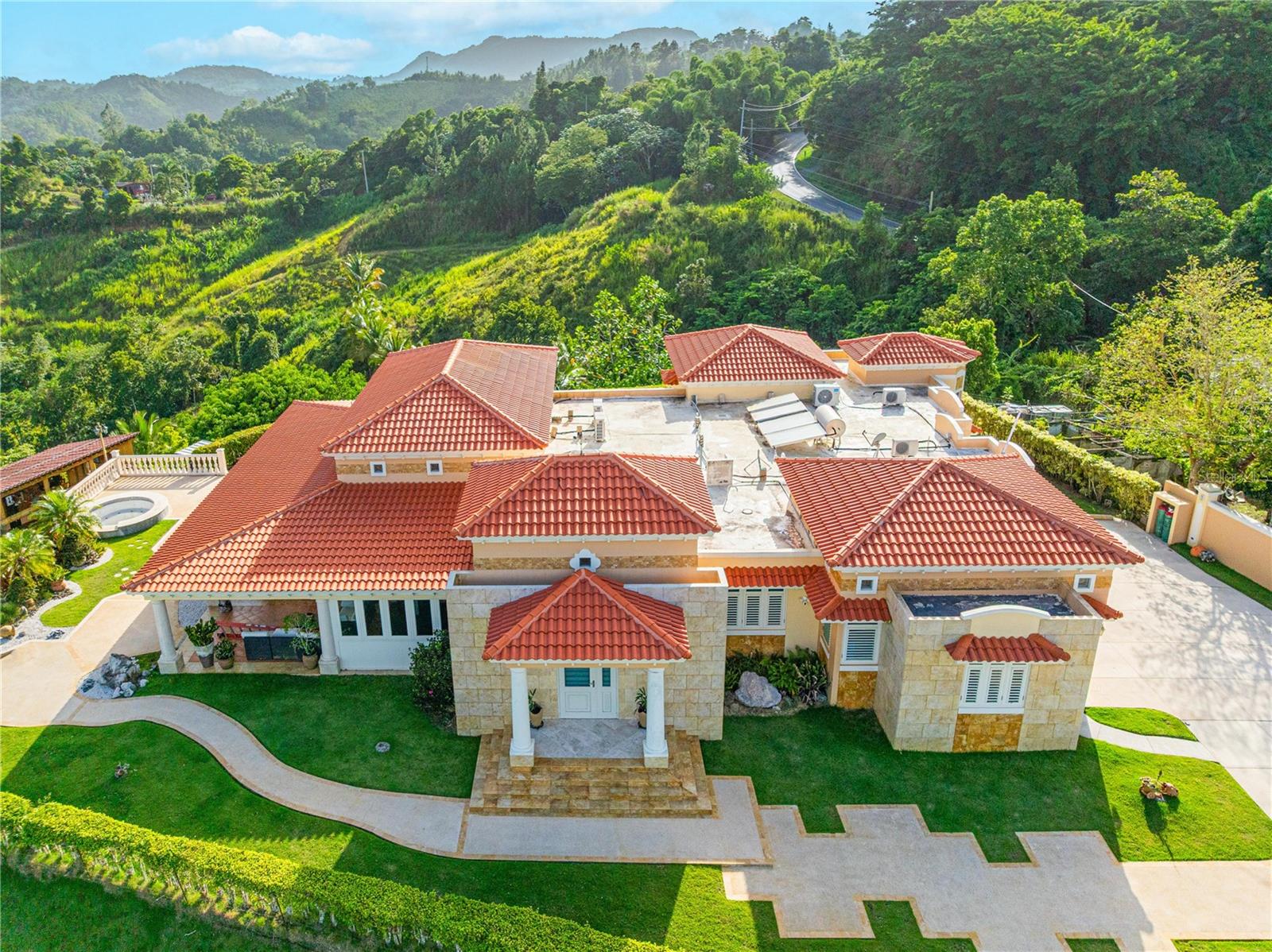 Villa Paz - um tesouro escondido nas montanhas de Barranquitas, Porto Rico Bem -vindo a Villa Paz, um santuário de elegância aninhado nas montanhas pacíficas da ala helechal, Barranquitas. Esta jóia imobiliária oferece mais de 8,10 acres de privacidade, vistas panorâmicas e comodidades de primeira linha-perfeitas para quem procura o melhor da vida. Esteja você procurando a casa dos seus sonhos ou um investimento estratégico, a Villa Paz oferece beleza atemporal, tranquilidade incomparável e um estilo de vida que combina sofisticação com a natureza. Imagine acordar com o som dos pássaros, bebendo café enquanto você aprecia vistas deslumbrantes e relaxando no jacuzzi sob as estrelas. Todo espaço é projetado para conforto, entretenimento e conexão - à natureza, aos seus entes queridos e a si mesmo. Residência principal (6.000 ft²): • 3 quartos espaçosos + 1 escritório particular • 4 banheiros completos + 1 meia banho no mirante • Viva, jantar e cozinha de conceito aberto • academia, área de lavanderia e garagem de 2 carros • terraço expansivo com vistas da montanha • Jacuzzi e Tribunal de Esportes Multipostos • Gazebo elegante com cozinha ao ar livre • Sistema de energia solar, gerador de backup completo e cisterna de água Estrutura adicional (1.500 ft²): • Edifício multiuso ideal para armazenamento ou expansão criativa Localizado a apenas uma hora de San Juan, este retiro no estilo mediterrâneo oferece o equilíbrio perfeito da vida moderna e da serenidade natural.