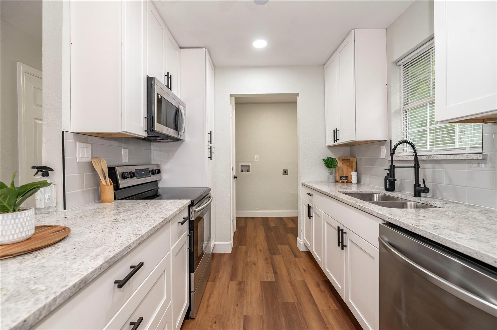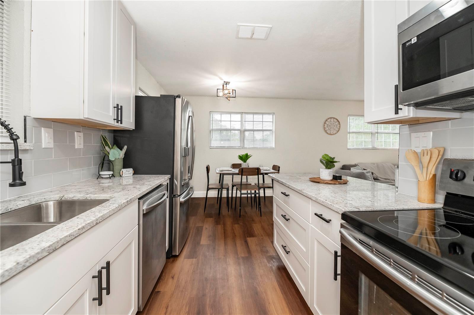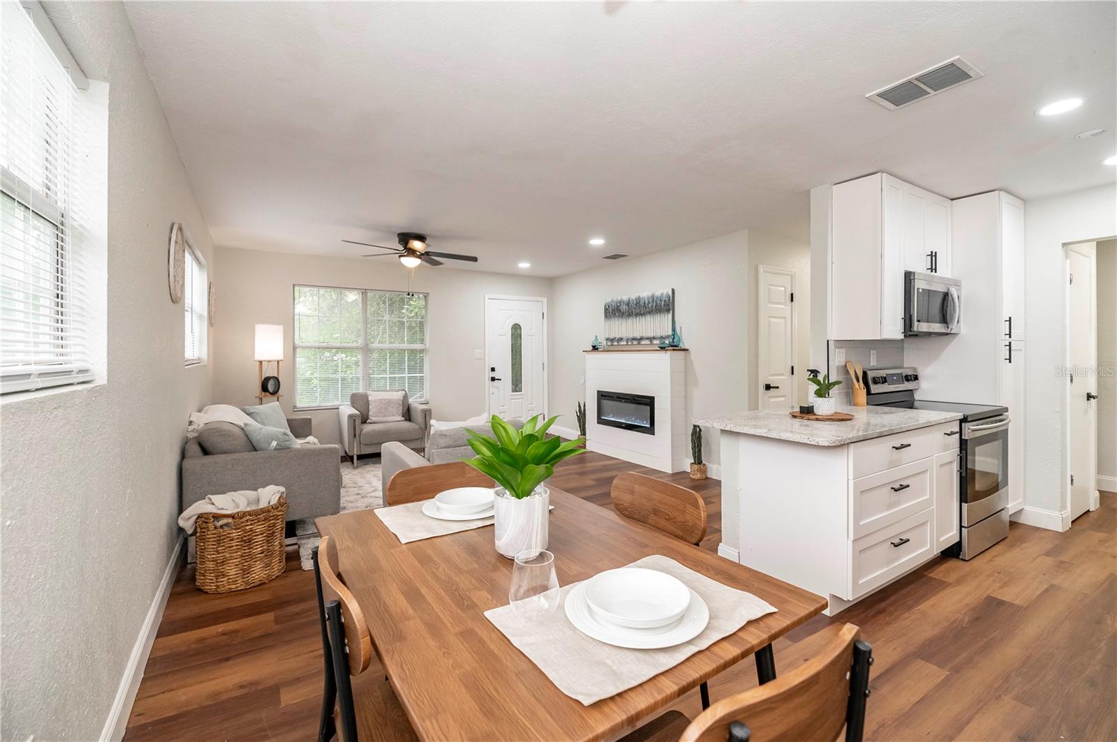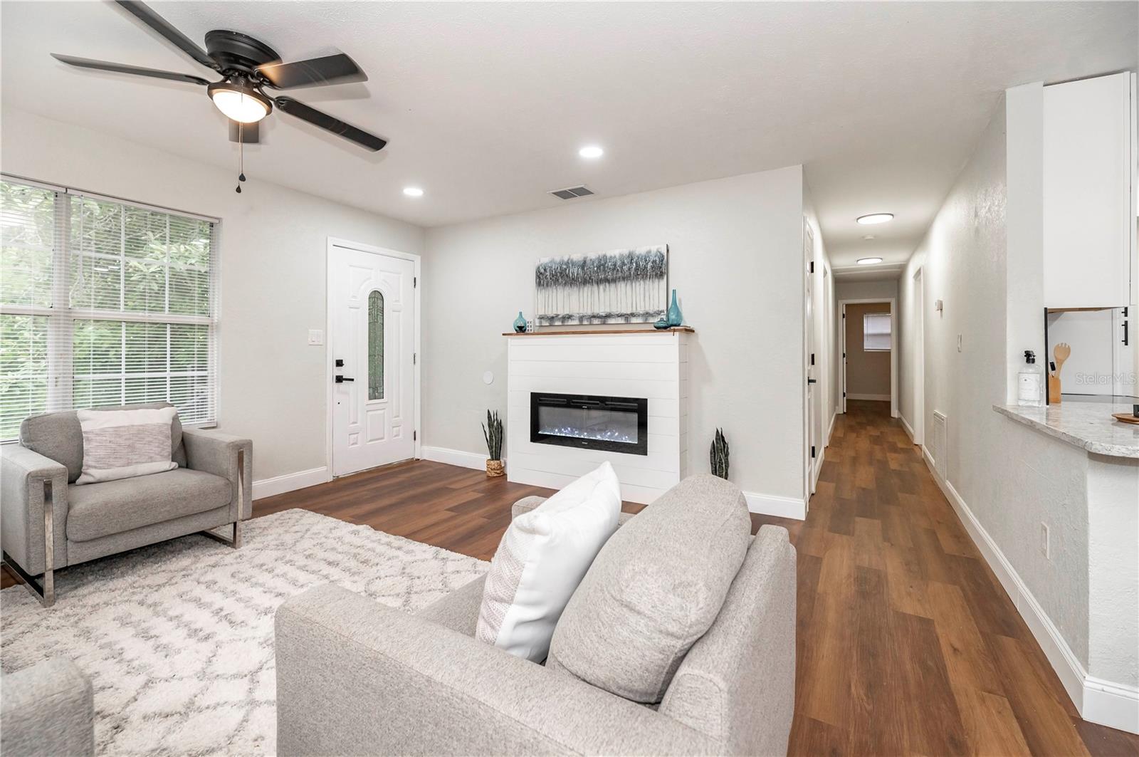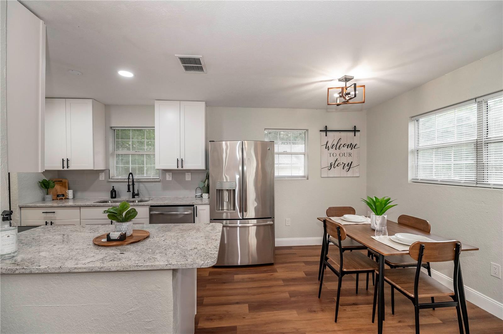 Remodelado quatro quartos, dois banheiros, localizados a poucos quilômetros de distância do centro de Bartow. Caminhe direto para o espaço aberto e vislumbre da bela lareira elétrica na área de estar! Esta casa foi equipada com tábuas de vinil de luxo à prova d'água em toda a casa, os modernos azulejos de hexagon preto em ambos os banheiros, chuveiro/banheira recém -azulejo, utensílios de aço inoxidável, bancadas de granito, armários de fechamento suaves e a lista continua! A entrada automaticamente fará você se sentir em casa! O quarto principal leva direto para o olho atravessando o banheiro totalmente remodelado com uma chuva na cabeça do chuveiro! A área de lavanderia está convenientemente localizada na cozinha e leva à porta do quintal lateral. O quintal de grande tamanho já foi parcialmente cercado! O exterior da casa é coberto de tapume de tábua resistente e foi pintada recentemente. Não perca a chance de comprar esta linda casa que está aguardando sua nova família!