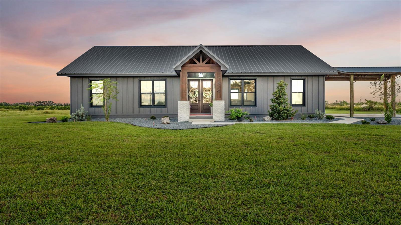 Linda casa em quase 5 acres! Esta casa personalizada foi construída no ano passado pela Williams Construction. Nenhuma despesa poupada. Exterior da placa hardi, janelas pretas atualizadas, teto de metal, bancadas de pedra, lareira, tetos altos, utensílios de aço inoxidável, grandes closet e chuveiros de walk-in. Piso de concreto polido por toda parte. Oferecendo baixa manutenção e durabilidade duradoura. A grande janela da cozinha não apenas olha para a propriedade, mas também se abre para que você possa servir os hóspedes. Aproveite a grande varanda dos fundos, feita para o pôr do sol Sittin e Sweet Tea Sippin! Ligue hoje para uma exibição particular!