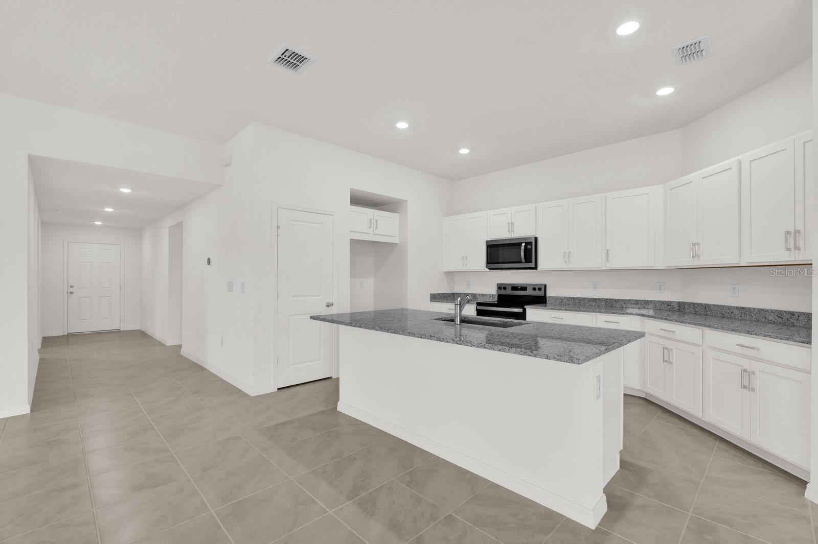 Esta impressionante casa térrea apresenta uma planta aberta com tetos volumosos e lindo piso de cerâmica. Aproveite a conveniência de uma lavanderia dedicada. A cozinha bem equipada possui uma ilha espaçosa de 36 pol. armários superiores, bancadas em granito, pia Kohler® embutida, torneira cromada Moen® e eletrodomésticos Whirlpool® em aço inoxidável. Relaxe na suíte principal, que dispõe de closet e banheiro conjugado com pia dupla, armário para roupa de cama e box amplo com azulejos. O pátio traseiro coberto oferece o cenário ideal para entretenimento e lazer ao ar livre.