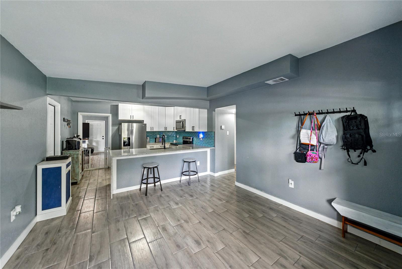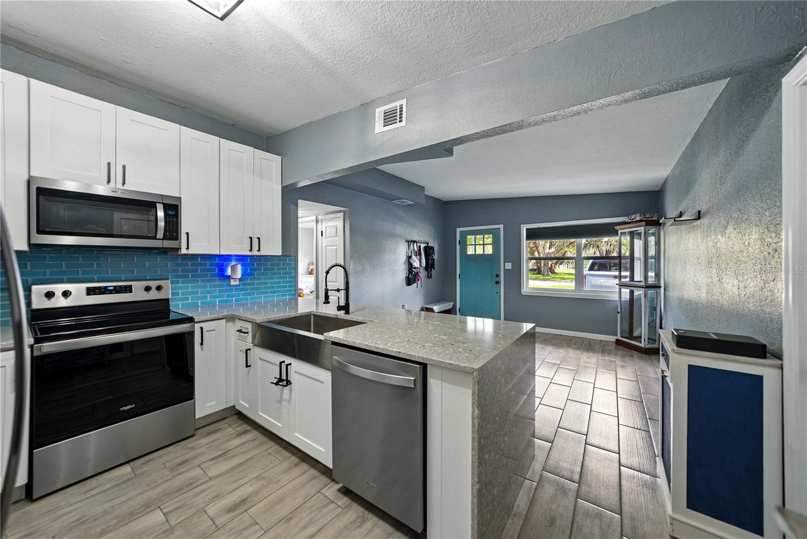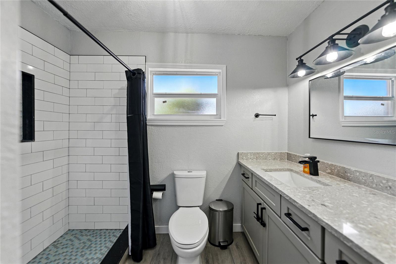 Novas reformas dão a esta casa clássica da Flórida um charme atual e conveniências modernas. A casa tem um design aberto para sua sala de estar e cozinha; Uma sala de jantar formal fica à beira da cozinha e atualmente é usada como uma sala familiar. O novo piso de ladrilhos de prancha em todos os links para a paleta neutra do interior da casa. A cozinha oferece lindos balcões de quartzo com assentos no topo da barra, backsplash decorativo e utensílios de aço inoxidável com pia da fazenda. O quarto principal oferece um closet e seu banheiro atraente tem um chuveiro grande e uma vaidade longa com bancada de quartzo. O segundo banho completo é equipado com uma pia de pedestal e paredes de ladrilhos de metrô ao redor da banheira, este banheiro é conveniente para os quartos adicionais que são adornados com portas de celeiro para o fechamento do armário. Círculos de cercas de privacidade O quintal que abriga um prédio de armazenamento com uma garagem pavimentada e um portão conectado a Bay St. E. Faça planos para ver esta encantadora casa situada no bairro encantador de Hack Lake e idealmente localizado perto das escolas ... ligue hoje!