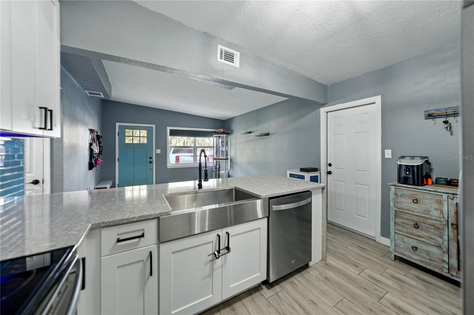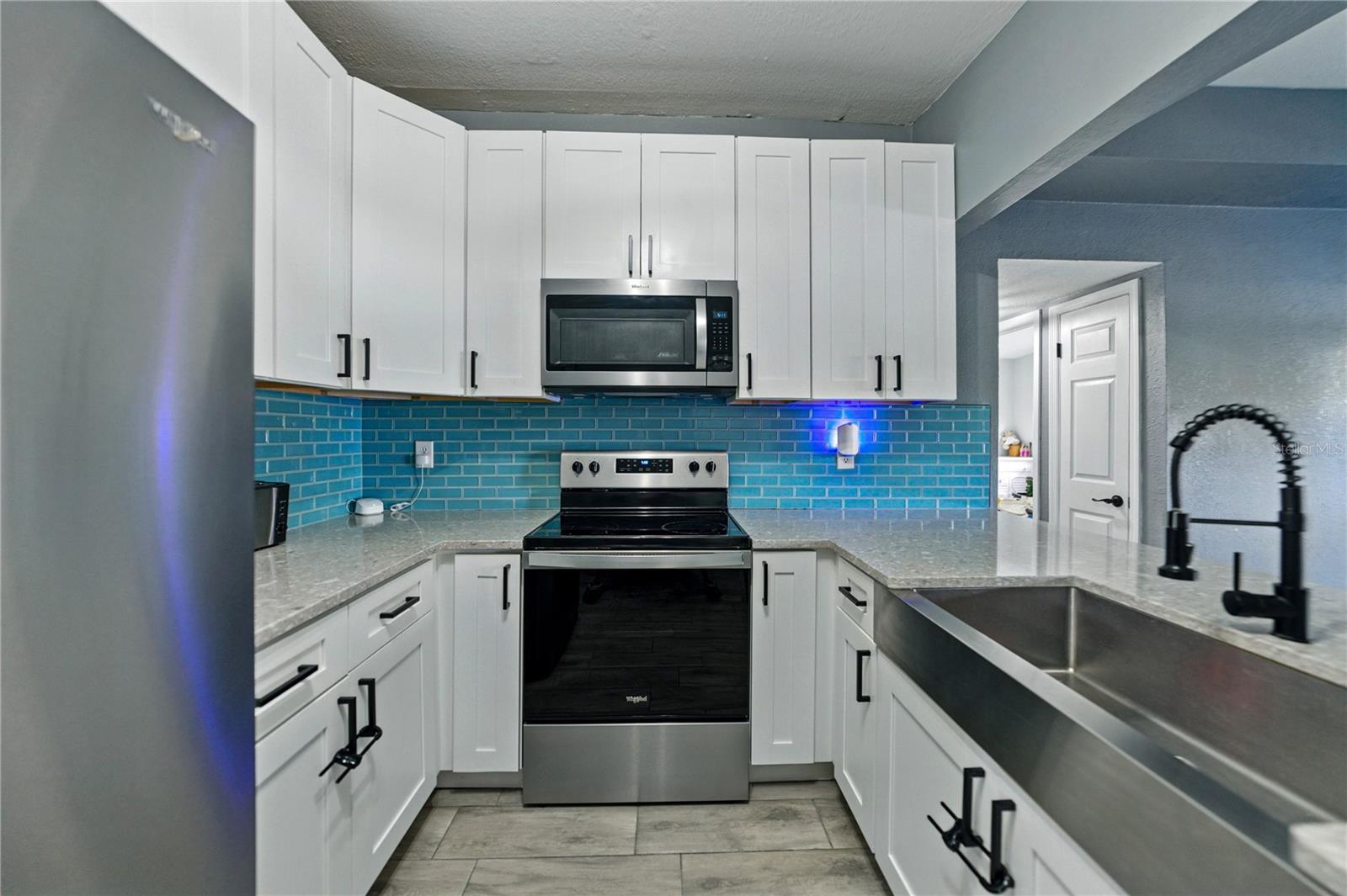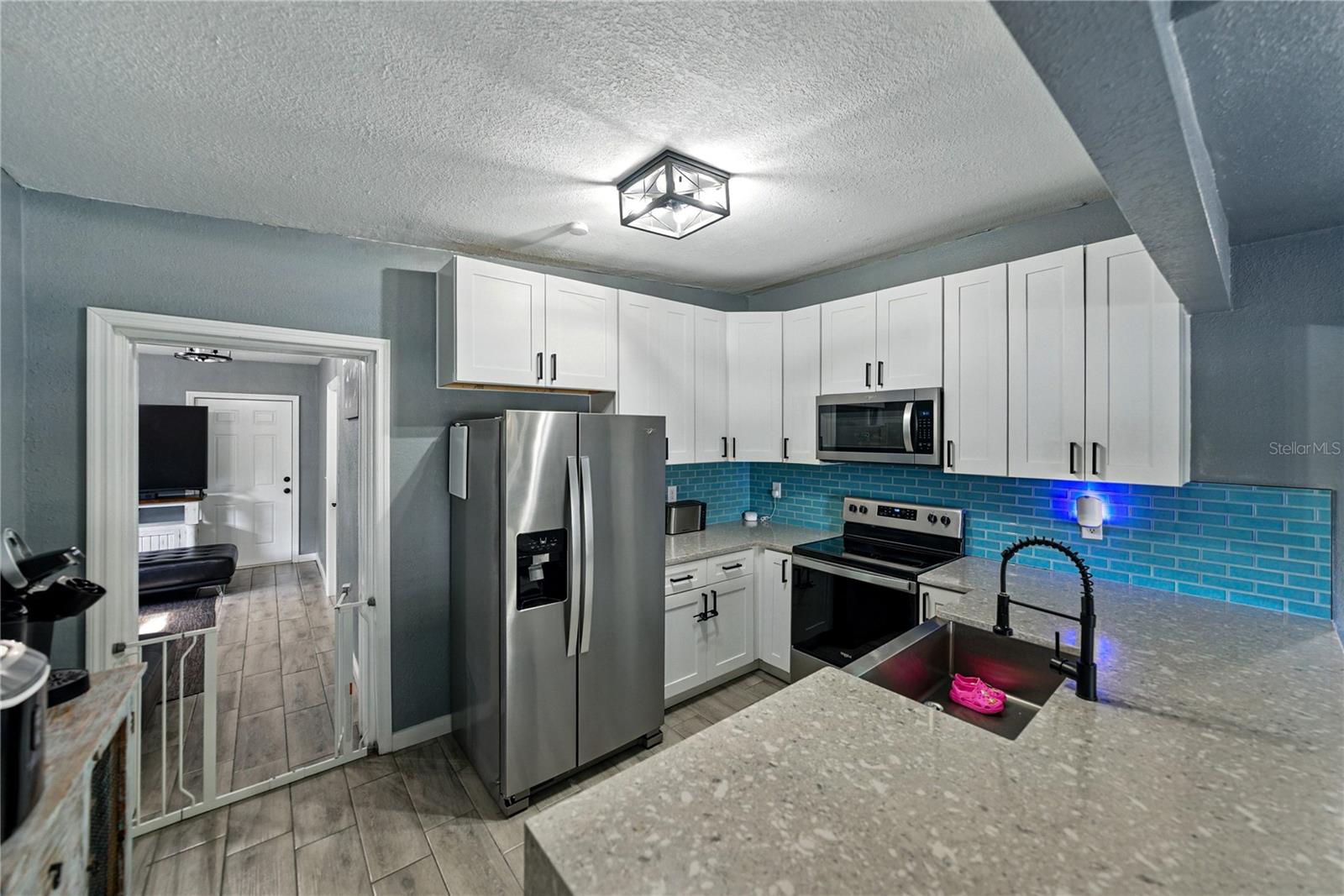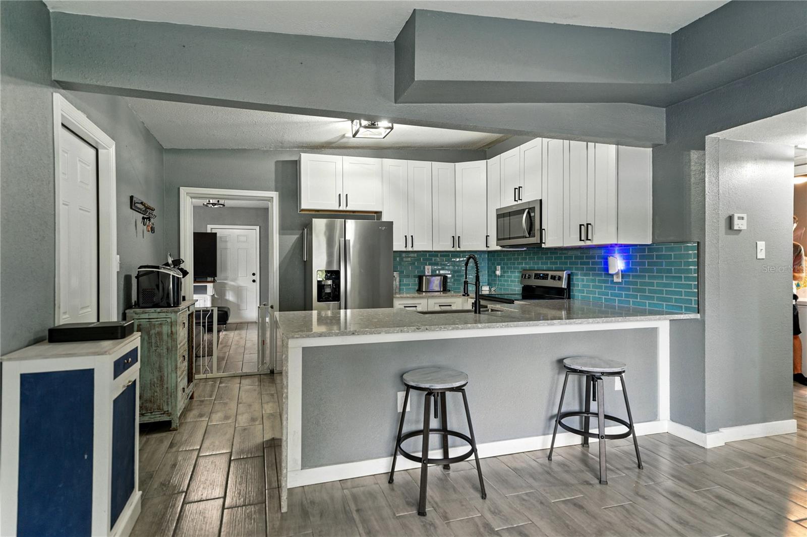 Novas reformas dão a esta casa clássica da Flórida um charme atual e conveniências modernas. A casa tem um design aberto para sua sala de estar e cozinha; Uma sala de jantar formal fica à beira da cozinha e atualmente é usada como uma sala familiar. O novo piso de ladrilhos de prancha em todos os links para a paleta neutra do interior da casa. A cozinha oferece lindos balcões de quartzo com assentos no topo da barra, backsplash decorativo e utensílios de aço inoxidável com pia da fazenda. O quarto principal oferece um closet e seu banheiro atraente tem um chuveiro grande e uma vaidade longa com bancada de quartzo. O segundo banho completo é equipado com uma pia de pedestal e paredes de ladrilhos de metrô ao redor da banheira, este banheiro é conveniente para os quartos adicionais que são adornados com portas de celeiro para o fechamento do armário. Círculos de cercas de privacidade O quintal que abriga um prédio de armazenamento com uma garagem pavimentada e um portão conectado a Bay St. E. Faça planos para ver esta encantadora casa situada no bairro encantador de Hack Lake e idealmente localizado perto das escolas ... ligue hoje!