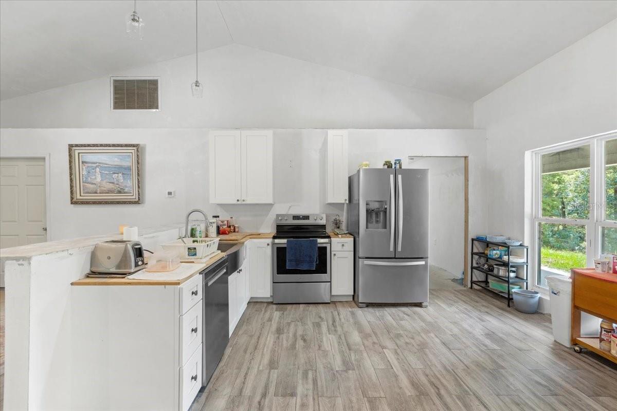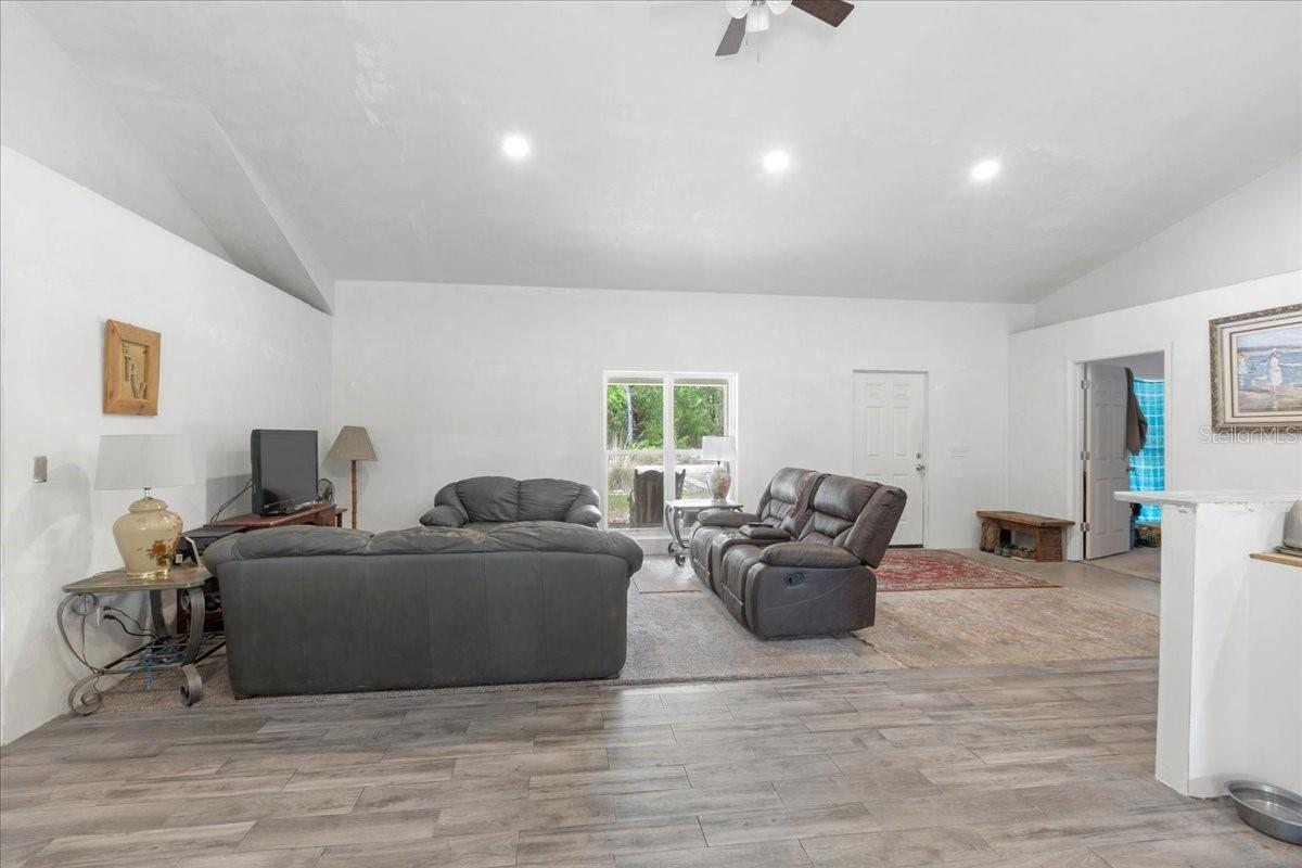 ESPAÇOSA casa CB 3 BD/2 BA CONSTRUÍDA DE QUALIDADE em quase 5 acres arborizados ao norte de Bell é uma casa sólida. O telhado de metal tem costura vertical, metal de calibre 24, que é o que normalmente é usado em prédios comerciais. Os intradorsos são de estuque. Esta casa foi construída para resistir a ventos fortes, se necessário. Uma grande e convidativa varanda frontal cumprimenta você enquanto você dirige até a casa e uma varanda traseira ainda maior tem vista para a colina gramada levemente ondulada do quintal. Desfrute de 2.632 m² de área de estar neste conceito de piso aberto com amplas áreas de estar, jantar e cozinha. A casa de plano dividido tem 2 quartos em uma extremidade da casa que compartilham um banheiro completo com banheira/chuveiro. O quarto principal, no lado oposto da casa, tem seu próprio banheiro completo com pia dupla, chuveiro e banheira oval independente. Uma despensa com bastante espaço para lavadora, secadora e freezer leva a uma Sala BÔNUS que pode ser transformada em suíte para sogra, escritório, sala de jogos, academia doméstica ou qualquer coisa que você possa precisar. Também tem entrada própria. O Vendedor continua finalizando alguns itens cosméticos em casa. Também na propriedade há 3 abrigos para garagem (2 com piso de concreto) E uma pequena casa de HÓSPEDES que inclui 2 BD/1 BA. Esta maravilhosa propriedade está situada na NW 21st Ave, que não é uma rua de passagem. Nenhum tráfego indesejado. Não há HOA aqui. Venha para o cenário campestre e desfrute da beleza tranquila que aqui existe! Perto dos rios Suwannee e Santa Fe, mas sem zona de inundação. Apenas alguns minutos para desfrutar de um rio e de várias nascentes de água doce.