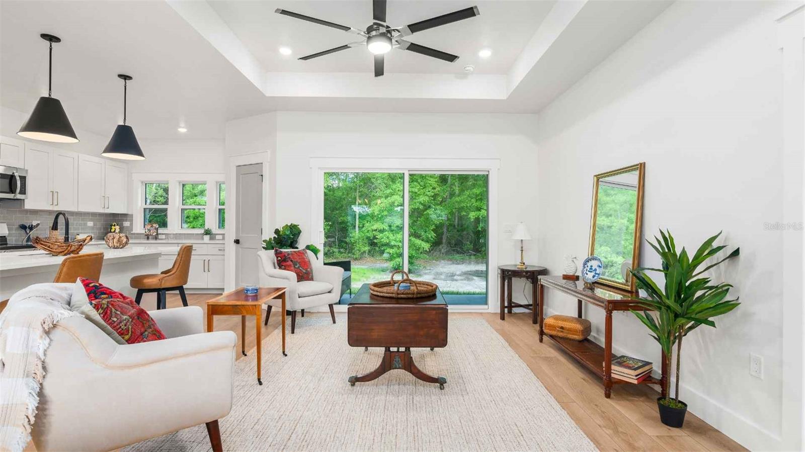 Uma ou mais fotos foram praticamente encenadas. O estilo encantador da fazenda encontra o conforto moderno em The Greenfield-uma casa lindamente projetada de 3 quartos e 2 banheiros pela Happy Home Construction. Com 1.394 pés quadrados de espaço bem elaborado, esta casa combina a estética rústica com a funcionalidade cotidiana, todos aninhados na pacífica cidade rural de Bell, Flórida. Entre para encontrar pisos de tábuas de vinil de luxo por toda parte, um layout aberto brilhante e uma cozinha que realmente entrega-pegando uma ilha de pinça dupla, eletrodomésticos, aparelhos de aço inoxidável, armários de madeira maciça de close macio, uma despensa espaçosa e bancadas de pedra com equipamentos pretos foste elegantes. A cozinha flui sem esforço para as áreas de jantar e de estar, criando um espaço caloroso e acolhedor para entretenimento ou relaxamento. A suíte primária é o seu retiro pessoal, completo com um banheiro privativo do tipo spa com pias duplas, um armário de água privado, um chuveiro de luxo e um armário tão grande que você ficará tentado a fazer compras apenas para preenchê-lo. Dois quartos adicionais compartilham um segundo banheiro bem equipado. Os recursos inteligentes incluem um sistema de controle de pragas TAEXX embutido, uma configuração doméstica inteligente e uma lavanderia/mudroom combinada que se conecta diretamente à garagem de 2 carros-mantendo as coisas práticas e limpas. Saia de uma varanda traseira aconchegante e desfrute do ar fresco e do charme descontraído do seu entorno. Localizado a poucos minutos do Rio Suwannee e Hart Springs e, com fácil acesso às compras, restaurantes e assistência médica de Gainesville, o Greenfield oferece o equilíbrio perfeito da vida silenciosa do campo e a conveniência moderna. As fotos são de um modelo Greenfield anteriormente construído em abril de 2025)