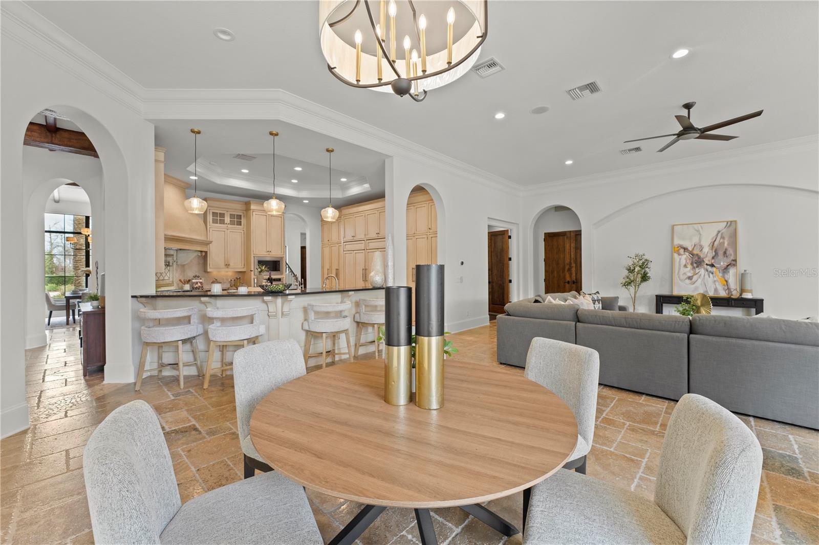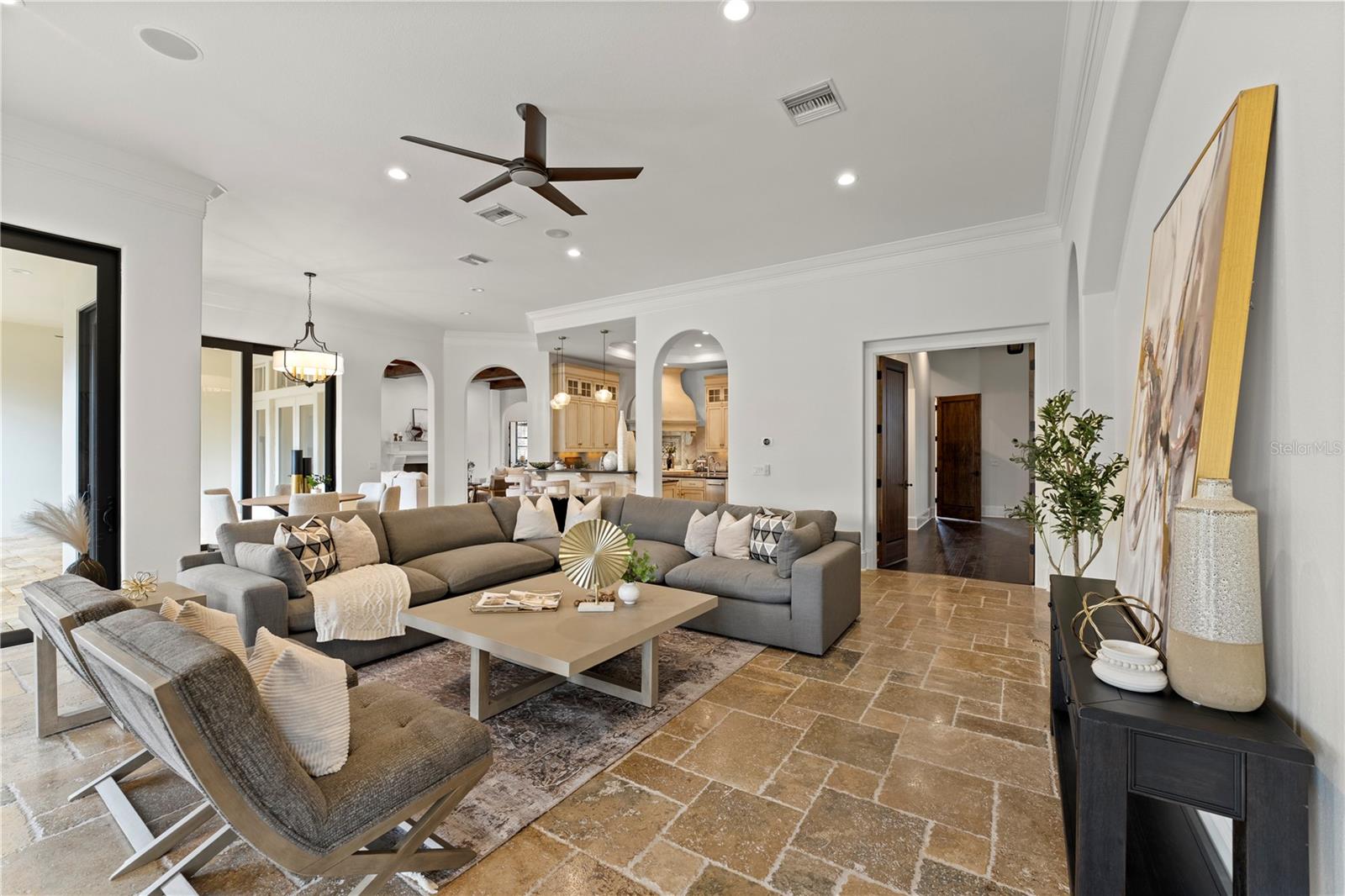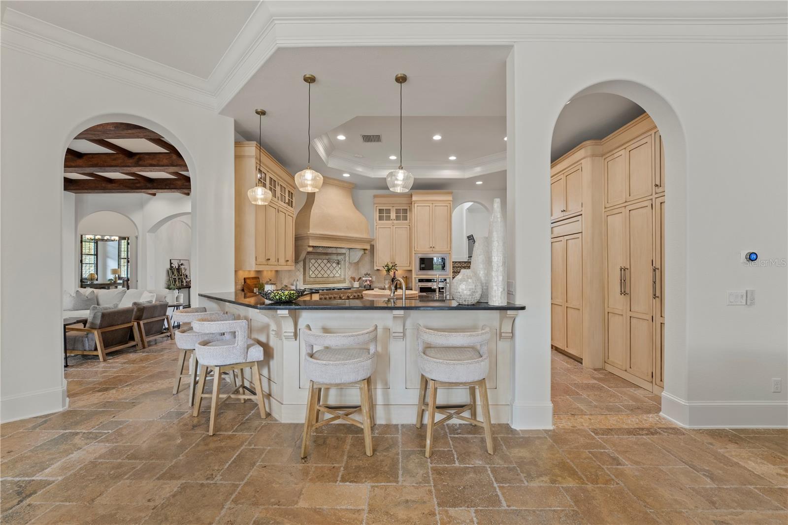Nenhum detalhe foi negligenciado nesta propriedade luxuosa, uma verdadeira obra -prima brilhando com luz e calor naturais. Projetado com acabamentos personalizados premium e criados a partir dos melhores materiais, esta casa está em uma liga própria. Os destaques incluem travertino exótico de Onyx, pisos de madeira arranhada à mão, vigas de madeira personalizadas e detalhes complexos de teto por toda parte, moldagem por coroa em todos os cômodos e armários de busby complementados por equipamentos de bronze personalizados e trabalho de ladrilhos requintado. A casa recebe você com impressionantes portas de entrada de madeira grandes e deslumbrantes e apresenta tinta interior e externa fresca, aumentando seu apelo atemporal. O nível principal inclui uma adega de vinho afundada, sala de teatro/bônus, sala de jogos com tetos de capital deslumbrante, um escritório particular e uma suíte primária de grandes dimensões com um banheiro semelhante ao spa. A cozinha gourmet é o sonho de um chef, apresentando espaço abundante para o gabinete, uma geladeira/freezer de lobo de zero sub-zero, uma gama de gases de 6 queimadores de KitchenAid com uma chapa lateral e fornos duplos, um forno de microondas KitchenAid e forno de convecção, pescador e lava-louças de paykel, enchimento de panela e dois panfileiros de entrada e duas entradas. No andar de cima, quatro quartos com suíte, uma sala de família adicional e uma grande varanda oferecem vistas deslumbrantes do quintal e da reserva natural. A casa é pré -conectada para um sistema de áudio premium, além de um sistema de segurança e câmera, garantindo tranquilidade e uma experiência de vida aprimorada. Os espaços internos e externos se misturam perfeitamente com três conjuntos de portas deslizantes de 10 pés se abrindo para a extensa velhai. A cozinha ao ar livre possui uma churrasqueira de nível comercial, fumante, assentos de bar elevados e um piso de travertino, oferecendo estilo e durabilidade. Várias áreas para refeições e assentos tornam este espaço perfeito para entretenimento. Uma área externa separada com um forno de pizza de pedra também possui um piso de travertino, acrescentando elegância e continuidade. A piscina de Pebbletec aquecida e o spa apresentam iluminação LED, recursos de água impressionantes e sistema de automação para controle conveniente e ambiente semelhante ao resort. Uma lareira de duas vias conecta a área de Lanai e piscina, oferecendo calor e charme a ambos os espaços. Aninhado em um lote privado, o pátio paisagístico extensivamente inclui novos sod, plantações frescas e um quintal totalmente cercado. Destaques arquitetônicos, como um teto de barril de ladrilhos, corbels decorativos e detalhes em pedra, melhoram ainda mais o charme atemporal da casa. Os recursos adicionais incluem um gerador de backup e uma garagem com ar-condicionado com uma grande área de oficina. Esta propriedade oferece luxo e sofisticação incomparáveis, redefinindo o significado de casa. O clube da Bella Collina oferece um estilo de vida vibrante com delícias culinárias e eventos sociais durante todo o ano, para todas as idades. Desfrute de uma rodada de golfe no impressionante curso de Nick Faldo, ou relaxe em um dos terraços cênicos nos restaurantes do clube. As comodidades adicionais de classe mundial incluem quadras de tênis Har-Tru iluminadas, quadras de pickleball, um amplo complexo de piscinas ao ar livre e um spa e centro de fitness, com uma variedade de classes de fitness de cortesia. Entre em contato conosco hoje para saber mais sobre esta casa extraordinária e o estilo de vida incomparável em Bella Collina! Inclui o adiamento de depósito de depósito de US $ 40.000 do Sports do construtor e uma garantia da Guarda do Liberty Home Guard de três anos !! 3 novos compressores de HVAC com garantia de 10 anos do fabricante. Financiamento do vendedor disponível