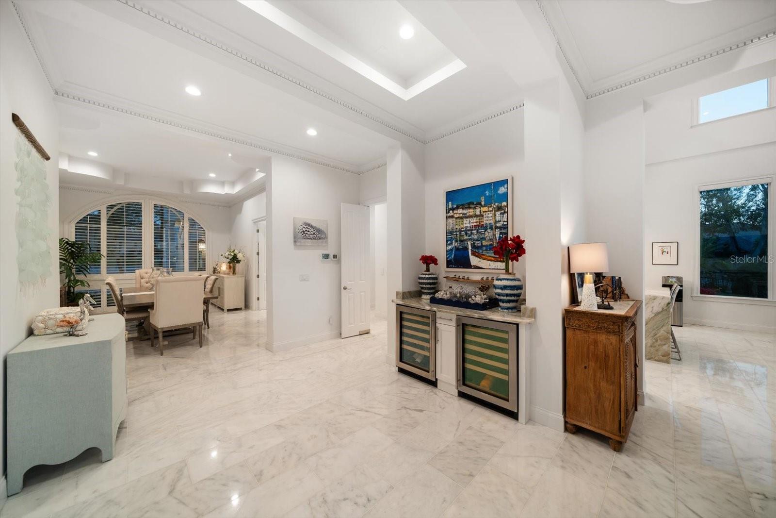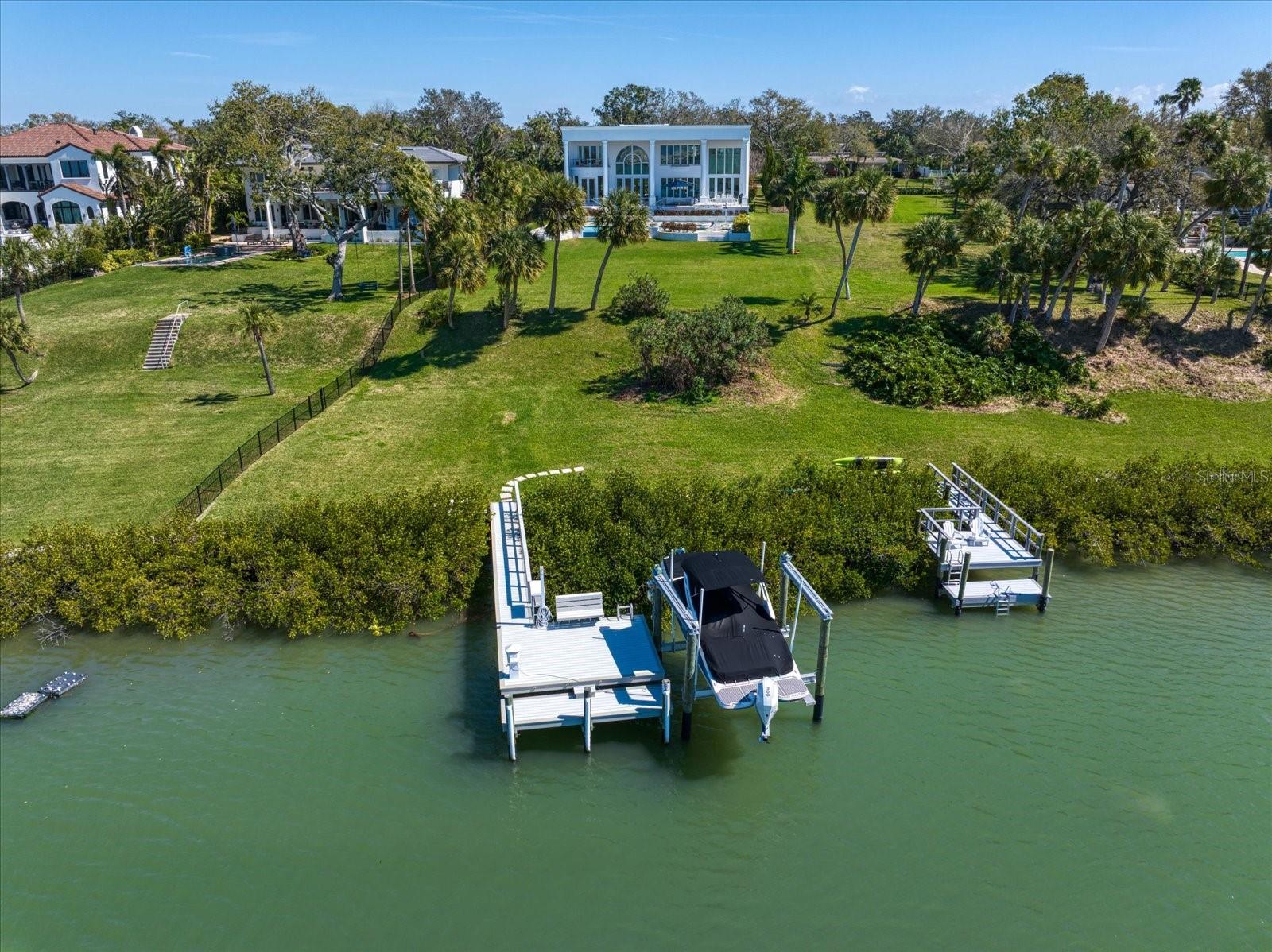 Experimente o luxo moderno nesta propriedade contemporânea empoleirada no topo de um penhasco, com mais de 35 pés de altura acima da elevação da base em um lote de 1 hectare de 1 hectare com vistas deslumbrantes da via hidrográfica intracoastal. Ao entrar no Grand Hallyer, você é recebido por uma impressionante escada dupla e tetos altos de mais de 20 pés que levam perfeitamente a uma ampla sala de estar emoldurada por janelas do chão ao teto. O elegante piso de mármore de pérola flui em toda a casa, enquanto os quartos mostram pisos ricos em madeira. Portas de vidro expansivas e generosas janelas capturam o pôr do sol perfeito para imagens o ano todo. Esta residência possui uma variedade de recursos sofisticados, incluindo aparelhos profissionais de Wolf, Sub Zero e Bosch, duas lareiras lineares luxuosas, um sistema de iluminação LED recuado e um elevador privado. A enorme cozinha do chef apresenta bancada de ônix, armários brancos, preenchimento de panela, lava -louças duplas, alcance de gás e é um ótimo lugar para se divertir. A suíte primária do primeiro andar oferece vistas deslumbrantes, uma lareira linear e armários duplos. O banho primário possui um chuveiro fechado de vidro, vaidade flutuante dupla e banheira de imersão. Os quartos adicionais e o loft estão subindo a Grand Staircase e têm tetos altos, molduras personalizadas, armários. Aproveite a conveniência das instalações de lavanderia completas nos pisos e nos sistemas de armário equipados personalizados. Destaques adicionais incluem uma espaçosa garagem de três carros, detalhes em pedra natural refinada, refrigeradores de vinho com temperatura controlada, um loft, áreas de vida formal e jantar e um terraço de mármore ao ar livre. Dia ou noite, relaxe lá fora e desfrute de vistas deslumbrantes e desfrute de uma piscina/spa infinita no estilo resort com tigelas de fogo. Com mais de 100 pés de fachada de água e uma doca de barco composto com elevador de 15k lb., há águas profundas e fácil acesso ao Golfo. Essa localização excepcional, a configuração elevada e a construção premium tornam este patrimônio único um imóvel absoluto.