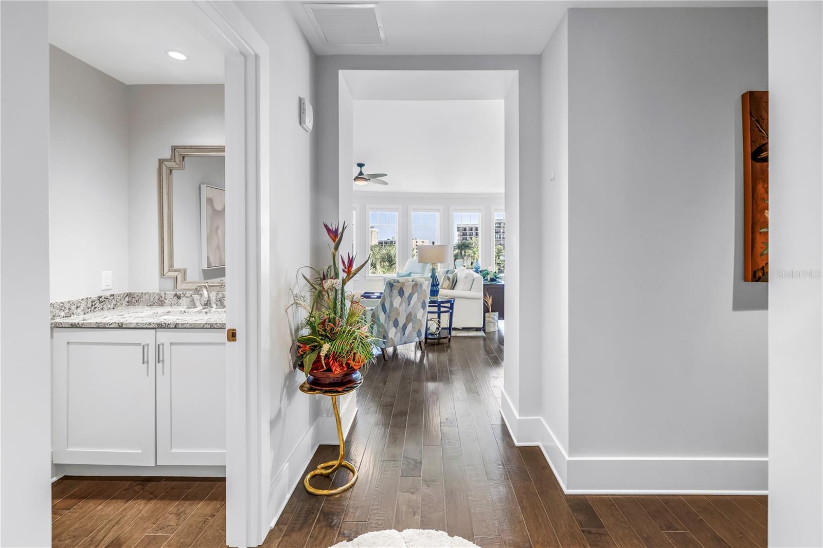 Experiência Livetal refinada Living nesta residência lindamente criada no Brightwater Building em Belleview Place, um condomínio fechado construído em 2019. Ponchado em um blefe natural de 35 pés, esta casa oferece um cenário sereno a apenas momentos do histórico Belleview Inn e do Belleair Country Club. No interior, uma parede de janelas enche o espaço aberto com luz natural e mostra vistas deslumbrantes. O layout cuidadosamente projetado conecta a cozinha, a área de jantar e o espaço principal-ancorados por pisos de madeira larga e acabamentos limpos e modernos. A cozinha possui aparelhos de aço inoxidável Jenn-Air, backsplash de ladrilhos elegantes, armários generosos e um layout adaptado para a função cotidiana e o entretenimento sem esforço. A suíte primária oferece um retiro calmo com piso de madeira, acesso ao terraço, um closet e um banho de banheiro privativo bem acabado com ladrilhos de porcelana leve, acessórios sofisticados e armazenamento aprimorado. A suíte convidada também possui pisos de madeira, acesso ao terraço e um banho completo privado. Uma sala de pó bem posicionada do hall de entrada adiciona conveniência para os hóspedes, enquanto a espaçosa lavanderia inclui uma pia profunda, armários e lavadora e secadora de gás empilhados. Destaques adicionais incluem dois vagas de estacionamento de garagem atribuídas, uma unidade de armazenamento com ar-condicionado, janelas de painel triplo, sistemas com eficiência energética e acesso seguro ao edifício. Os moradores de Belleview Place desfrutam de um estilo de vida tranquilo e sem manutenção, com acesso à piscina do resort do Belleview Inn (aquecida no inverno, resfriada no verão), varandas envolventes e caminhadas cênicas. Adequado para animais de estimação e rico em história, essa comunidade combina caráter atemporal com conforto moderno-apenas a uma curta viagem de praias, compras e refeições.