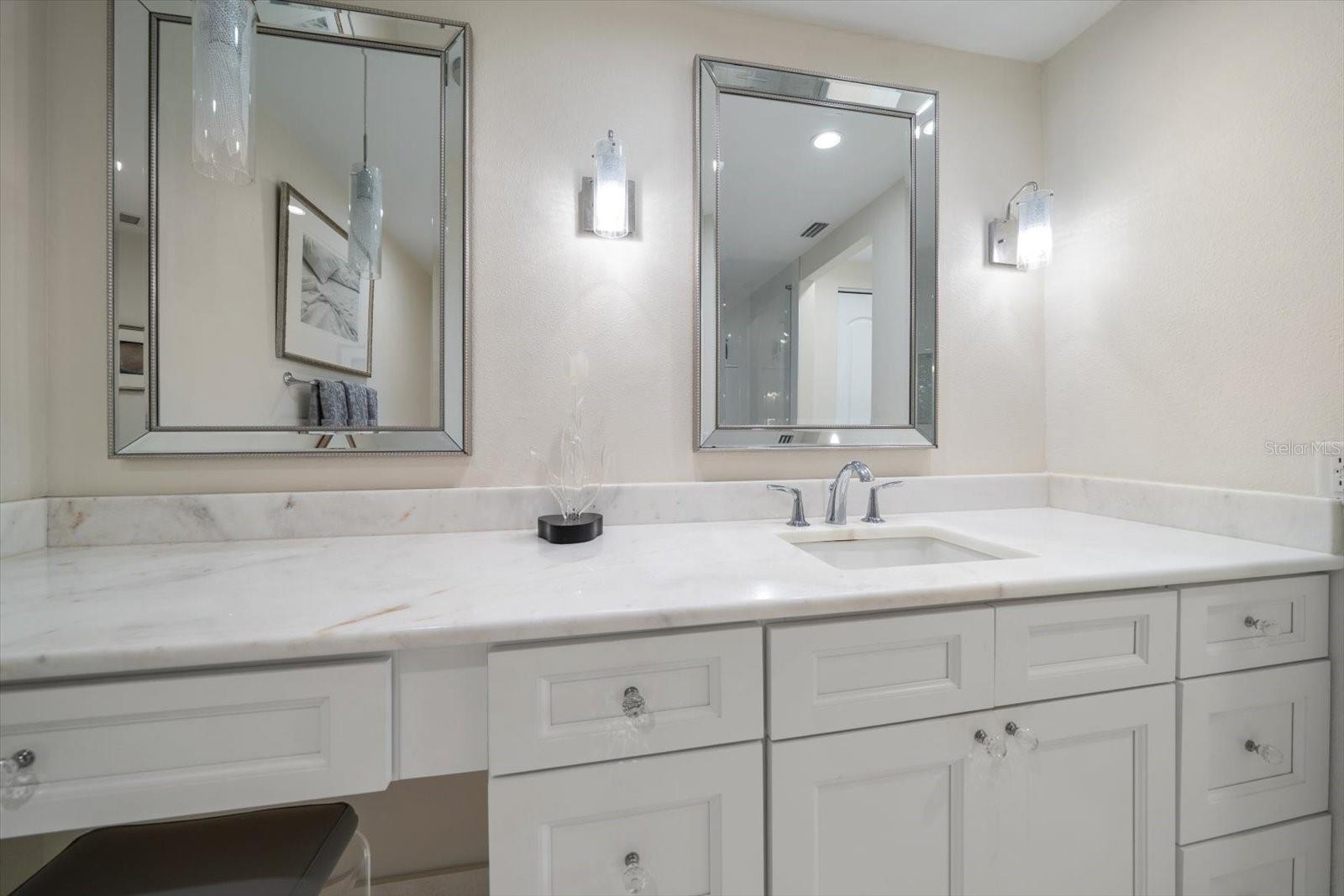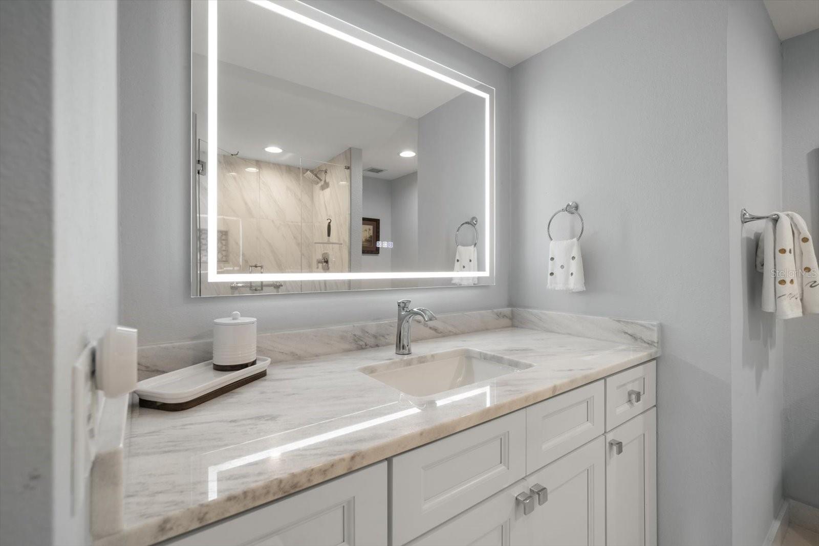 Escondida atrás dos portões privados e vigiados do prestigiado Belleair Country Club, esta unidade de canto lindamente renovada no terceiro andar do cobiçado edifício South Garden oferece a combinação perfeita de luxo, conforto e elegância costeira. Este condomínio pronto para morar com 2 quartos e 2 banheiros é banhado por luz natural e apresenta acabamentos de designer por toda parte, incluindo piso de mármore, tons neutros e persianas com controle remoto. Um hall de entrada acolhedor apresenta o espaçoso layout aberto, onde a deslumbrante cozinha apresenta armários brancos, bancadas de mármore reluzentes, uma pia de fazenda, fogão de indução, eletrodomésticos de aço inoxidável, refrigerador de vinho e balcão de café da manhã - tudo fluindo perfeitamente para as salas de jantar e familiares. Uma parede de controles deslizantes se abre para uma varanda privativa com um exuberante campo de golfe e vistas deslumbrantes da Intracoastal, o cenário perfeito para o café da manhã ou o pôr do sol à noite. A luxuosa suíte principal oferece dois armários personalizados, controles deslizantes para a varanda e um banheiro inspirado em spa com penteadeira de mármore e chuveiro com belos azulejos. O quarto adicional é igualmente convidativo, com amplo closet e acesso a um banheiro reformado completo com penteadeira, balcões de mármore, espelho LED e box amplo. Janelas e controles deslizantes com código de furacão oferecem tranquilidade, e o edifício seguro inclui acesso a um pool comunitário. Idealmente localizado perto de dois campos de golfe privados, restaurantes requintados, boutiques e das mundialmente famosas praias de areia branca, esta é a vida da Flórida no seu melhor. A propriedade deste edifício coloca o proprietário no topo da lista do Belleair Country Club, um grande benefício.