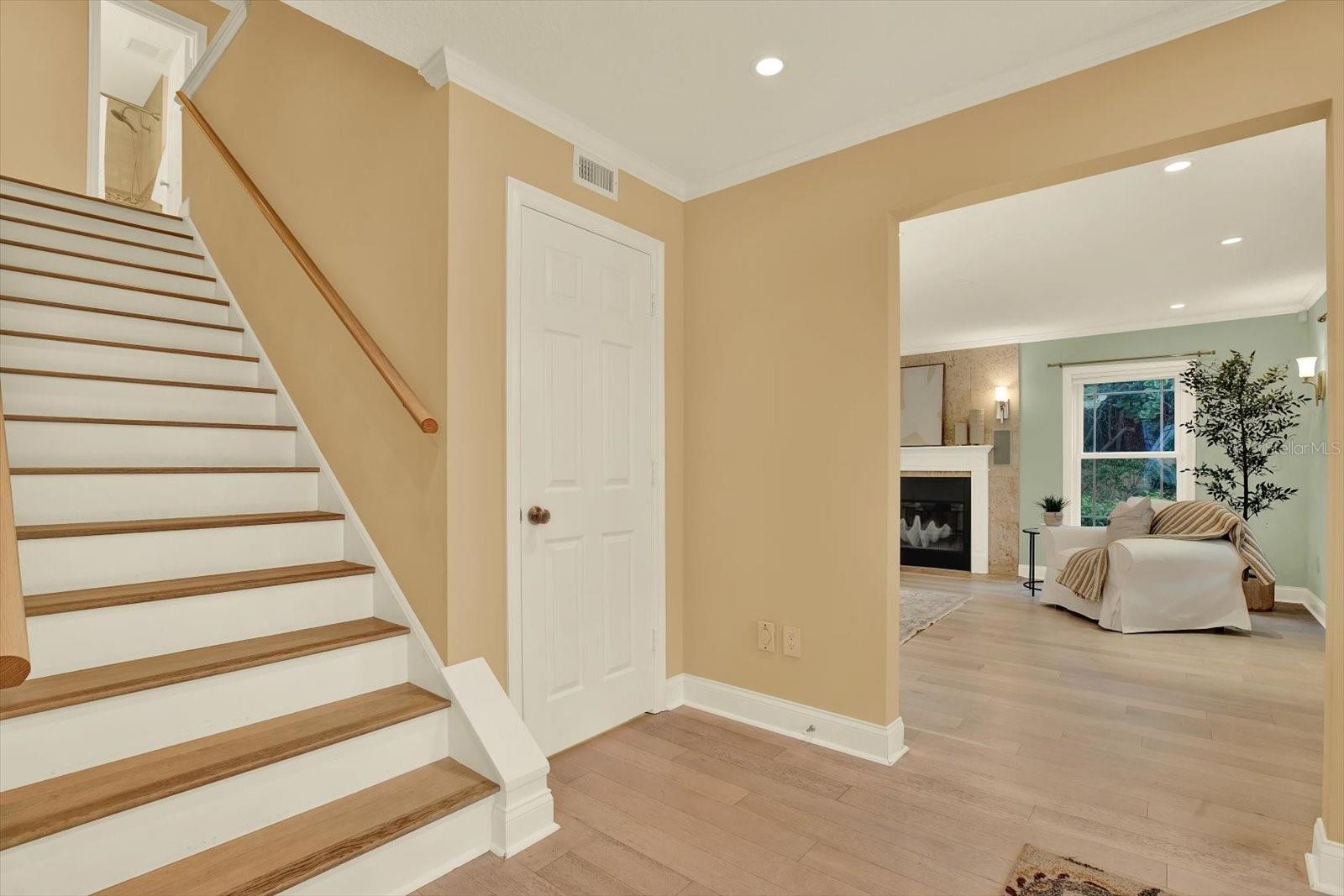 CASA BELLEAIR LINDAMENTE ATUALIZADA EM UM LOTE DUPLO RARO E PRIVADO DE GRANDE DIMENSÃO! Situada em frente a um parque de bairro tranquilo, esta casa 3BR / 2.5BA de 2.784 pés quadrados combina charme atemporal com recursos modernos e atenciosos, uma garagem enorme para trailers/barcos e total privacidade no quintal atrás de uma parede perimetral completa. As espaçosas áreas de estar apresentam pisos de madeira, sancas e luz natural abundante. A cozinha gourmet é o sonho de qualquer chef - oferecendo uma grande ilha de granito, fogão a gás com enchimento de panelas, fornos de convecção dupla, gaveta de aquecimento e armazenamento tipo despensa. Uma SALA DE BÔNUS flexível de NÍVEL PRINCIPAL é perfeita para um escritório doméstico, academia ou sala de jogos. No andar de cima, a ampla suíte principal inclui um WALK-IN CLOSET, armários embutidos, pia dupla e lavanderia privativa. O 2º andar inclui ainda um 2º quarto com casa de banho completa anexa com banheira e um quarto de hóspedes com armários personalizados que também funcionam como escritório. Desfrute da vida ao ar livre em um ambiente paisagístico com árvores maduras, jardim de borboletas, varanda nos fundos e pátio de pedra - um retiro ideal para relaxar ou se divertir. Um achado raro em Belleair, a OVERSIZED ATTACHED RV/BOAT GARAGE (40' x 17' com tetos de 14' e porta de 12'x12') inclui A/C de parede, serviço de 300 A, armazenamento embutido e uma bancada de trabalho, oferecendo versatilidade incomparável. DESTAQUES ADICIONAIS INCLUEM JANELAS DE IMPACTO DE FURACÃO, DOIS NOVOS SISTEMAS HVAC COM GARANTIAS TRANSFERÍVEIS DE 10 ANOS, REFORMADOS DURANTE UMA GRANDE RENOVAÇÃO, VENTILADORES SOLARES DE SÓTÃO, CONEXÃO DE GERADOR E UM SISTEMA DE SEGURANÇA. NÃO É NECESSÁRIO SEGURO CONTRA INUNDAÇÕES e não há piscina para manter. A poucos minutos do Belleair Country Club, praias, lojas e restaurantes. Esta casa pronta para morar oferece espaço, privacidade e valor excepcional em uma das áreas mais desejáveis de Belleair!