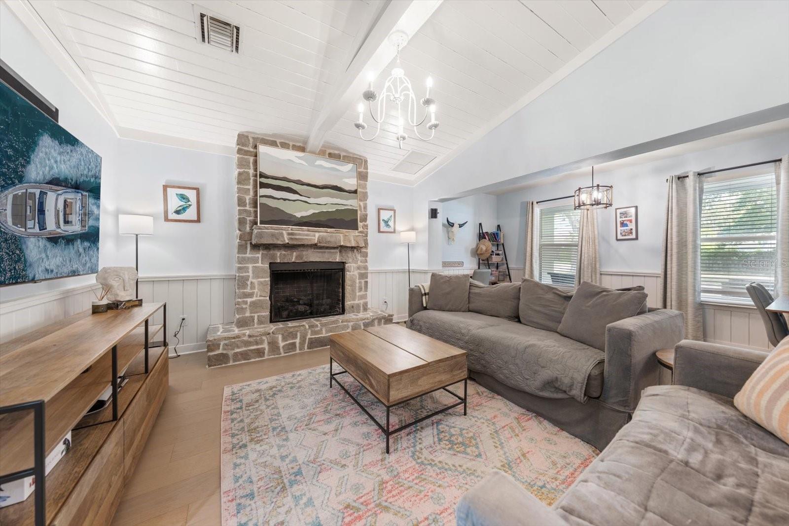 Perfeitamente posicionada em um generoso terreno de esquina no coração de Belleair, esta casa pronta para morar combina charme atemporal com conforto moderno. Carvalhos majestosos emolduram a convidativa varanda frontal, dando o tom para o interior cheio de luz, onde o piso neutro de tábuas largas, o lindo shiplap e os impressionantes tetos com vigas criam calor e personalidade por toda parte. Uma planta baixa aberta e arejada gira em torno de uma cozinha deslumbrante com uma ilha enorme, pia frontal, eletrodomésticos de aço inoxidável e fluxo fácil para a sala de família com uma lareira aconchegante - ideal para a vida cotidiana e entretenimento. Os controles deslizantes se abrem para um oásis privativo no quintal cercado, completo com pátio com tela, piscina cintilante e spa. O desejável layout de quarto dividido oferece um retiro primário espaçoso com tetos com vigas e shiplap, e um charmoso banheiro com banheira com pés, box amplo e acesso conveniente à banheira da piscina. Os quartos adicionais são igualmente luminosos e convidativos, compartilhando um banheiro lindamente atualizado com penteadeira personalizada e azulejos de design. Uma grande lavanderia, janelas e portas de impacto e um gerador para toda a casa acrescentam tranquilidade, tudo a poucos minutos de dois campos de golfe privados, boutiques, restaurantes, parques e das famosas praias da região.