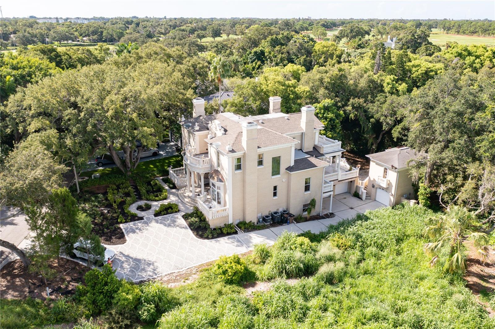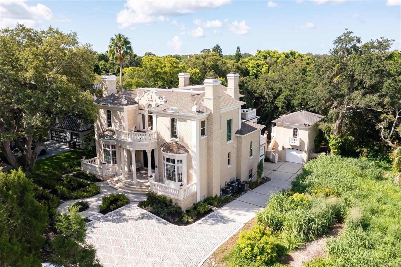 ALTO E SECO, SEM DANIFICADOS POR FURACÕES RECENTES! E MELHORIA DE PREÇO! Empoleirada majestosamente no enclave exclusivo de Belleair, Flórida, esta propriedade palaciana simboliza o auge da vida luxuosa. Situada no meio dos jardins bem cuidados de um prestigioso clube de campo, esta ampla residência de 6 quartos e 5,5 banheiros é uma sinfonia de opulência e refinamento. À medida que você se aproxima, a grandeza da casa se revela com suas portas frontais de madeira em arco meticulosamente esculpidas à mão, recebendo você em um hall de entrada adornado com tetos altos adornados com lustres deslumbrantes importados dos melhores ateliês da Áustria. Cada detalhe exala artesanato e exclusividade sob medida, estabelecendo um padrão de elegância incomparável. O coração da casa é a cozinha dos sonhos de um chef, uma obra-prima de design culinário com uma linha comercial Wolf de nível profissional com 6 queimadores a gás, fornos duplos e geladeiras duplas de aço inoxidável perfeitamente integradas em armários de cerejeira personalizados e adornadas com requintadas bancadas de granito . É uma mistura de funcionalidade e domínio estético, atendendo aos gostos epicuristas mais exigentes. A sala de estar, a pièce de résistance, oferece vistas panorâmicas através de amplas janelas que se abrem para uma ampla varanda externa, convidando o exterior a entrar. No interior, um teto esculpido à mão preside uma lareira personalizada esculpida em ouro e mármore, criando um ambiente de grandeza e calor incomparáveis. Subir ao terceiro nível revela um santuário privado, incluindo uma suíte master adornada com sua própria lareira imponente e um escritório privado que exala sofisticação. O banheiro principal é um santuário de indulgência, com pia dupla de mármore, box amplo, banheira de hidromassagem pérola e bidê, tudo banhado por luz natural de uma varanda privativa com vista para jardins meticulosamente paisagísticos. O nível inferior possui uma cozinha secundária totalmente equipada, uma suíte privativa e um banheiro, oferecendo acomodações discretas para hóspedes ou familiares. Uma escada separada leva a uma casa de hóspedes independente, um oásis privado com quarto e banheiro próprios, combinando perfeitamente privacidade com luxo. No exterior, a elegância arquitectónica continua com varandas adornadas com graciosos pilares brancos, complementando a intemporal construção em tijolo e vigas de aço fortificadas. As janelas de painel duplo Pella de qualidade garantem durabilidade e eficiência energética, enquanto atualizações recentes, incluindo um novo telhado e calhas (2019) e quatro unidades de AC separadas, ressaltam o compromisso da casa com o conforto e a manutenção modernos. Esta residência é um ícone do mercado imobiliário de elite de Belleair, oferecendo não apenas uma casa, mas um estilo de vida definido por luxo, conforto e sofisticação incomparáveis.