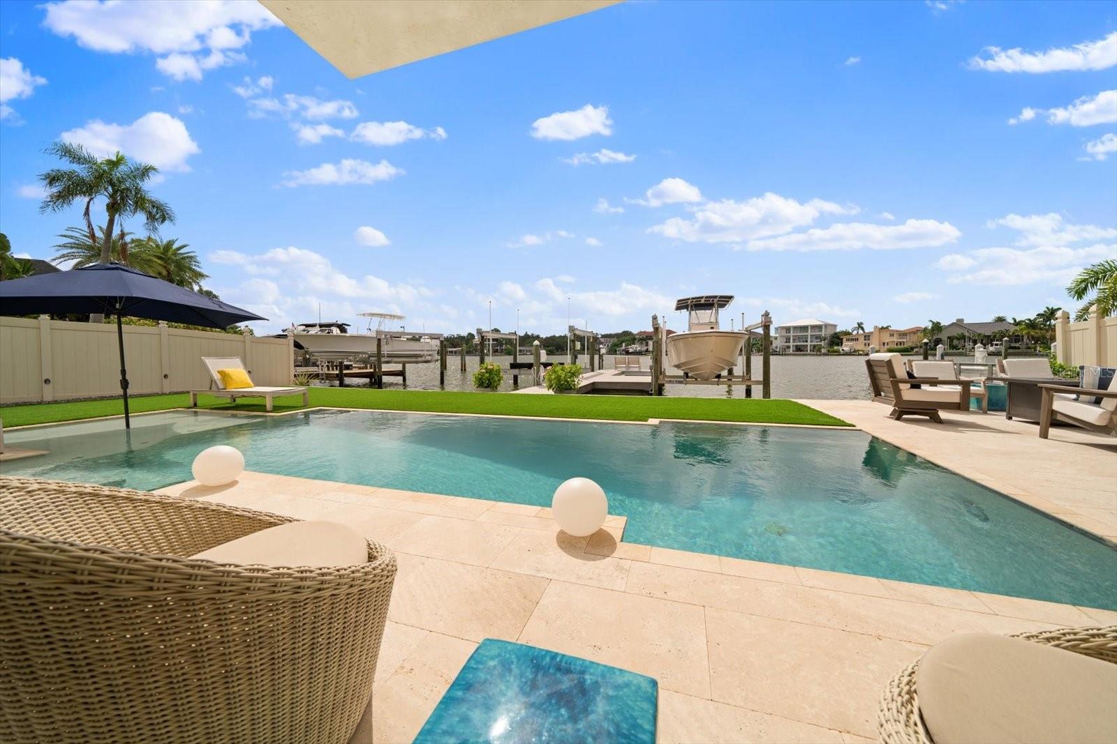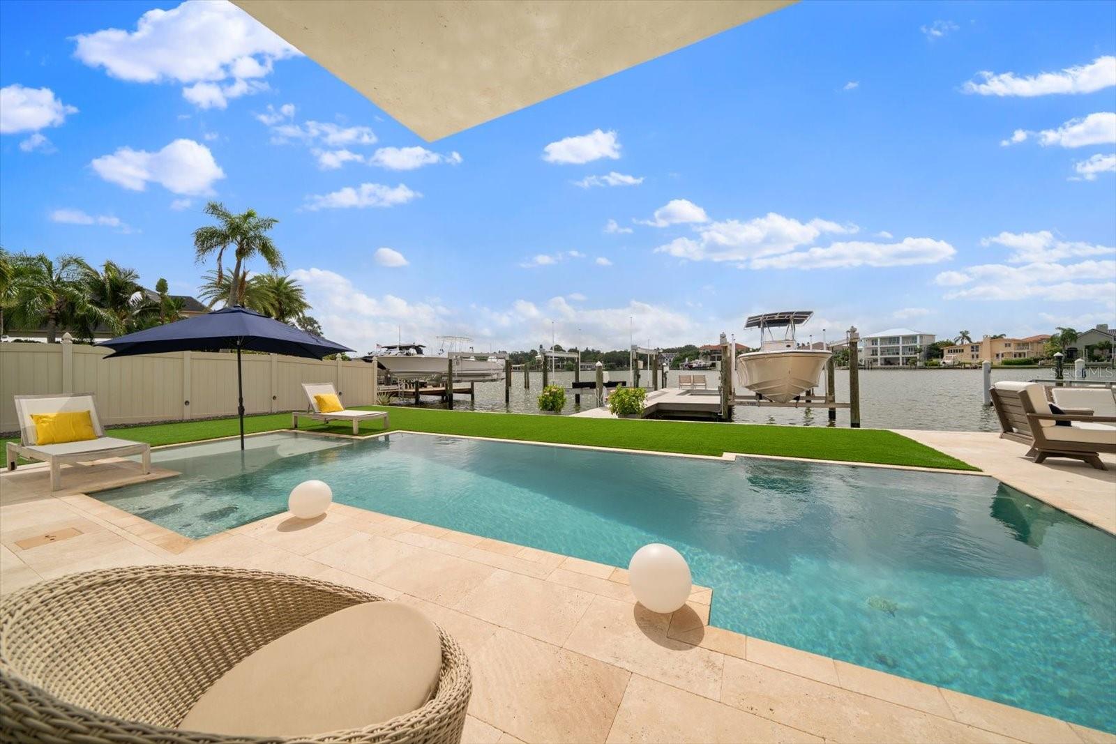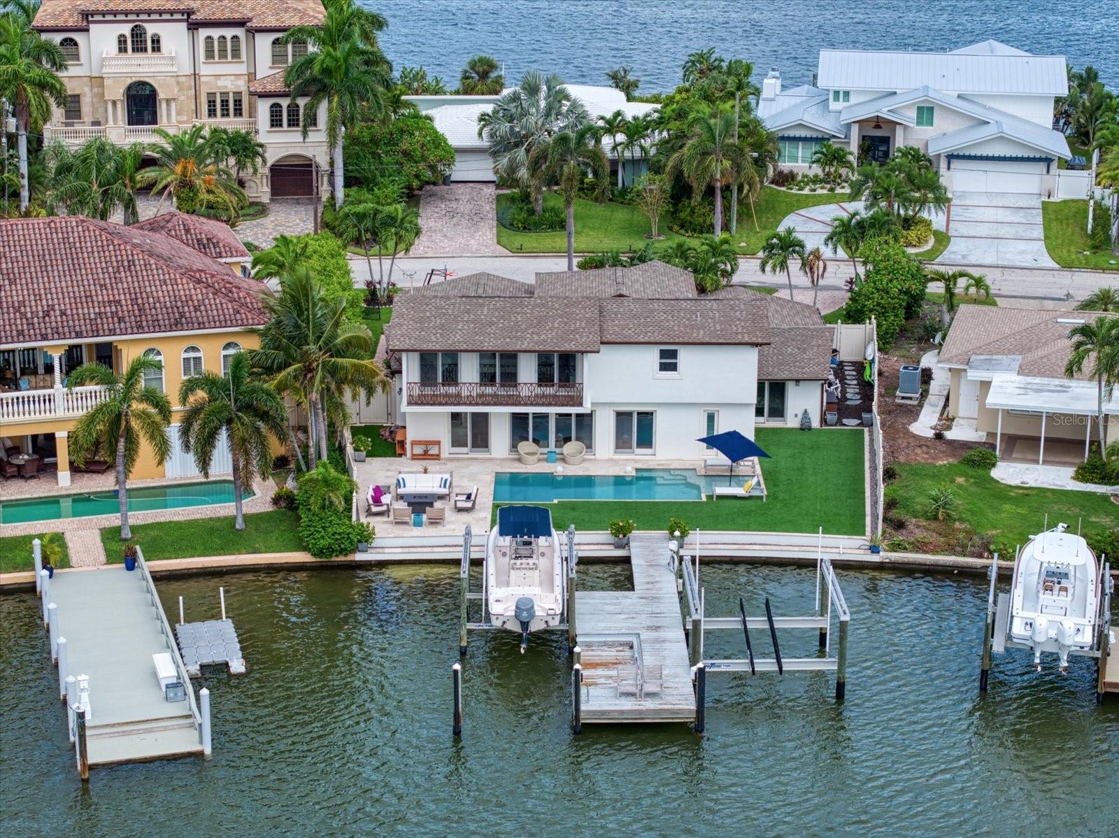 Esta deslumbrante casa costeira contemporânea à beira-mar está perfeitamente situada em águas profundas protegidas com acesso direto ao Golfo do México, oferecendo uma mistura de luxo e conforto no coração de Belleair. Abrangendo 3.158 pés quadrados, esta residência requintada possui 4 quartos e 3 banheiros, tornando-a um refúgio ideal para relaxamento e entretenimento. Ao entrar, você será recebido por uma cozinha personalizada projetada tanto para funcionalidade quanto para estilo. Possui armários de madeira branca, backsplash de vidro de designer, bancadas de quartzo e eletrodomésticos de aço inoxidável. A convidativa área do bar inclui uma máquina de gelo, enquanto uma despensa com geladeira e armários adicionais acrescenta conveniência. A espaçosa cozinha aberta e a área da sala familiar têm vista para a piscina cintilante e para a enseada tranquila, criando um cenário perfeito para reuniões. A casa oferece três quartos no andar principal, incluindo um com prateleiras embutidas personalizadas, cama embutida, teto alto e muita luz natural. A área de estar principal possui uma lavanderia interna, pisos de madeira reluzentes, portas personalizadas e uma charmosa parede com detalhes em shiplap. Além disso, há uma moderna piscina/banheiro de hóspedes e um banheiro no corredor neste nível. No andar de cima, o quarto principal privado é um retiro luxuoso com varanda própria que oferece vistas deslumbrantes do mar. A suíte inclui piso de cortiça, armários personalizados e banheiro principal com banheira vitoriana, chuveiro separado e pias duplas com bancada de vidro. A área externa foi projetada para o máximo relaxamento e entretenimento. Novos pavimentos e grama artificial cercam a piscina personalizada, que inclui uma proteção solar ideal para relaxar. A doca está equipada com um elevador de 24.000 libras e um elevador de 7.000 libras, perfeito para seus barcos, jet skis e pranchas de remo. Uma garagem anexa para 2 carros oferece armazenamento adicional com seus armários embutidos. Belleair é uma comunidade que aceita carrinhos de golfe, com fácil acesso a bares, restaurantes locais e dois campos de golfe privados. Os residentes também desfrutam do Centro Comunitário/Recreativo Dimmitt, aumentando o apelo desta propriedade excepcional.