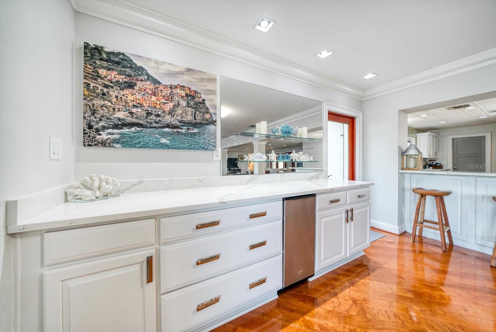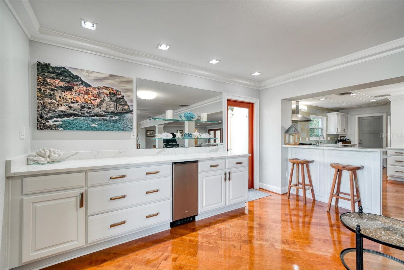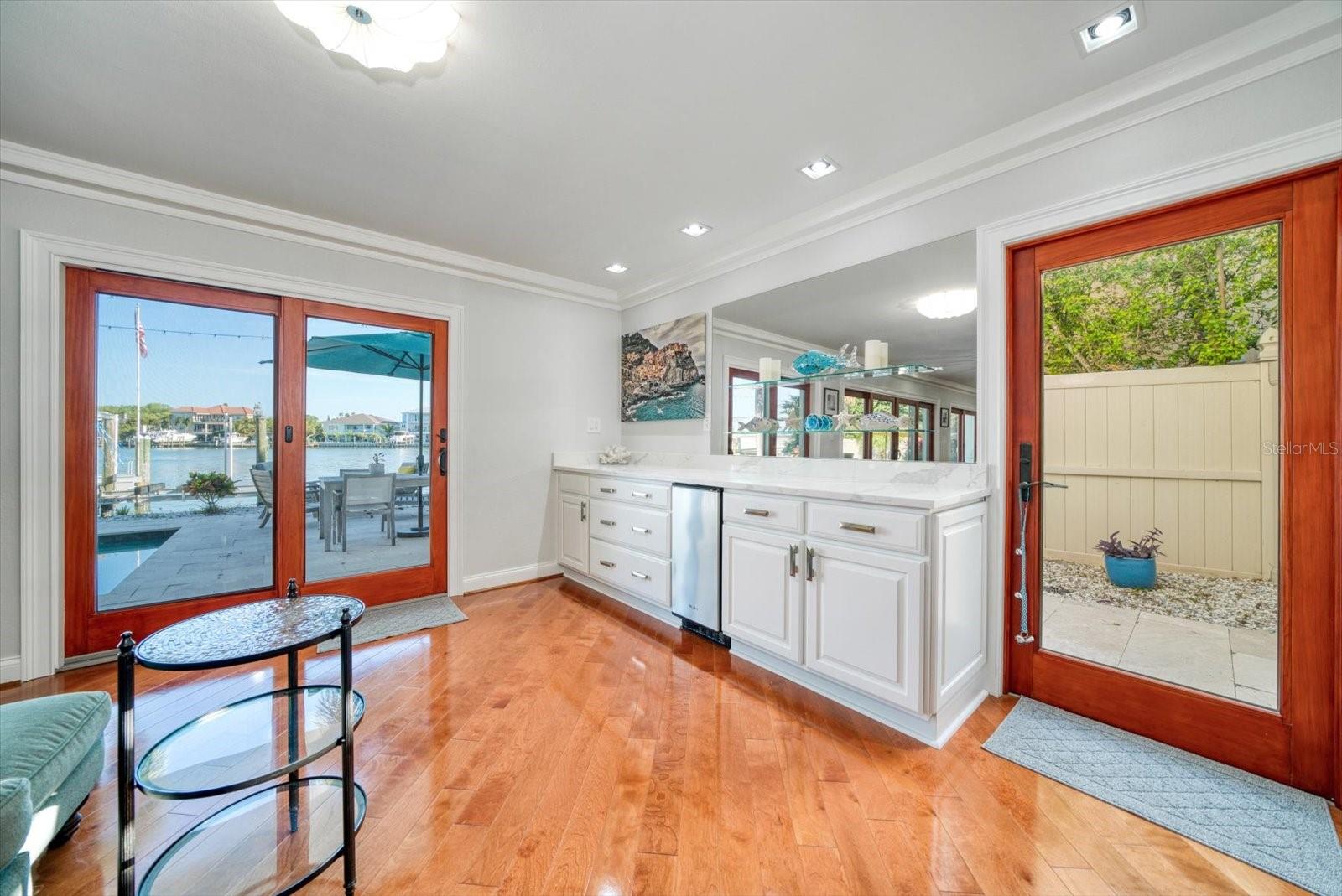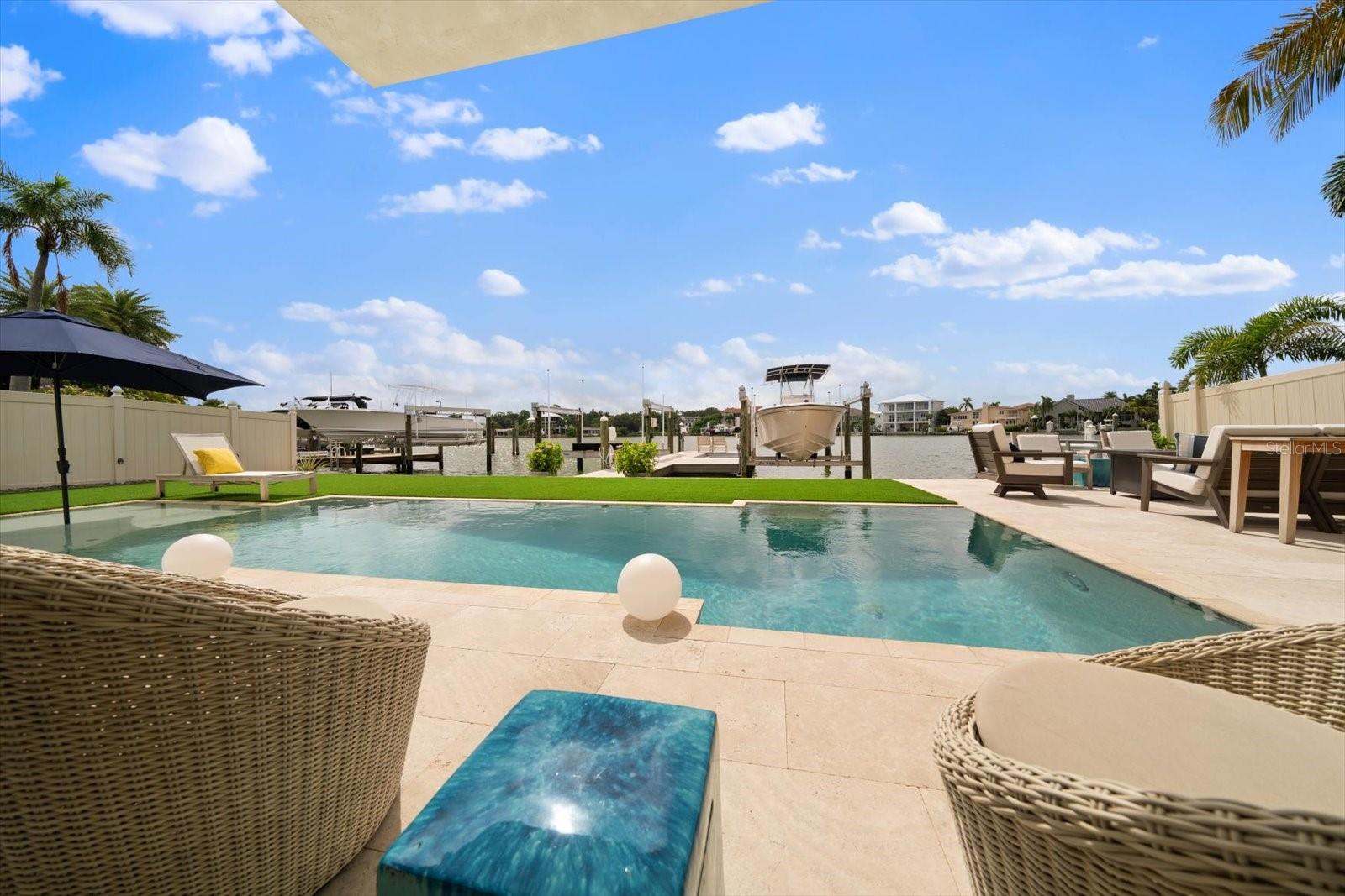Esta deslumbrante casa costeira contemporânea à beira-mar está perfeitamente situada em águas profundas protegidas com acesso direto ao Golfo do México, oferecendo uma mistura de luxo e conforto no coração de Belleair. Abrangendo 3.158 pés quadrados, esta residência requintada possui 4 quartos e 3 banheiros, tornando-a um refúgio ideal para relaxamento e entretenimento. Ao entrar, você será recebido por uma cozinha personalizada projetada tanto para funcionalidade quanto para estilo. Possui armários de madeira branca, backsplash de vidro de designer, bancadas de quartzo e eletrodomésticos de aço inoxidável. A convidativa área do bar inclui uma máquina de gelo, enquanto uma despensa com geladeira e armários adicionais acrescenta conveniência. A espaçosa cozinha aberta e a área da sala familiar têm vista para a piscina cintilante e para a enseada tranquila, criando um cenário perfeito para reuniões. A casa oferece três quartos no andar principal, incluindo um com prateleiras embutidas personalizadas, cama embutida, teto alto e muita luz natural. A área de estar principal possui uma lavanderia interna, pisos de madeira reluzentes, portas personalizadas e uma charmosa parede com detalhes em shiplap. Além disso, há uma moderna piscina/banheiro de hóspedes e um banheiro no corredor neste nível. No andar de cima, o quarto principal privado é um retiro luxuoso com varanda própria que oferece vistas deslumbrantes do mar. A suíte inclui piso de cortiça, armários personalizados e banheiro principal com banheira vitoriana, chuveiro separado e pias duplas com bancada de vidro. A área externa foi projetada para o máximo relaxamento e entretenimento. Novos pavimentos e grama artificial cercam a piscina personalizada, que inclui uma proteção solar ideal para relaxar. A doca está equipada com um elevador de 24.000 libras e um elevador de 7.000 libras, perfeito para seus barcos, jet skis e pranchas de remo. Uma garagem anexa para 2 carros oferece armazenamento adicional com seus armários embutidos. Belleair é uma comunidade que aceita carrinhos de golfe, com fácil acesso a bares, restaurantes locais e dois campos de golfe privados. Os residentes também desfrutam do Centro Comunitário/Recreativo Dimmitt, aumentando o apelo desta propriedade excepcional.