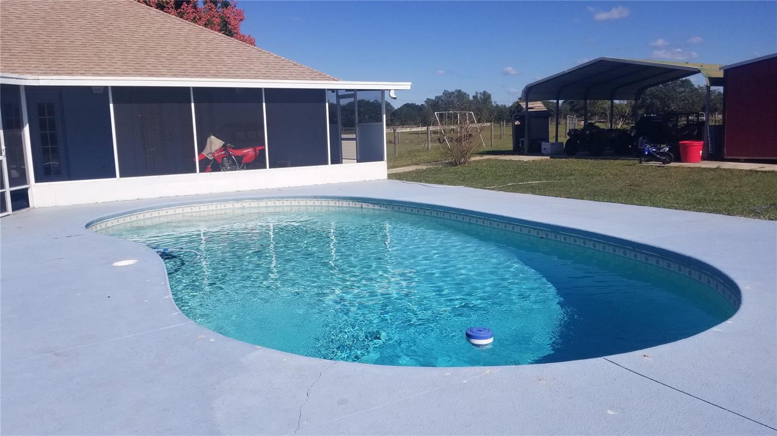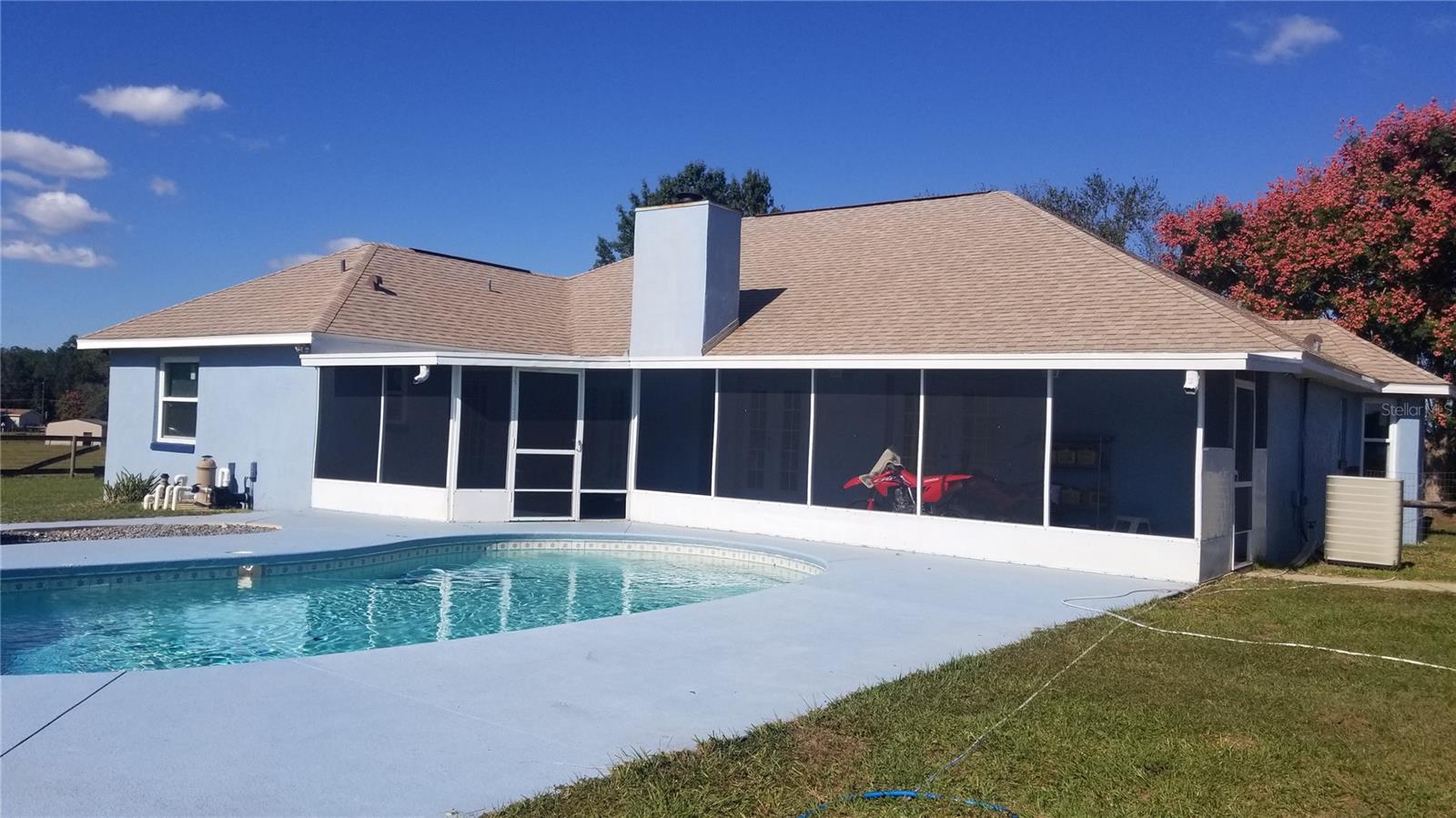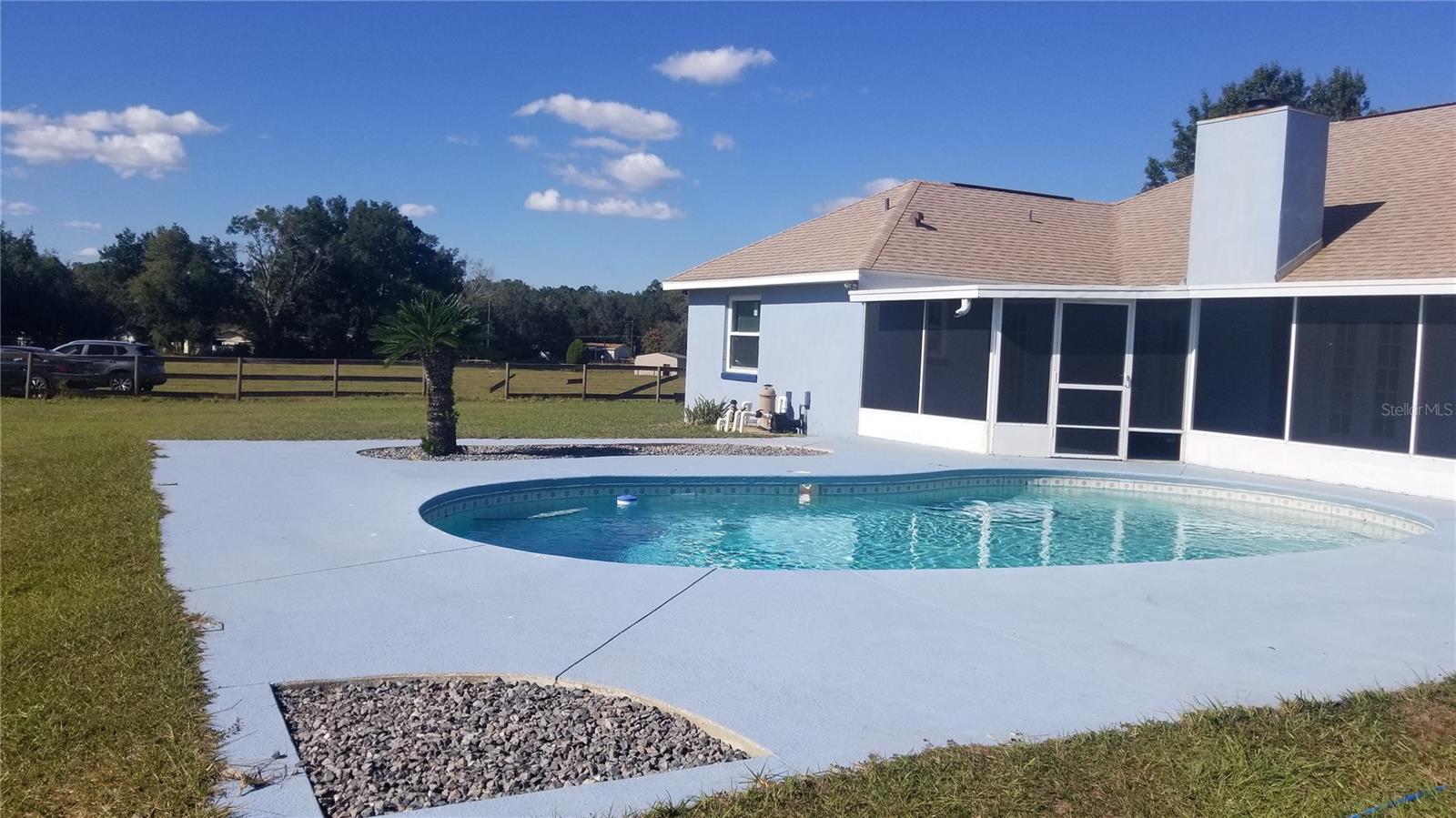 ESPAÇOSA CASA DE 4 QUARTOS, 3 BANHEIROS COM PISCINA EM 8,4 ACRES! Esta casa construída sob medida tem uma planta aberta, sala de jantar com janela saliente na cozinha, despensa, área de jantar, tetos altos, lareira de tijolos na sala grande, portas francesas para a varanda e área da piscina da suíte master e sala de estar, planta de quarto dividido . NOVO TELHADO 2020, NOVAS JANELAS e telas 2023, fossa séptica bombeada 10/2023, serviço de 200 A, conexão elétrica para RV de 30 A, 2 aquecedores de água, garagem dupla, celeiro/galpão de feno e entrada fechada. pasto cercado e cercado, entrada e saída adicionais na SE 116th St Rd, piscina em formato de rim tem serviço semanal de piscina. Este país GEM fica perto de Belleview, Ocala, restaurantes, lojas, médicos e hospital The Villages. Abra e feche o portão de entrada atrás de você ao entrar e sair da propriedade. Aproveite o pouco gado solto enquanto dirige até a casa. O quintal é cercado separadamente. Este é um lugar para sua família se espalhar, com espaço para criação de gado, cavalos e até algumas galinhas. Sente-se em suas cadeiras de balanço na varanda da frente e EXPERIMENTE a liberdade de SEM HOAs, SEM vizinhos a 10' de sua casa, SEM agitação do trânsito intenso. Esta propriedade é um lugar para criar raízes e chamar de lar!