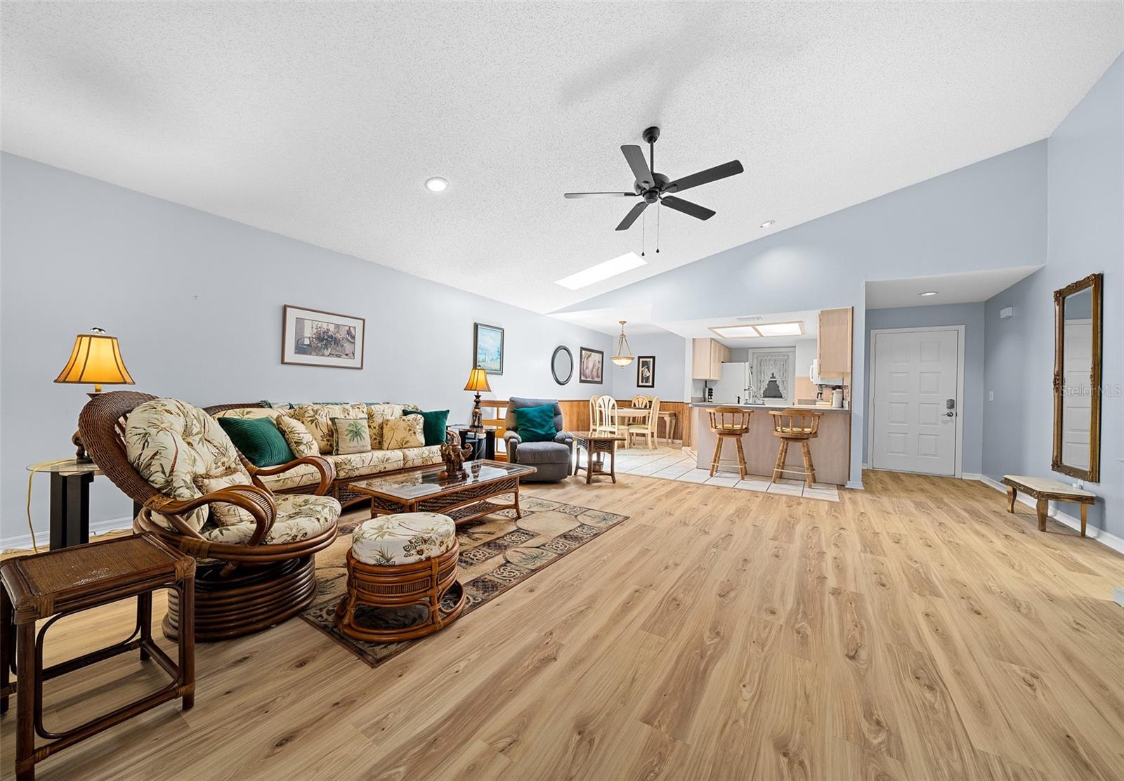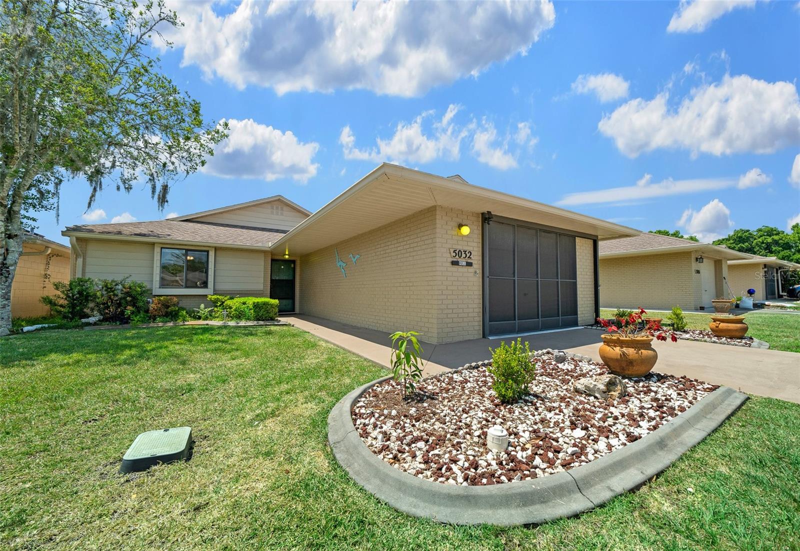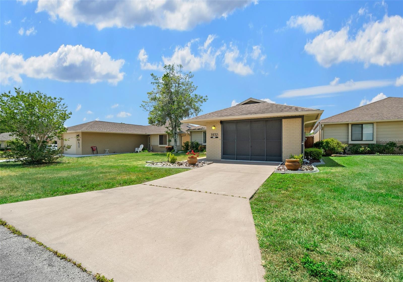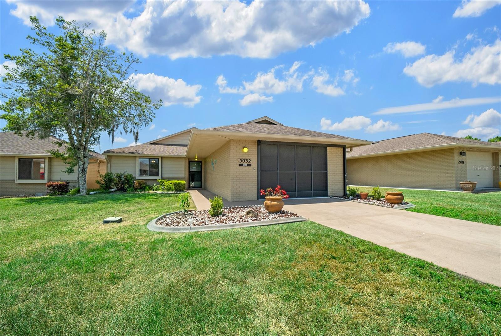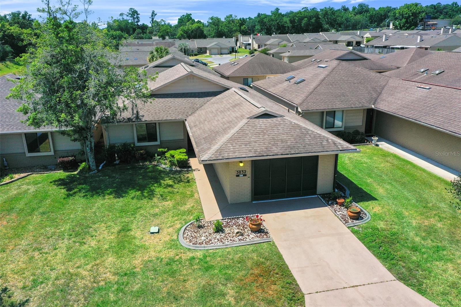 Venha ver esta casa com pátio independente de 2/2 bem cuidada com Generac Home Generator instalado para tornar a vida sempre confortável. Esta casa não tem tapetes ou degraus, com azulejos nas áreas de cozinha/banheiro, pranchas de vinil na sala grande, sala de jantar, quartos e áreas dos quartos na Flórida. Não há degraus que sejam perfeitos para facilitar a mobilidade da frente para a parte de trás da casa. A grande varanda dos fundos contém lindos azulejos de terracota. A ampla garagem para um carro possui biombos, arrumação e balcões para espaço de trabalho, além de um armário para ocultar a área de serviço. Há também uma geladeira extra de aço inoxidável incluída. O teto da grande sala é abobadado e inclui uma clarabóia para fornecer luz solar extra. O quarto principal tem closet e banheiro com clarabóia e banheira com recursos de spa. Esta vila fica no altamente desejado condomínio fechado com mais de 55 anos, Villas of Belleview, e tem uma piscina comunitária. Esta casa é imperdível se você está procurando um estilo de vida fácil e ensolarado na Flórida.
