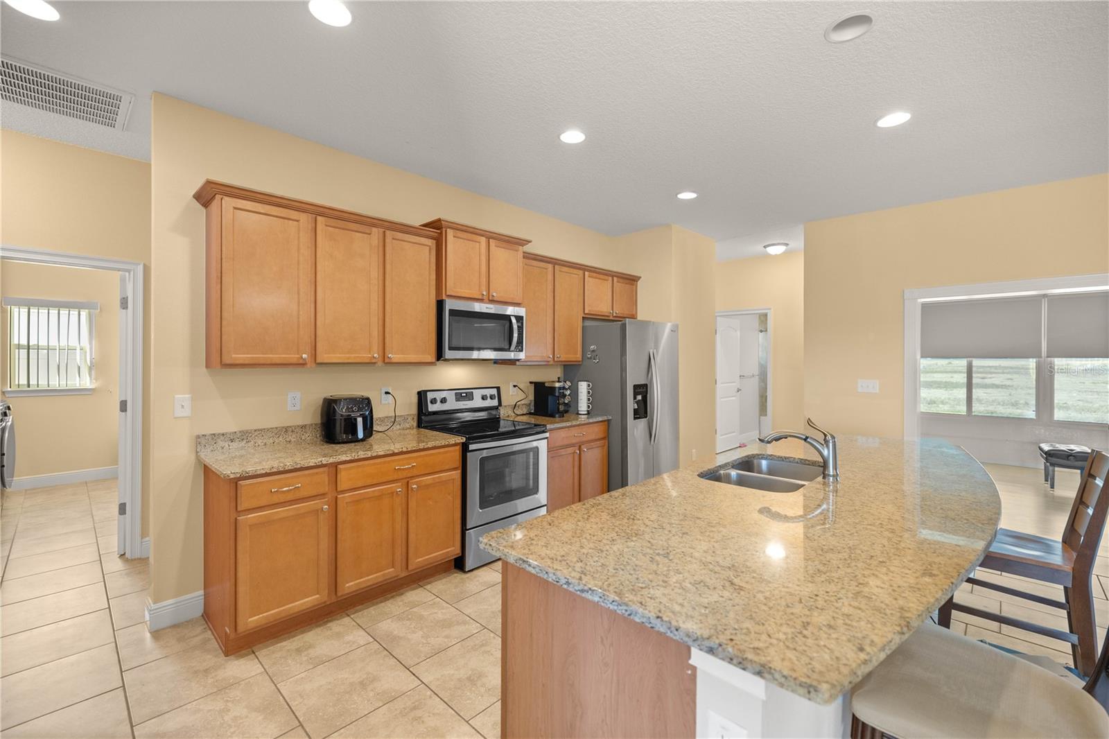 Bem-vindo à casa dos seus sonhos! Esta impressionante propriedade, construída em 2018, supera o fascínio da nova construção com suas características e atualizações impecáveis. Com mais de 2.400 pés quadrados de área útil, esta residência oferece uma combinação perfeita de elegância e funcionalidade. Ao entrar, você é recebido por uma convidativa planta aberta adornada com elegante piso de cerâmica que conecta perfeitamente a espaçosa sala de estar, a área de jantar e a cozinha gourmet. A cozinha é uma delícia para o chef, equipada com eletrodomésticos de aço inoxidável, bancadas em granito e uma conveniente cafeteria, ideal para receber convidados ou saborear sua bebida matinal. Um destaque desta casa é a marquise de grandes dimensões, banhada por luz natural que entra pelas janelas de parede a parede, criando um oásis sereno para desfrutar de vistas deslumbrantes enquanto toma seu café. A marquise possui persianas para maior privacidade e piso laminado para fácil manutenção. O quarto principal é um retiro tranquilo, oferecendo carpete macio, portas de correr que levam ao pátio aberto, um amplo closet e um luxuoso banheiro privativo completo com pias duplas em Corian, uma relaxante banheira de jardim e um closet revestido em azulejos. banho. As características adicionais incluem quartos de hóspedes confortavelmente acarpetados, um banheiro de hóspedes com combinação de chuveiro/banheira de azulejos e penteadeira Corian, e uma lavanderia conveniente com bancadas de granito, pia e amplo espaço de armazenamento. Os entusiastas de automóveis apreciarão a garagem com piso de epóxi, enquanto adições práticas, como ventiladores solares no sótão, calhas e um quintal parcialmente cercado, aumentam o apelo da casa. Convenientemente localizada em frente a um centro recreativo comunitário, esta propriedade é perfeita para famílias e crianças, oferecendo inúmeras oportunidades de lazer e entretenimento. Não perca a oportunidade de tornar sua casa excepcional. Agende hoje mesmo seu tour privado.