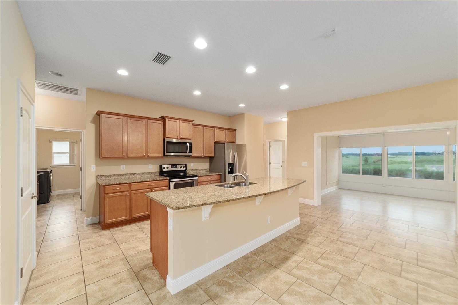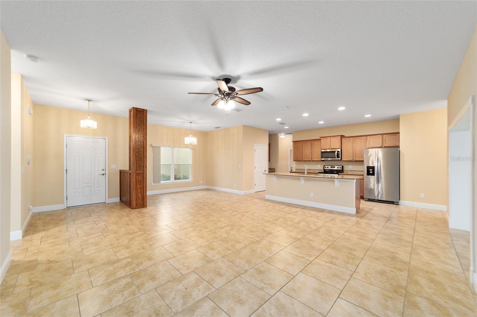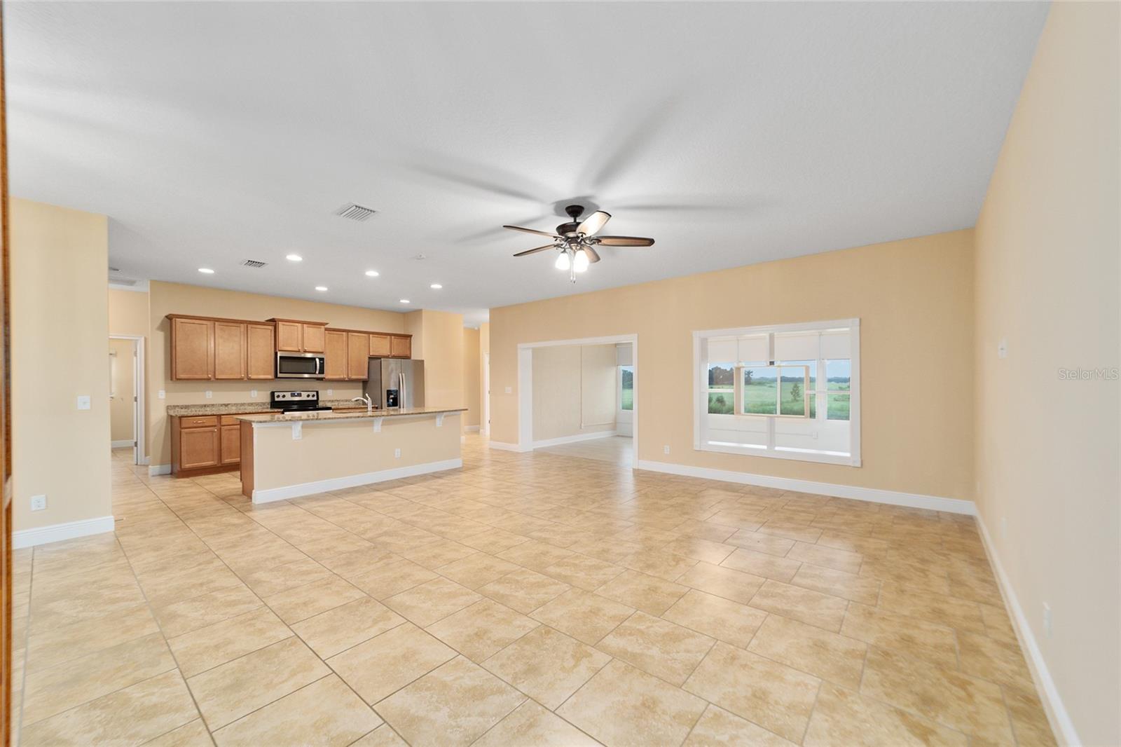 Não perca esta bela casa em planta dividida com 4 quartos e 2 banheiros que oferece ocupação imediata e todo o espaço extra que você está procurando. Esta casa meticulosamente projetada apresenta um espaço de estar versátil e em plano aberto, com tetos altos e piso de cerâmica atualizado na sala de estar, sala de jantar e cozinha conectadas, tornando a vida cotidiana e o entretenimento muito fáceis. A grande cozinha possui eletrodomésticos de aço inoxidável, iluminação embutida, muitos armários e balcão, uma cafeteria, uma despensa para necessidades extras de armazenamento e assentos na altura do bar para refeições casuais com vista para a espaçosa sala de estar. Uma marquise separada sob calor e ar oferece excelente espaço extra flexível para relaxar com piso laminado e janelas de parede a parede com proteção solar, oferecendo vistas tranquilas da natureza. A espaçosa suíte do proprietário oferece vistas excelentes e controles deslizantes que oferecem acesso direto ao exterior, um amplo closet e um banheiro privativo com pias duplas com tampo de Corian, um box amplo revestido de azulejos e uma banheira de imersão separada. Três quartos de bom tamanho, uma lavanderia interna conveniente com pia, piso de epóxi na garagem para 2 carros e ventiladores solares no sótão com baixo consumo de energia são apenas mais alguns dos excelentes recursos para amar nesta casa pronta para morar. . Esta casa também oferece uma excelente localização com acesso conveniente a lojas, restaurantes, parques públicos, instalações médicas e a uma curta distância de carro de The Villages. Os entusiastas do ar livre também poderão desfrutar de uma variedade de comodidades e atrações de fácil acesso, como Santos Trails, um destino popular para caminhadas e ciclismo, e o Campo de Golfe Baseline, a pouco mais de 1,6 km de distância.