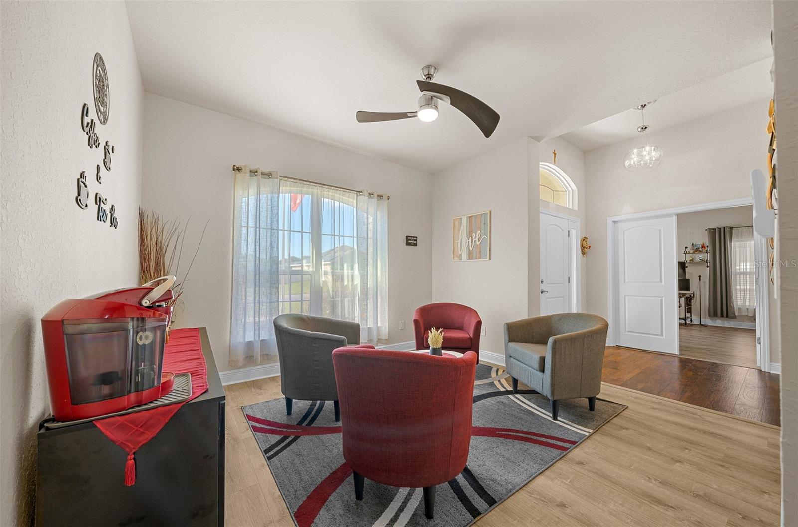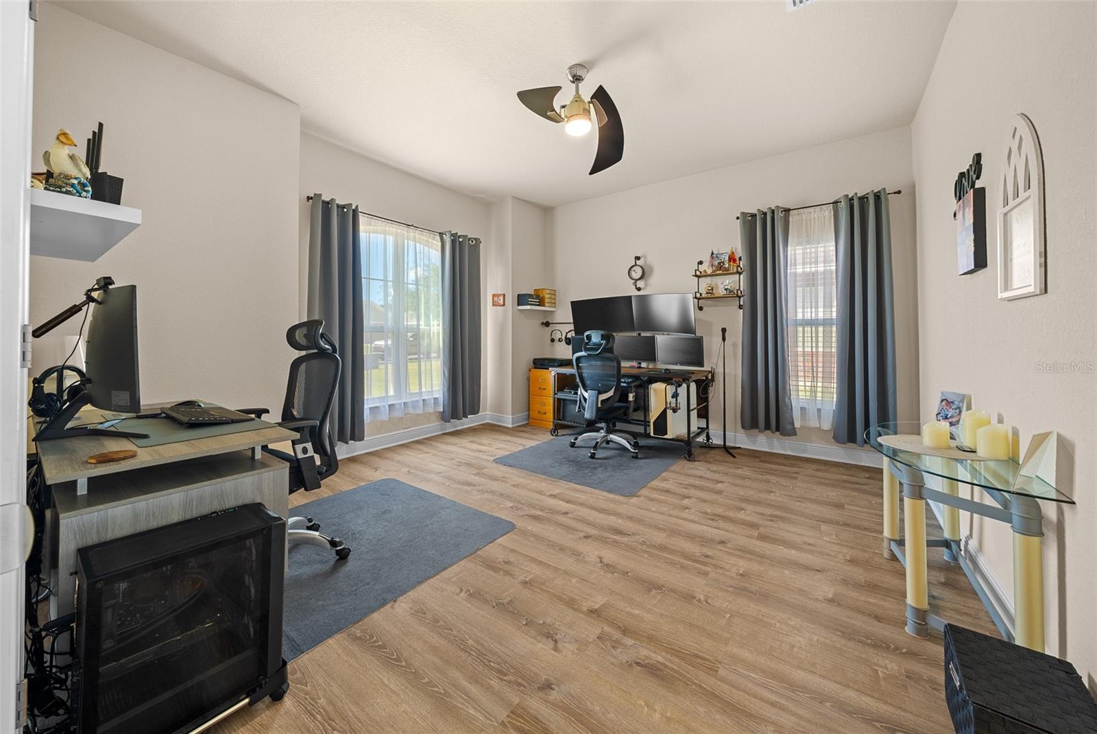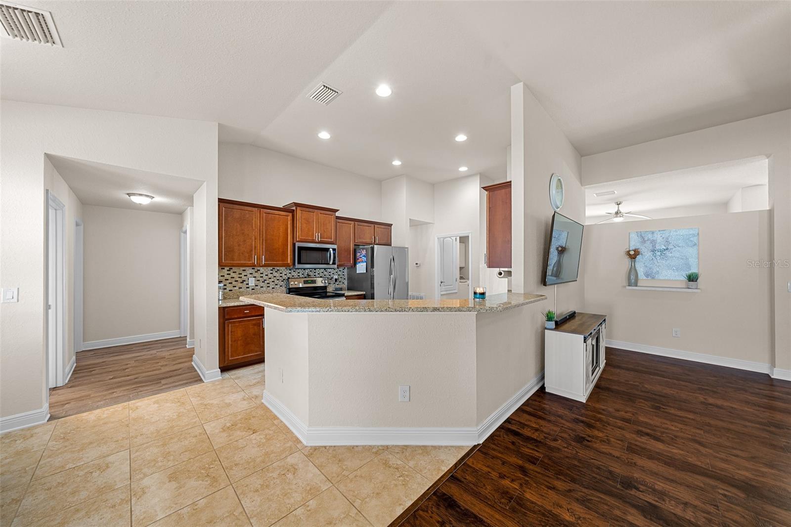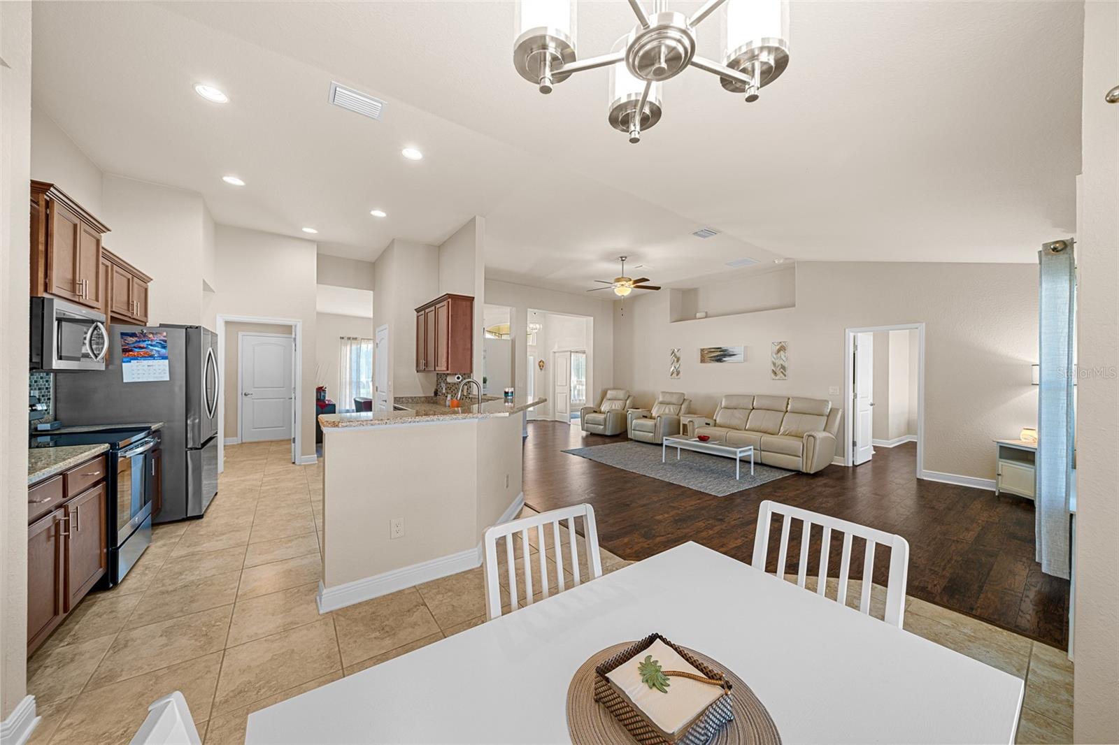 Esta deslumbrante casa construída por Adams em 2017, na muito procurada comunidade de Cobblestone North, oferece uma combinação perfeita de estilo, conforto e conveniência. Com quatro quartos, dois banheiros, um versátil espaço de escritório/escritório e uma convidativa copa, esta casa foi projetada para atender a todas as suas necessidades. A espaçosa área de estar possui tetos abobadados que criam uma atmosfera aberta e arejada, reforçada pelo luxuoso piso de pranchas de vinil. A cozinha e os banheiros foram atualizados com azulejos elegantes, enquanto o piso recém-atualizado no escritório, na sala de jantar e nos três quartos adiciona um toque fresco. Você vai adorar as atualizações adicionais, incluindo novas venezianas, uma nova porta contra tempestades e novo paisagismo na frente. A varanda traseira fechada e os refletores LED no quintal oferecem ótimos espaços para relaxamento e entretenimento noturno. O quintal totalmente cercado e pronto para piscina também possui um galpão de armazenamento, proporcionando amplo espaço para projetos ao ar livre. Atualizações práticas, como um novo armário na lavanderia, rodapés recém-pintados, entrada, piso da varanda e porta da frente tornam esta casa pronta para morar. Luzes LED com eficiência energética completam os toques modernos. Localizado entre Ocala e The Villages, este bairro familiar fica a poucos passos da Belleview High School, da Belleview Middle School e da Santos Elementary School. Os entusiastas do ar livre vão adorar estar a poucos minutos do início da trilha de Santos, que oferece uma trilha pavimentada de 25 quilômetros, trilhas para caminhadas e algumas das melhores trilhas de mountain bike da Flórida. Esta casa é a combinação perfeita de vida moderna e localização privilegiada – não perca a chance de torná-la sua!