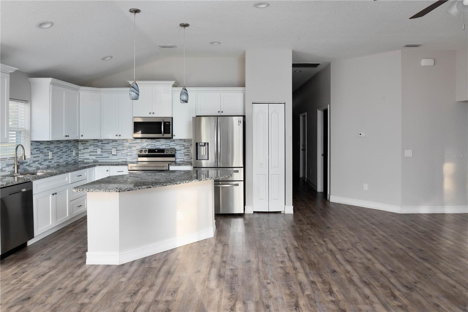 Entre no conforto moderno com esta casa lindamente projetada de 3 quartos e 2 banheiros em Belleview! Construído em 2021, esta casa é fresca, convidativa e pronta para a mudança-oferecendo a mistura perfeita de estilo, espaço e conveniência. A suíte primária é um retiro espaçoso que se tornará seu oásis pessoal, completo com um enorme banho de banheiro privativo, com um chuveiro de azulejos, pias duplas, armário de água privado e uma enorme caminhada dupla no armário-porque o armazenamento nunca deve ser uma reflexão tardia. Os tetos da catedral e uma paleta neutra e suave deram o tom para uma atmosfera brilhante e arejada. O layout de conceito aberto conecta as áreas de estar, refeições e cozinhas sem esforço. O quarto da frente/escritório é um espaço encantador com uma janela em arco - apenas esperando um assento na janela, um recanto de leitura ou seu toque aconchegante favorito. Sentado em .29 acres, o quintal totalmente cercado é uma descoberta rara, oferecendo espaço e privacidade para criar sua fuga ao ar livre dos seus sonhos-seja uma piscina futura, jardim ou um lugar para amigos de quatro patas passearem. Localizado em Belleview, uma área promissora, esta casa fica a poucos minutos das aldeias, compras, refeições e conveniências diárias. Ligue hoje para agendar sua turnê privada!