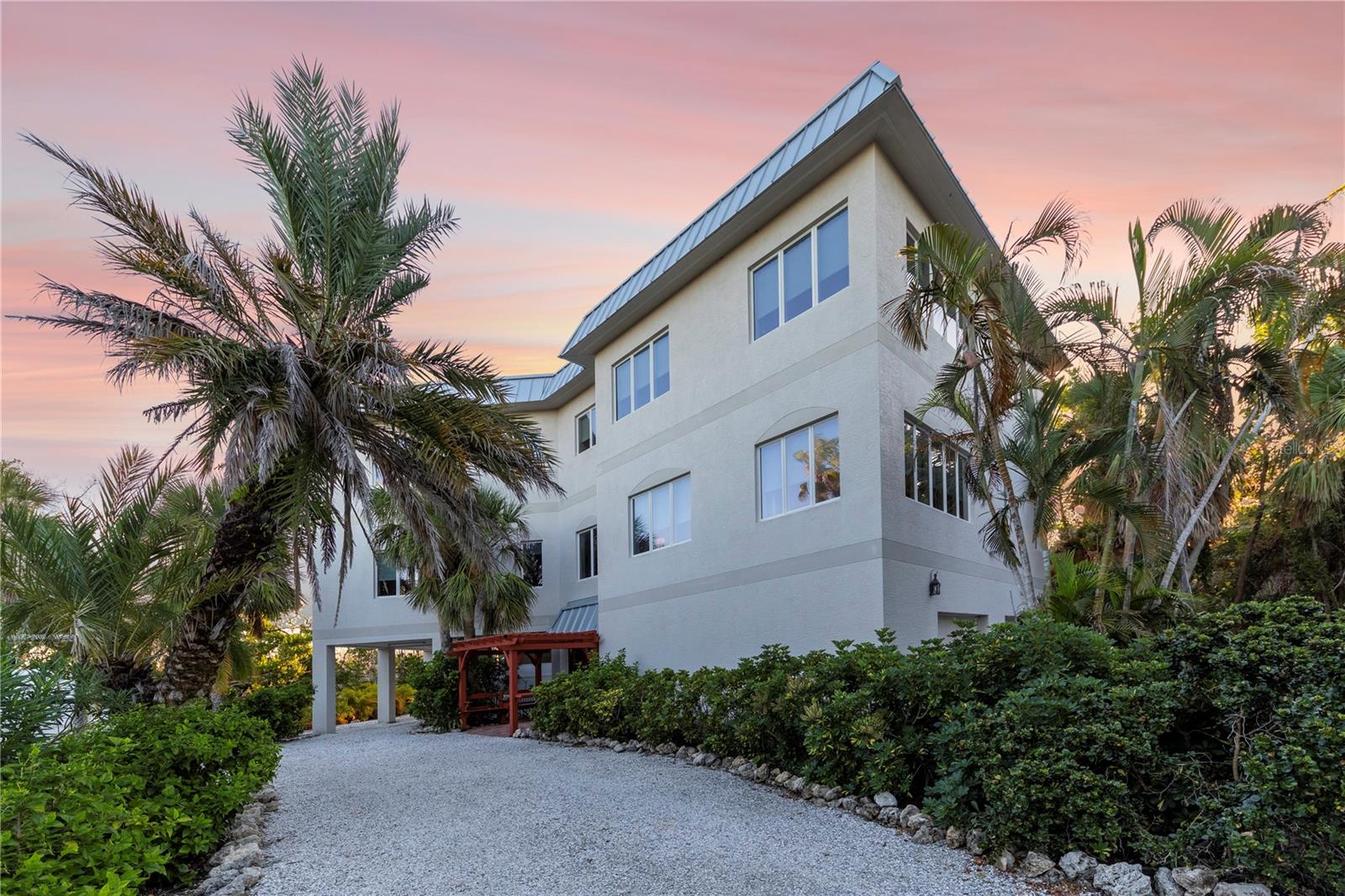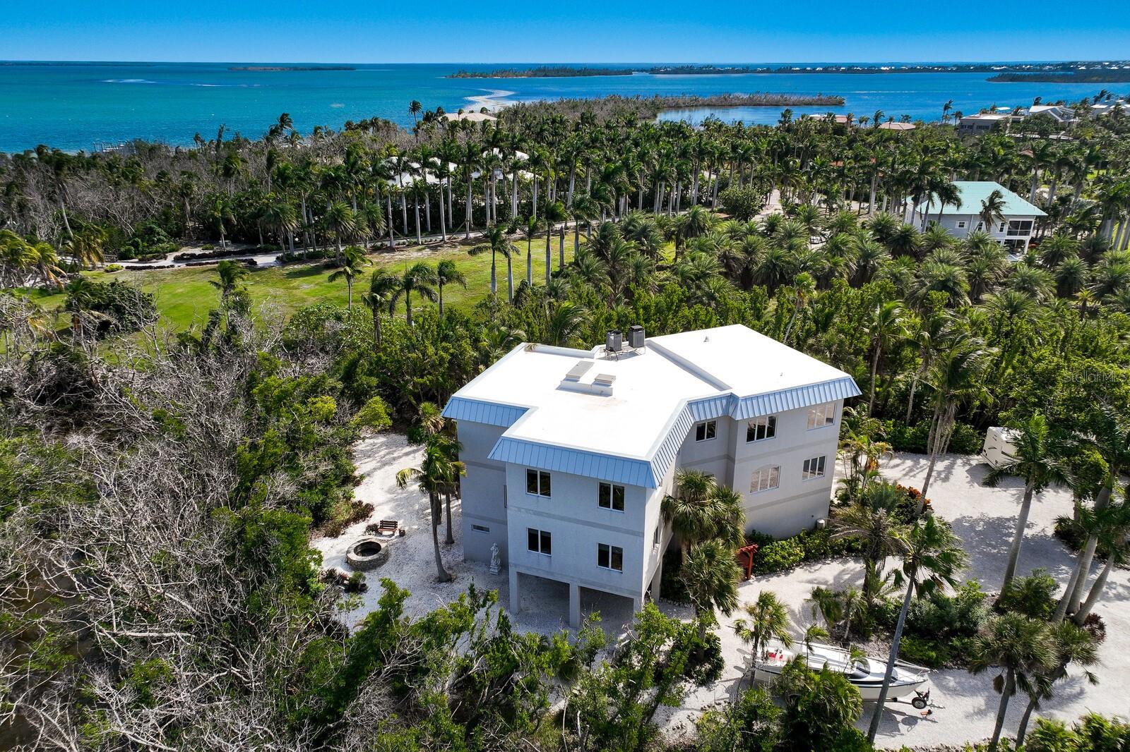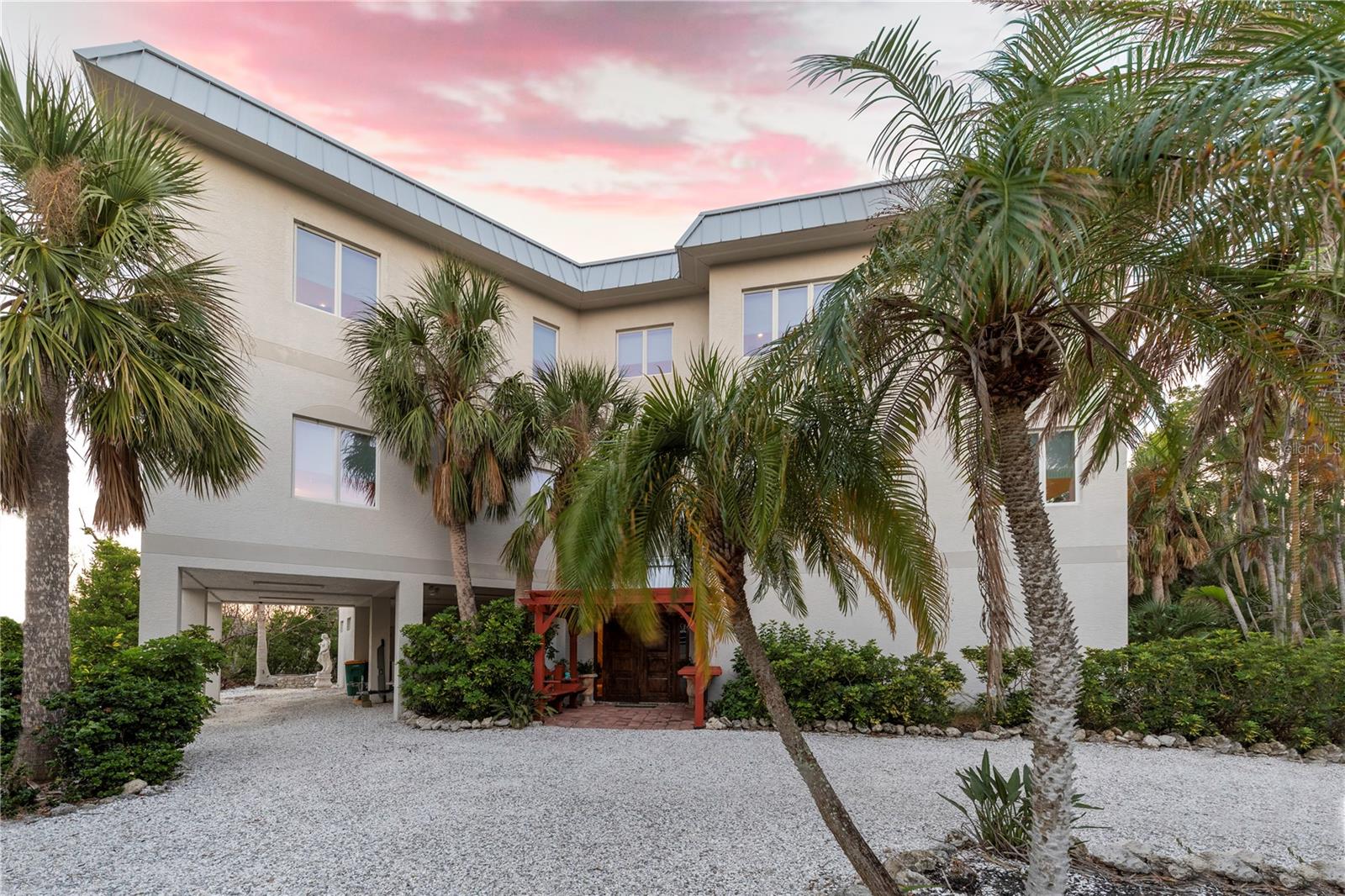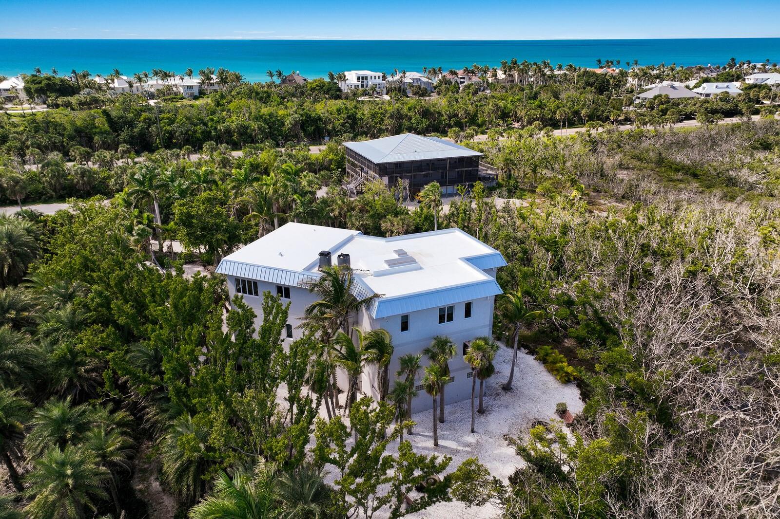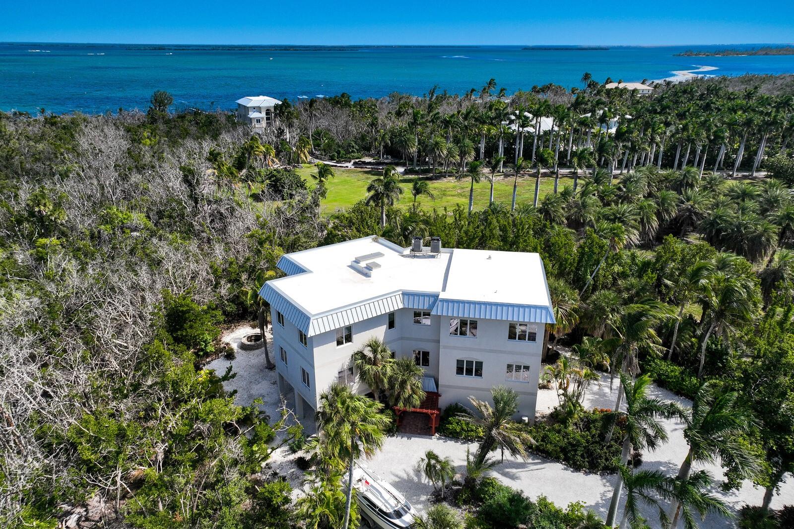 Vistas do topo do mundo a partir do telhado desta casa de concreto solidamente construída em 2003 em mais de 1 ½ acres na fronteira com 37 acres de terras de conservação da Ilha Gasparilla. Com vistas do porto e do nascer do sol a leste e do pôr do sol espetacular a oeste, esta casa em planta aberta oferece exatamente o que você deseja para viver na ilha e fica a apenas uma curta viagem de carrinho de golfe ou a pé até a vila e a praia. A tração dianteira curva é uma introdução acolhedora a esta casa de 5.726 pés quadrados (sob o ar). Imagine-se passando por um lindo pátio murado com uma piscina deslumbrante antes de entrar no espaçoso hall de entrada através de um par de portas de madeira maciça esculpidas à mão. O elevador percorre todos os três andares e começa no nível do solo. Há uma garagem grande para dois carros com muito espaço para um carrinho de golfe, uma grande garagem, uma sala de trabalho e uma sala de jogos. Os tetos do segundo e terceiro andares têm quase três metros de altura e janelas resistentes ao vento oferecem vistas tranquilas em todas as direções. Você encontrará pisos de cerâmica fáceis de manter e muito espaço de armazenamento em toda a casa. Todos os quartos são de tamanho generoso. Há espaço para grandes reuniões familiares no terceiro nível deste projeto de planta aberta. Duas áreas de estar diferentes, uma área de bar, uma marquise voltada para o leste para o café da manhã e uma sala de jantar oferecem espaço para todos. A espaçosa cozinha possui uma grande ilha para refeições e preparação de alimentos, armários personalizados com gavetas soft-close, inúmeras gavetas e recursos de organização personalizados, sem falta de armazenamento na área de despensa separada. Neste nível há também um lavabo e um considerável 4º quarto com banheiro privativo que pode funcionar como quarto principal para uma vida versátil em um nível. A suíte principal fica em uma ala própria no segundo andar e possui um escritório, sala de estar ensolarada com lindas vistas para as copas das árvores, um banheiro substancial com pias separadas, banheira de hidromassagem, box amplo e dois closets organizados. Os quartos 2 e 3 compartilham um banheiro Jack e Jill decorado de forma neutra com duas pias separadas. Os atuais proprietários são apenas os segundos proprietários desta preciosa casa; o primeiro proprietário foi um construtor que construiu a casa para sua própria família. Você pode sentir a construção sólida ao visitar a casa. Aproveite a solidão tranquila e a localização privada com smores junto à lareira ou vá jantar no Village ou simplesmente aprecie aquelas magníficas vistas de 360 graus de manhã ou à noite a partir do seu telhado; que maravilhoso ter essas opções em 4180 Loomis!