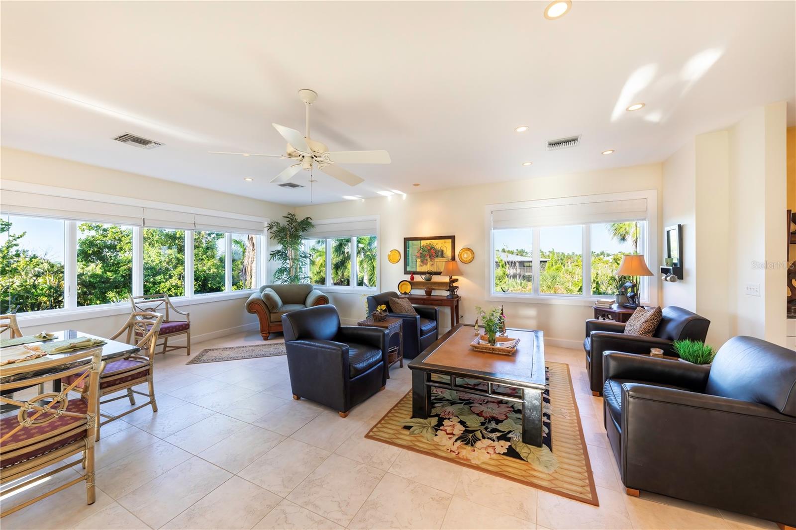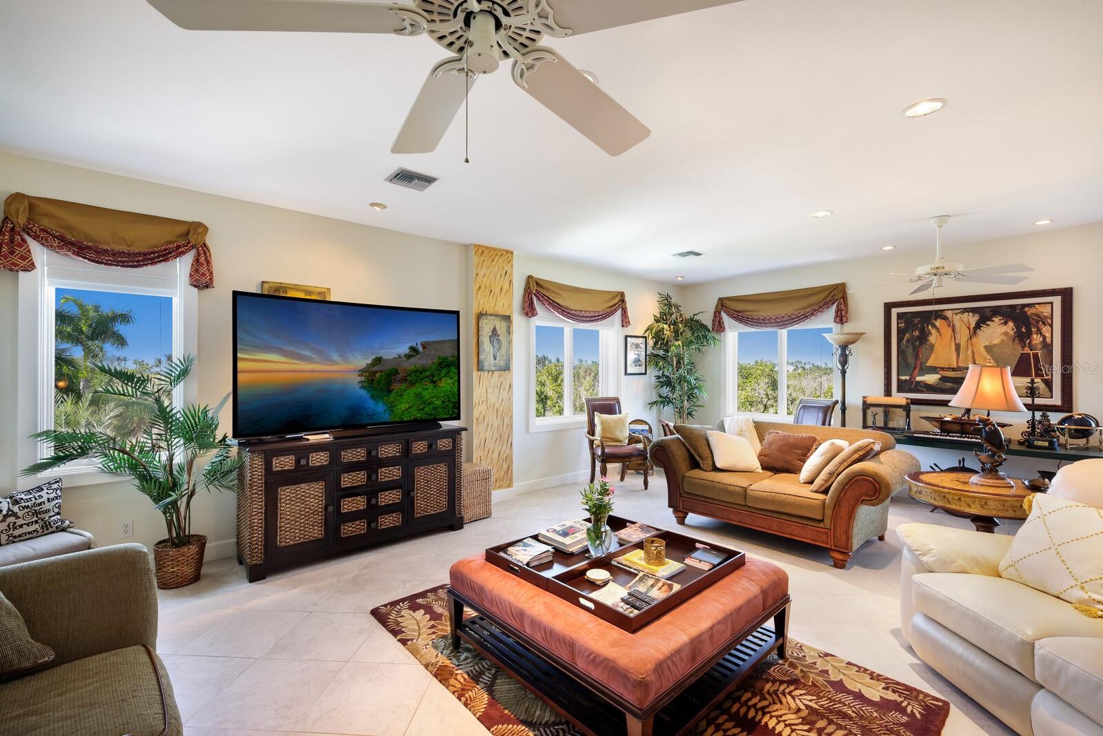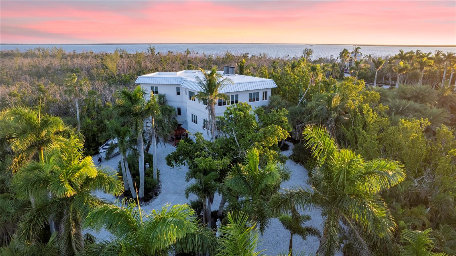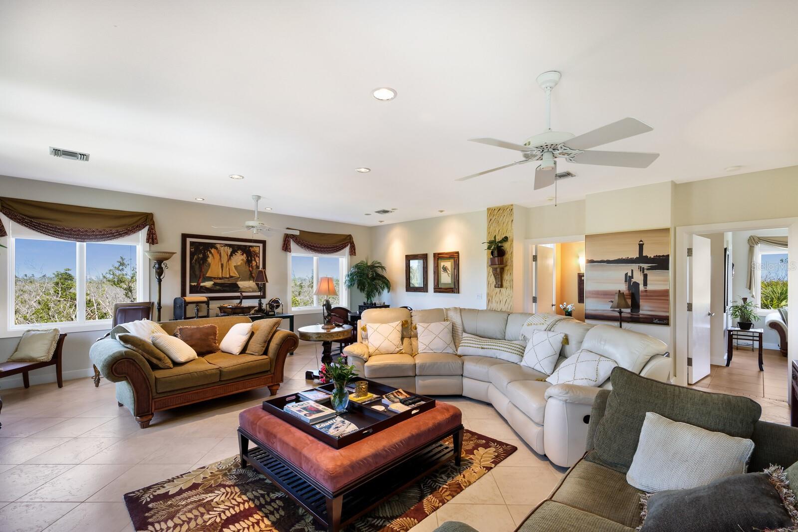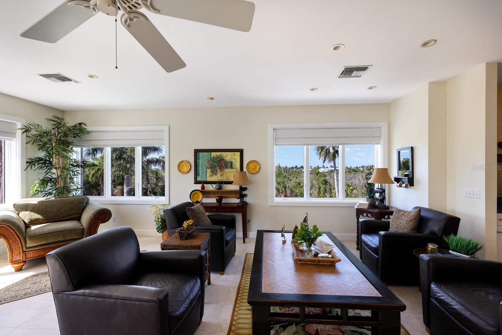 Vistas do topo do mundo a partir do telhado desta casa de concreto solidamente construída em 2003 em mais de 1 ½ acres na fronteira com 37 acres de terras de conservação da Ilha Gasparilla. Com vistas do porto e do nascer do sol a leste e do pôr do sol espetacular a oeste, esta casa em planta aberta oferece exatamente o que você deseja para viver na ilha e fica a apenas uma curta viagem de carrinho de golfe ou a pé até a vila e a praia. A tração dianteira curva é uma introdução acolhedora a esta casa de 5.726 pés quadrados (sob o ar). Imagine-se passando por um lindo pátio murado com uma piscina deslumbrante antes de entrar no espaçoso hall de entrada através de um par de portas de madeira maciça esculpidas à mão. O elevador percorre todos os três andares e começa no nível do solo. Há uma garagem grande para dois carros com muito espaço para um carrinho de golfe, uma grande garagem, uma sala de trabalho e uma sala de jogos. Os tetos do segundo e terceiro andares têm quase três metros de altura e janelas resistentes ao vento oferecem vistas tranquilas em todas as direções. Você encontrará pisos de cerâmica fáceis de manter e muito espaço de armazenamento em toda a casa. Todos os quartos são de tamanho generoso. Há espaço para grandes reuniões familiares no terceiro nível deste projeto de planta aberta. Duas áreas de estar diferentes, uma área de bar, uma marquise voltada para o leste para o café da manhã e uma sala de jantar oferecem espaço para todos. A espaçosa cozinha possui uma grande ilha para refeições e preparação de alimentos, armários personalizados com gavetas soft-close, inúmeras gavetas e recursos de organização personalizados, sem falta de armazenamento na área de despensa separada. Neste nível há também um lavabo e um considerável 4º quarto com banheiro privativo que pode funcionar como quarto principal para uma vida versátil em um nível. A suíte principal fica em uma ala própria no segundo andar e possui um escritório, sala de estar ensolarada com lindas vistas para as copas das árvores, um banheiro substancial com pias separadas, banheira de hidromassagem, box amplo e dois closets organizados. Os quartos 2 e 3 compartilham um banheiro Jack e Jill decorado de forma neutra com duas pias separadas. Os atuais proprietários são apenas os segundos proprietários desta preciosa casa; o primeiro proprietário foi um construtor que construiu a casa para sua própria família. Você pode sentir a construção sólida ao visitar a casa. Aproveite a solidão tranquila e a localização privada com smores junto à lareira ou vá jantar no Village ou simplesmente aprecie aquelas magníficas vistas de 360 graus de manhã ou à noite a partir do seu telhado; que maravilhoso ter essas opções em 4180 Loomis!