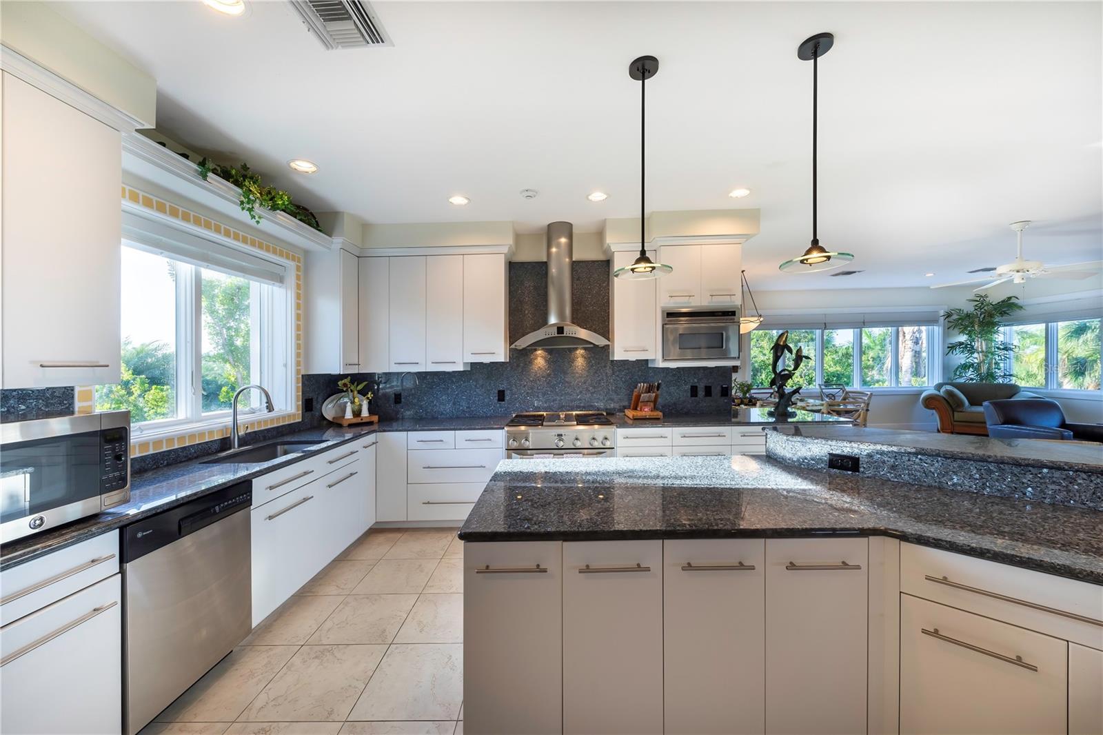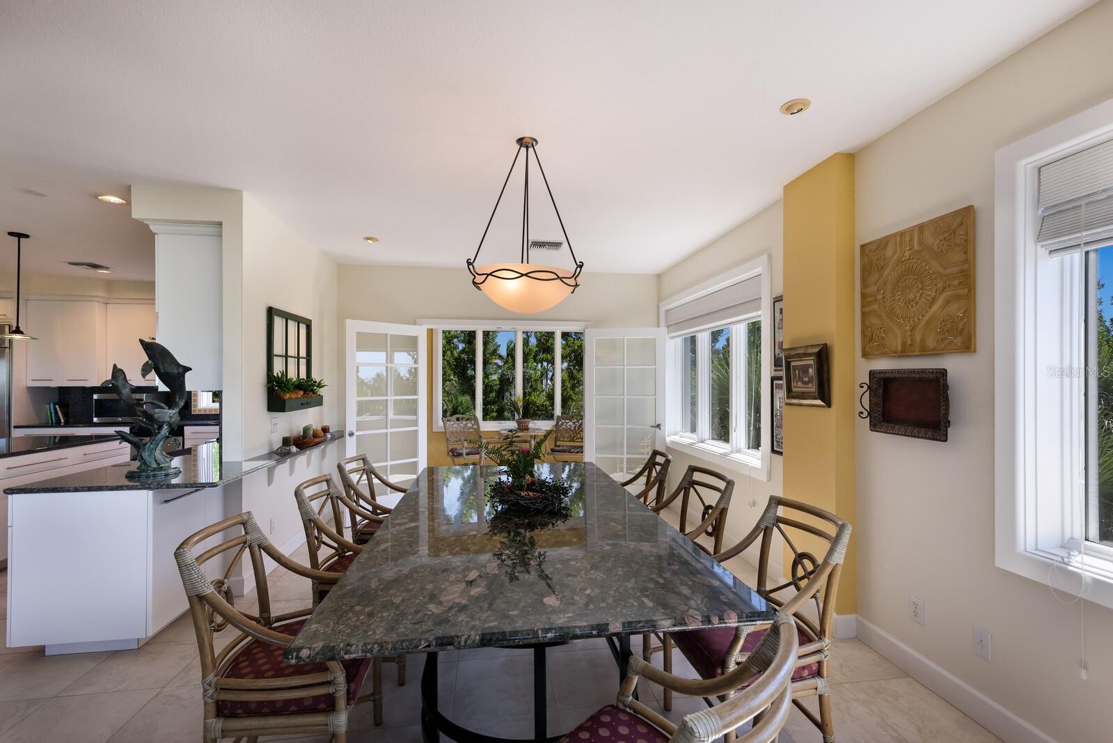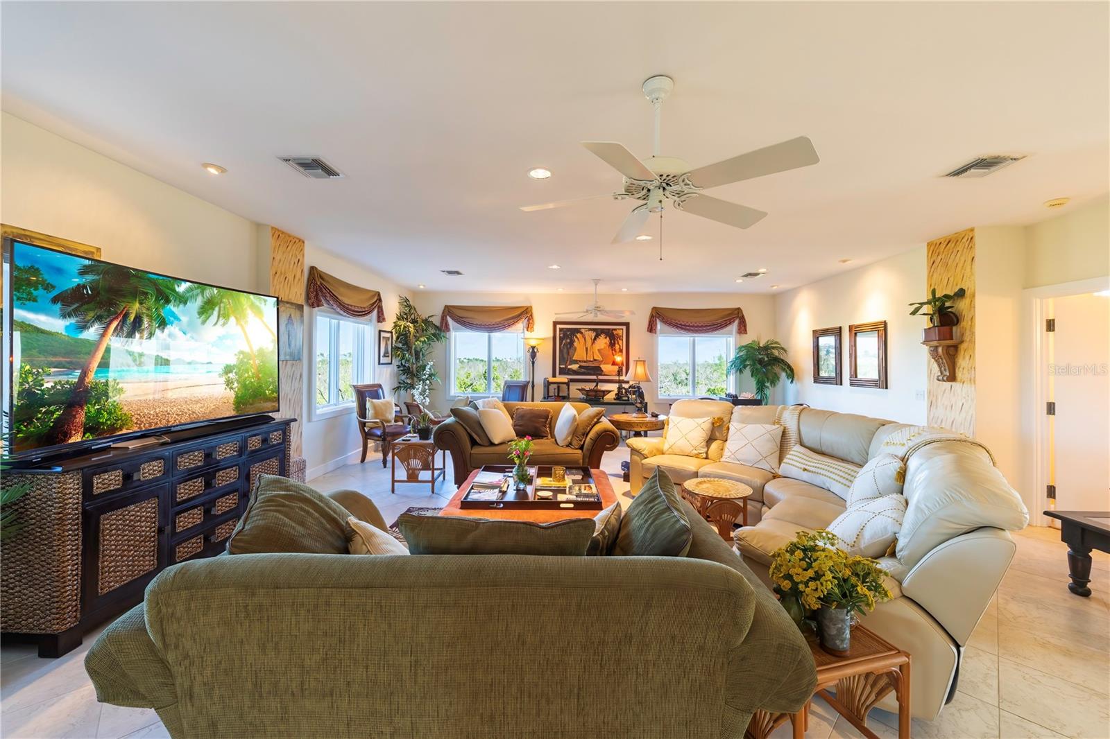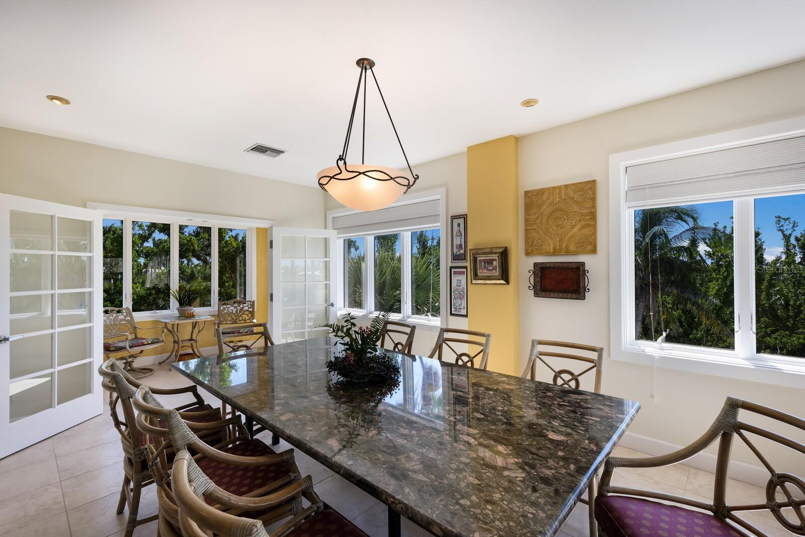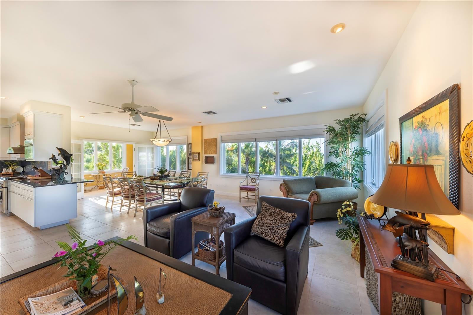 Vistas do topo do mundo a partir do telhado desta casa de concreto solidamente construída em 2003 em mais de 1 ½ acres na fronteira com 37 acres de terras de conservação da Ilha Gasparilla. Com vistas do porto e do nascer do sol a leste e do pôr do sol espetacular a oeste, esta casa em planta aberta oferece exatamente o que você deseja para viver na ilha e fica a apenas uma curta viagem de carrinho de golfe ou a pé até a vila e a praia. A tração dianteira curva é uma introdução acolhedora a esta casa de 5.726 pés quadrados (sob o ar). Imagine-se passando por um lindo pátio murado com uma piscina deslumbrante antes de entrar no espaçoso hall de entrada através de um par de portas de madeira maciça esculpidas à mão. O elevador percorre todos os três andares e começa no nível do solo. Há uma garagem grande para dois carros com muito espaço para um carrinho de golfe, uma grande garagem, uma sala de trabalho e uma sala de jogos. Os tetos do segundo e terceiro andares têm quase três metros de altura e janelas resistentes ao vento oferecem vistas tranquilas em todas as direções. Você encontrará pisos de cerâmica fáceis de manter e muito espaço de armazenamento em toda a casa. Todos os quartos são de tamanho generoso. Há espaço para grandes reuniões familiares no terceiro nível deste projeto de planta aberta. Duas áreas de estar diferentes, uma área de bar, uma marquise voltada para o leste para o café da manhã e uma sala de jantar oferecem espaço para todos. A espaçosa cozinha possui uma grande ilha para refeições e preparação de alimentos, armários personalizados com gavetas soft-close, inúmeras gavetas e recursos de organização personalizados, sem falta de armazenamento na área de despensa separada. Neste nível há também um lavabo e um considerável 4º quarto com banheiro privativo que pode funcionar como quarto principal para uma vida versátil em um nível. A suíte principal fica em uma ala própria no segundo andar e possui um escritório, sala de estar ensolarada com lindas vistas para as copas das árvores, um banheiro substancial com pias separadas, banheira de hidromassagem, box amplo e dois closets organizados. Os quartos 2 e 3 compartilham um banheiro Jack e Jill decorado de forma neutra com duas pias separadas. Os atuais proprietários são apenas os segundos proprietários desta preciosa casa; o primeiro proprietário foi um construtor que construiu a casa para sua própria família. Você pode sentir a construção sólida ao visitar a casa. Aproveite a solidão tranquila e a localização privada com smores junto à lareira ou vá jantar no Village ou simplesmente aprecie aquelas magníficas vistas de 360 graus de manhã ou à noite a partir do seu telhado; que maravilhoso ter essas opções em 4180 Loomis!