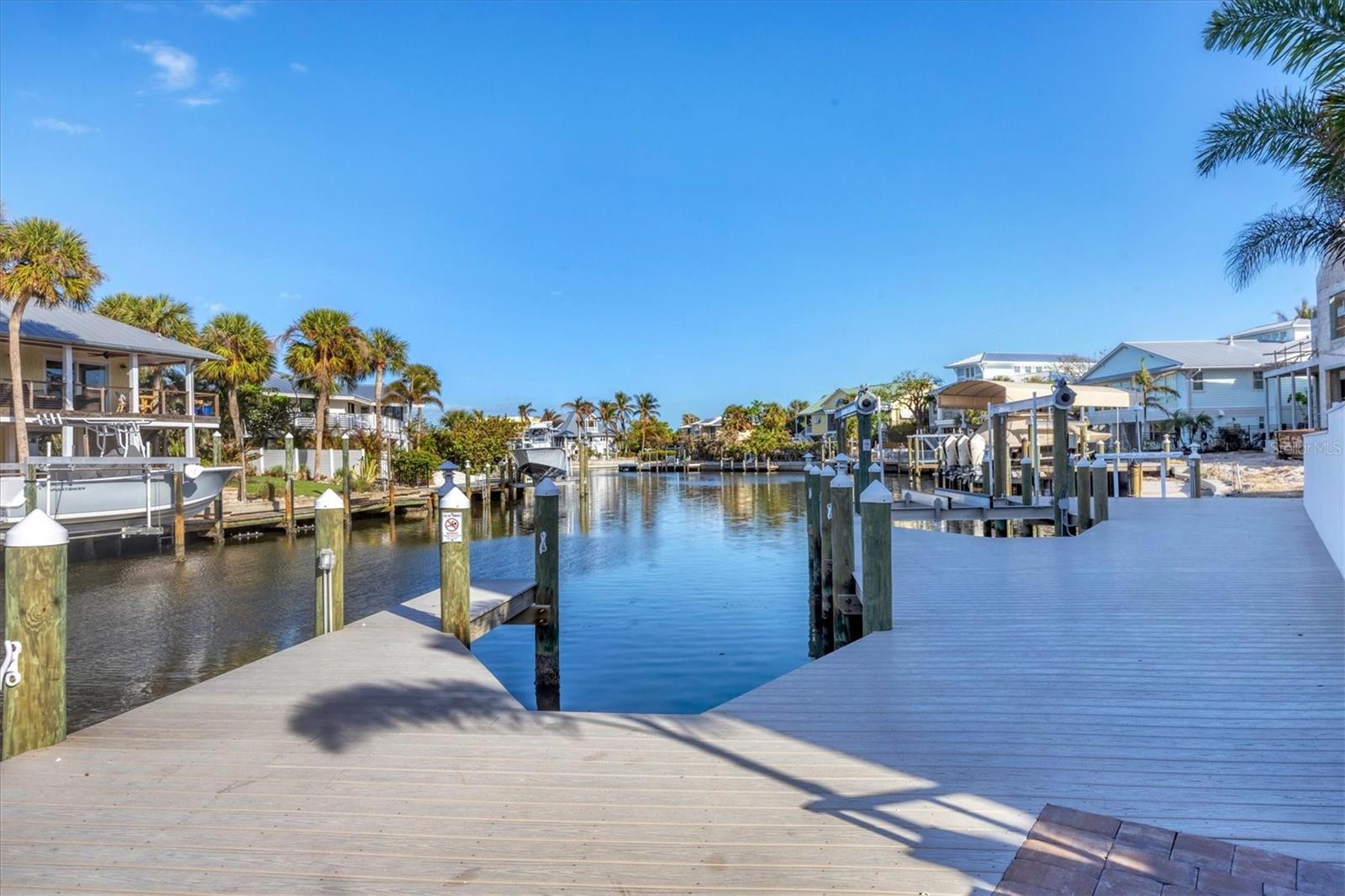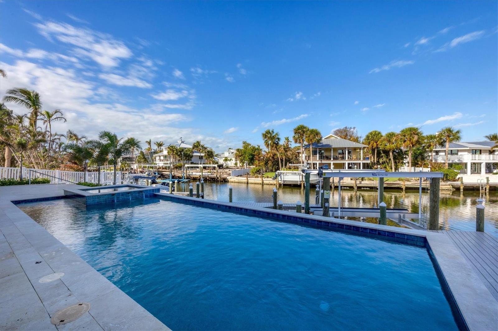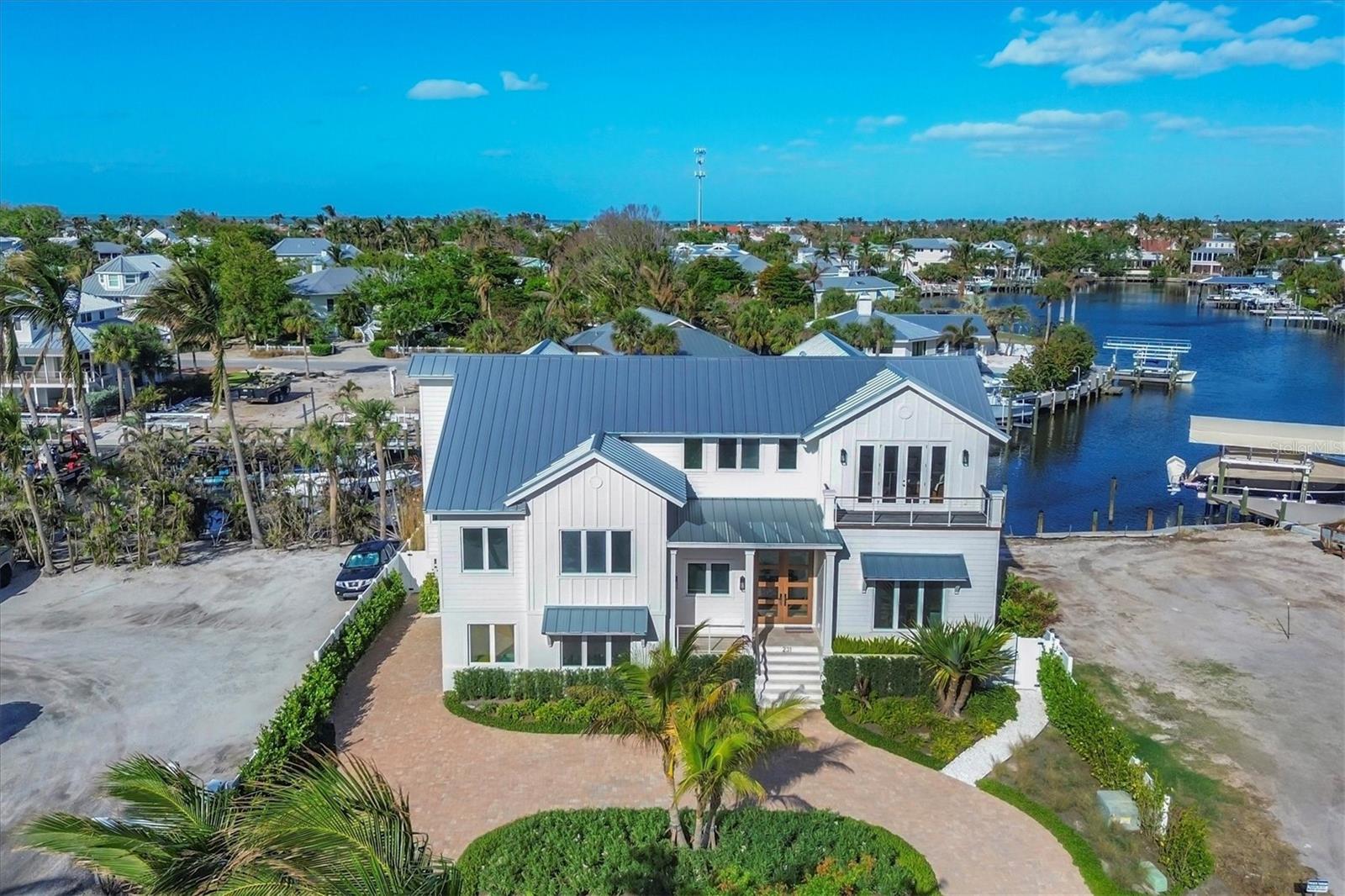 Esta nova residência personalizada à beira-mar está situada no bairro Waterways. O nível principal apresenta um layout de conceito aberto com tetos altos, detalhes em shiplap e um fluxo interno-externo contínuo. A cozinha gourmet está equipada com eletrodomésticos de última geração, armários de bordo, iluminação sob medida e uma grande ilha. Este nível também possui uma sala de jantar separada e uma suíte de hóspedes. A ampla área de estar se abre para vistas espetaculares do mar através de portas de vidro deslizantes, enquanto a varanda adjacente com cozinha de verão oferece o ambiente externo ideal. O último andar oferece um bar de vinhos e café com localização central e uma área de lounge, perfeita para relaxar. A luxuosa suíte principal inclui um escritório ou berçário adjacente, completo com um terraço privativo com vista para a baía. Dois quartos de hóspedes adicionais, cada um com um banheiro luxuoso, compartilham a sala de família/mídia. O quintal paisagístico exuberante destaca a cintilante piscina de água salgada e o spa. Para os entusiastas da navegação, um cais privado com três ancoradouros, um equipado com elevador de 20.000 libras, oferece acesso direto ao Porto de Charlotte e ao Golfo do México. A Marina de Boca Grande, nas proximidades, oferece ancoragem para iates, restaurante, bar e loja de navios. Acabamentos de qualidade superior, incluindo piso de madeira de carvalho projetado, grades de cabos, janelas de batente de impacto de furacão da Eastern Architectural Systems, revestimento composto de concreto, deck de ipê e um elevador conveniente. A casa também oferece amplo espaço de armazenamento e garagem para três carros. Localizada a poucos minutos do charmoso centro de Boca Grande, com suas praias de classe mundial, restaurantes e lojas renomadas, esta residência oferece o melhor estilo de vida insular.