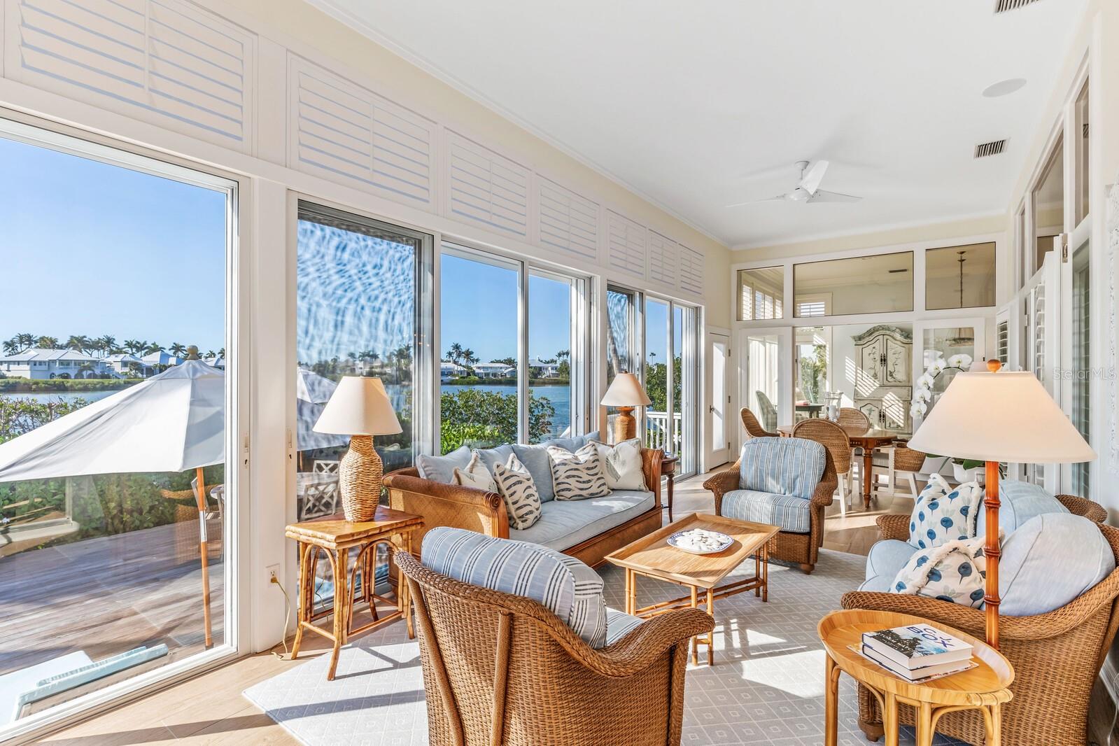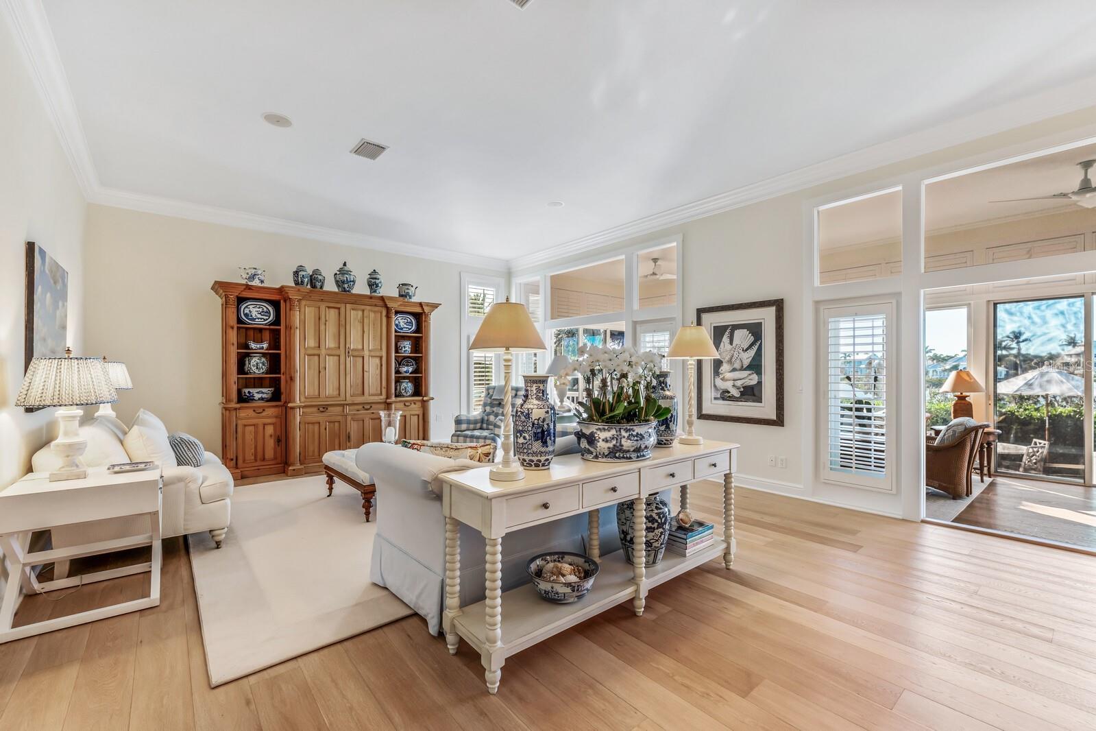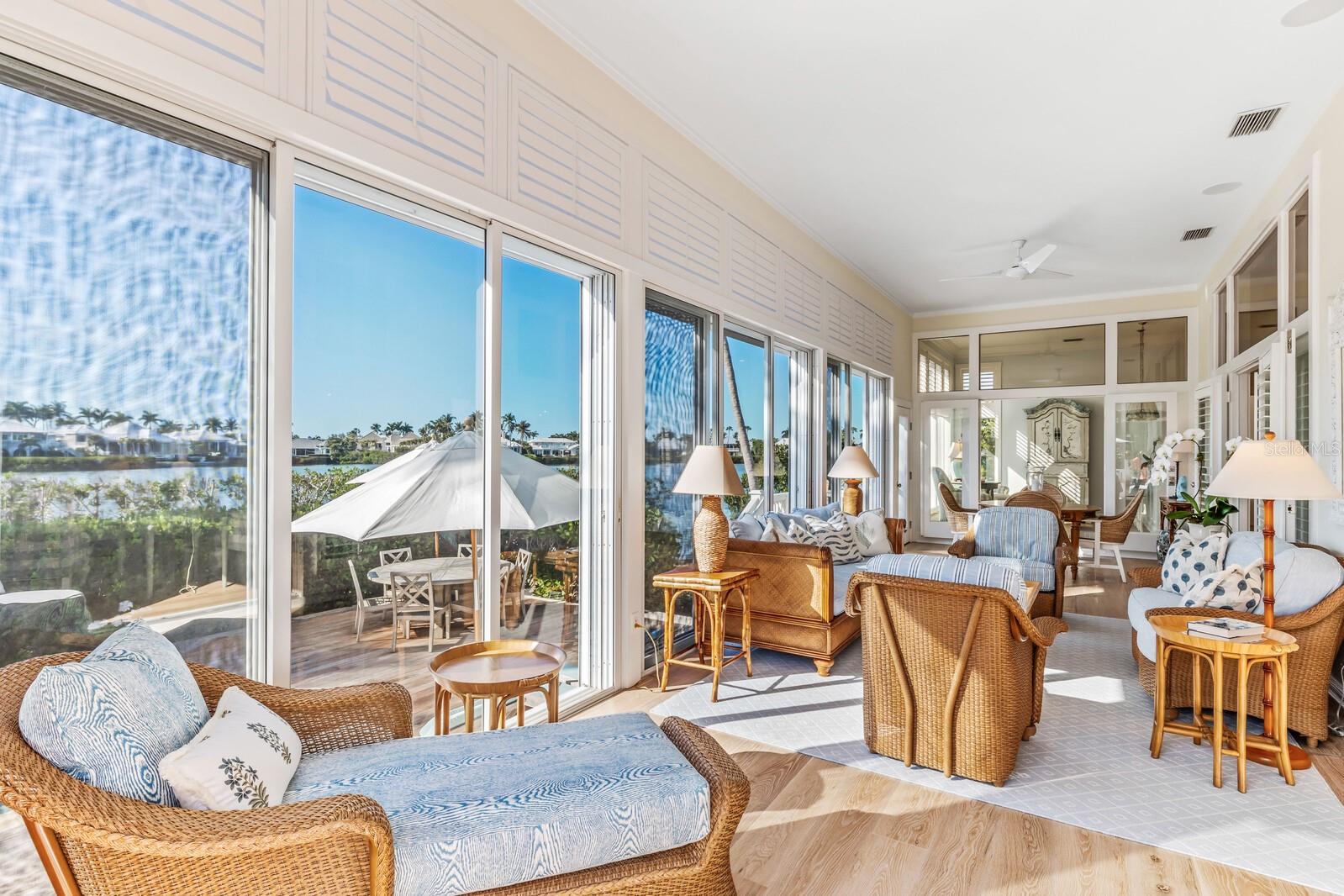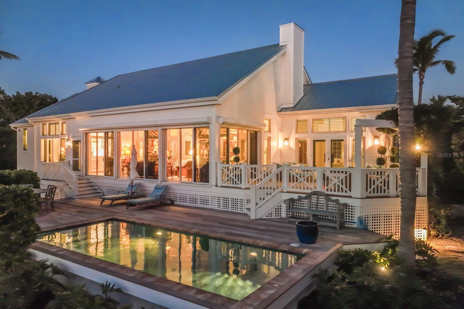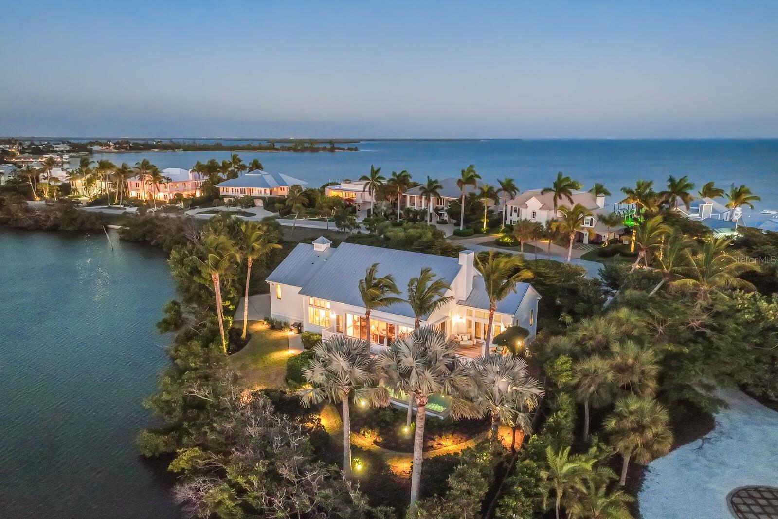 Experimente o estilo de vida à beira-mar nesta casa construída sob medida, onde o estilo encontra a serenidade atemporal. Desfrute de vistas deslumbrantes da baía de Hole-In the-Wall Bay com 185 pés de frente para o mar. Esta residência meticulosamente projetada com 3 quartos e 3 1/2 banheiros possui aproximadamente 3.200 pés quadrados sob o ar, oferecendo uma combinação incomparável de conforto luxuoso e localização imbatível na água. Esta casa possui uma área de estar de conceito aberto que oferece espaços perfeitos para entretenimento interno/externo. A área de estar principal é cercada por vista para a baía e é composta por uma ampla área de estar/jantar com tetos altos, piso de tábuas largas de madeira projetada, venezianas, sancas, sistema de alto-falantes, armários embutidos, portas de núcleo sólido, lavabo , e uma grande lavanderia com uma geladeira Sub-Zero secundária. Um destaque especial é a marquise, adjacente à área de estar com paredes de vidro que proporcionam vistas panorâmicas da baía com persianas de enrolar. Vários pontos de acesso a áreas de entretenimento ao ar livre oferecem um refúgio ideal. A cozinha gourmet com bancada de quartzo, eletrodomésticos Sub-Zero e Thermador, incluindo fogão a gás de 5 bocas, armários elegantes, eletrodomésticos de aço inoxidável, bar molhado com refrigerador de vinho, oferece uma área de estar vizinha cercada por janelas salientes. A espaçosa suíte principal do andar principal possui teto alto, portas duplas de vidro que dão acesso à piscina, box amplo e closet amplo. O nível superior oferece um oásis perfeito para a família e convidados, com dois quartos generosos com janelas de vidro contra o impacto do furacão. As nomeações adicionais incluem paredes de revestimento de lambris, iluminação paisagística, sistemas de aquecimento/resfriamento de três zonas, garagem para 2 carros mais carrinho de golfe e elevador de 2 pontos. O deck de madeira IPE circunda a piscina em frente à baía com uma charmosa pérgula adicionando interesse arquitetônico à diversão ao ar livre. Esta obra-prima à beira-mar está localizada no condomínio fechado de Boca Grande Isles.