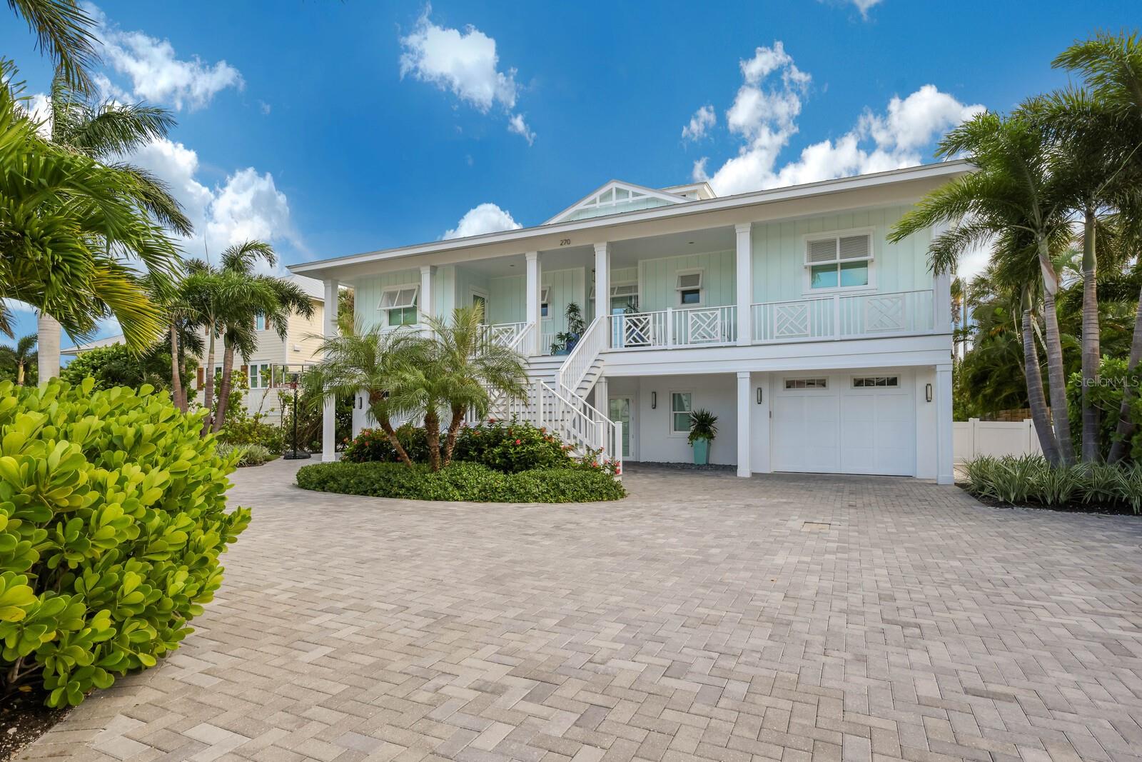 COSTEIRO CONTEMPORÂNEO... Construção mais recente (2016), Locke construiu uma casa. A uma curta distância da vila! Todos os materiais modernos projetados para o mínimo de manutenção e construídos para proteção contra tempestades. Design clássico do Farol Olde Florida/Histórico de Boca Grande com varandas com cadeiras de balanço na frente e atrás, persianas Bahama, entrada deslumbrante na porta da frente para uma sala de estar combinada e centralizada, sala de jantar e cozinha aberta diretamente para a piscina do quintal no lado sul. Quatro quartos completos e quatro banheiros completos com portas e janelas altas de impacto por toda parte. Suíte Master espaçosa no lado oeste com portas francesas para a varanda com vista para a atraente piscina do quintal e a exuberante paisagem tropical. Grande closet e chuveiro separado, banheira de imersão relaxante, pias duplas e muito mais. A deslumbrante e imponente torre de luz de 20 pés com tema Farol é o ponto focal do seu Open Living e no lado leste há 2 suítes e 3º quarto com o 3º banheiro completo no lado leste. A suíte sudeste ao lado da piscina tem dois beliches e acomoda quatro pessoas. Todas as bancadas são lindas de Quartzo Cambria, incluindo a ampla ilha central da sua cozinha. Todos os armários de madeira de origem local são abundantes, visualmente atraentes e de excelente acabamento! Os aparelhos Thermador incluem fogão a gás com grelha, refrigerador de vinho e muito mais. Os recursos de apelo do meio-fio passam por uma estrada circular de pavimentação de tijolos, passarelas de pavimentação, entradas atraentes para a casa no térreo e níveis elevados do piso principal e muito mais. O grande quintal oferece cercas e portões de qualidade atraente para uma piscina com terraço cercada por pedras de concha frescas para seus pequenos e animais de estimação! Paisagismo tropical exuberante por toda parte, chuveiro(s) ao ar livre, fogueira, sistema de nebulização de insetos, muito armazenamento e muito mais. Duas grandes garagens tandem (4 carros de tamanho normal), com a garagem do lado leste climatizada e também incluindo 2 vagas adicionais para carrinhos de golfe! Espaço bônus muito atraente por toda parte...Venha dar uma olhada...você ficará encantado por ter feito isso!