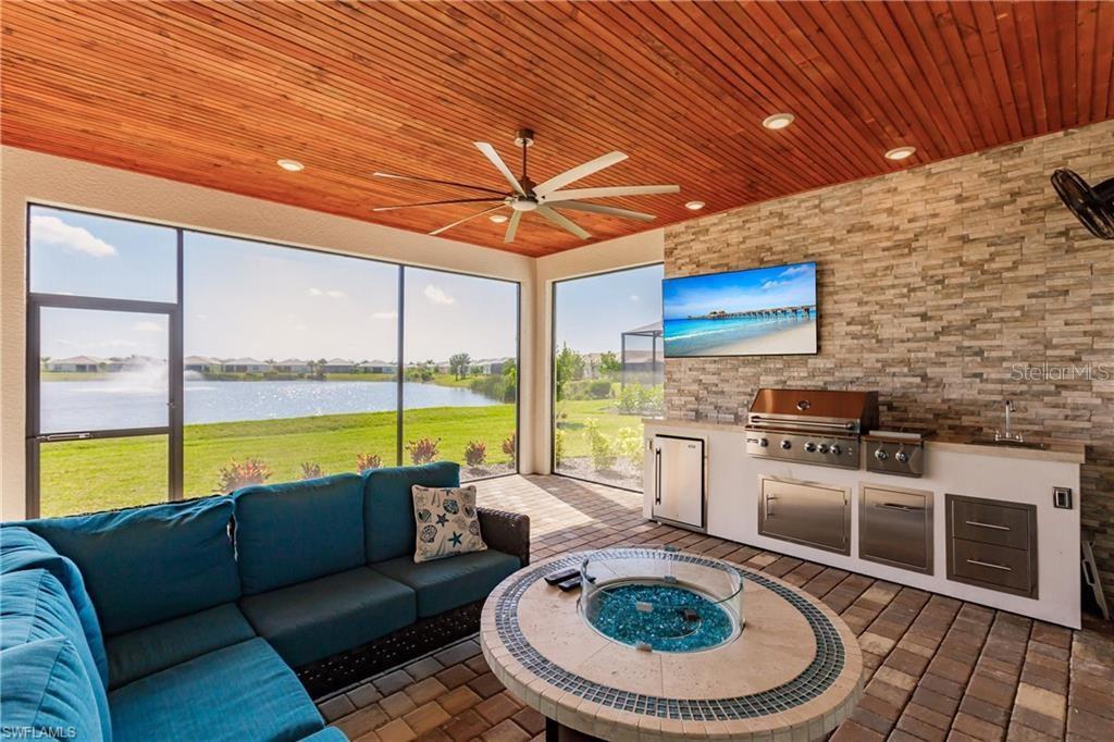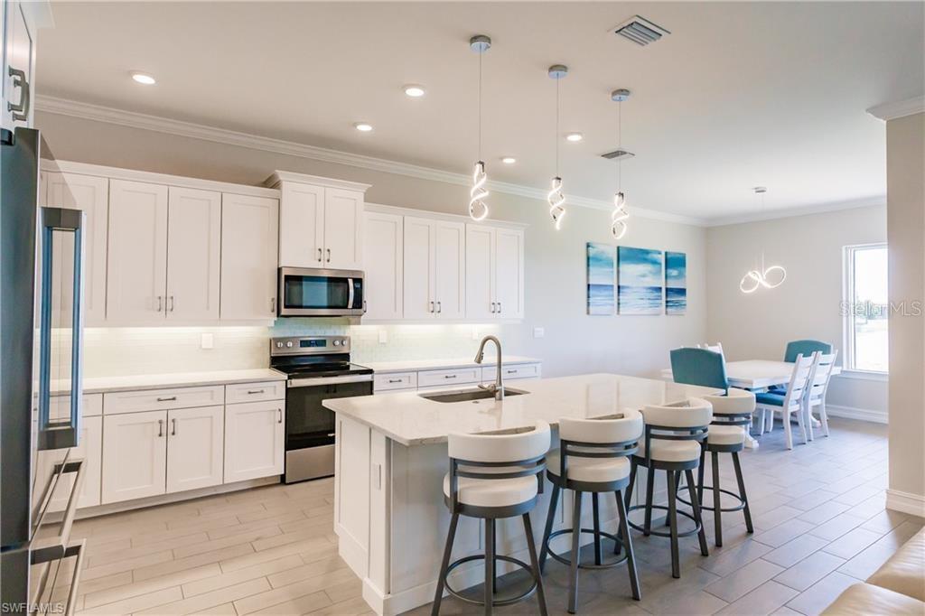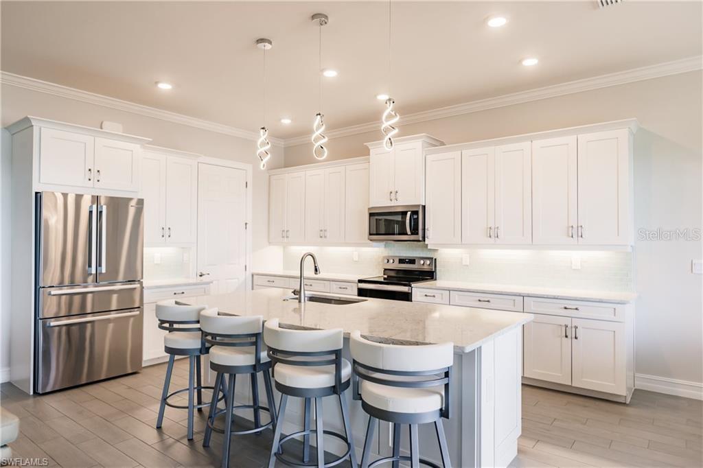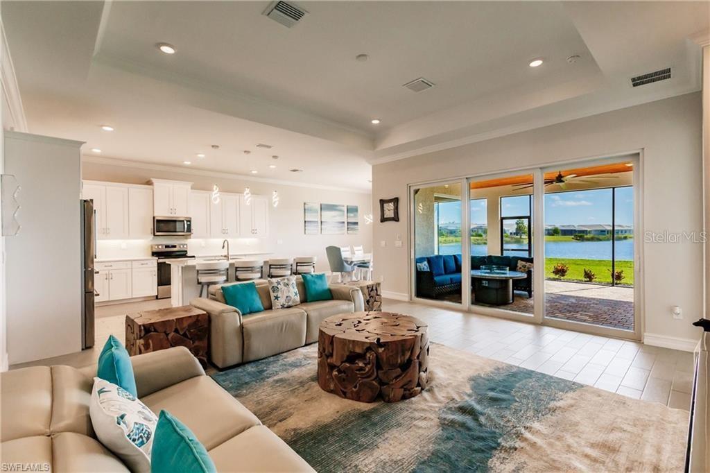 Bem-vindo a esta bela casa com GARAGEM DE 3 CARROS na comunidade estilo resort de Seasons At Bonita, construída em 2023 em um lote premium. Assista ao deslumbrante nascer do sol sobre o lago em sua grande varanda estendida, que foi atualizada para apresentar uma bela área externa com cozinha externa completa e teto com painéis de madeira. Este desejável Plano Wheaton oferece 3 quartos mais uma sala e 5 banheiros no total (3 completos, 2 meio), proporcionando uma área total de 2.540 pés quadrados. Ao entrar na casa, você é recebido por uma vista deslumbrante para o lago. Esta casa SMART possui inúmeras atualizações, incluindo janelas e portas de impacto, armários de 42 polegadas com iluminação sob o armário, eletrodomésticos de aço inoxidável, bancadas de quartzo, geladeira Bosch, sancas, piso de garagem em epóxi, iluminação moderna e atualizada e um belo recurso parede na área de estar. A planta baixa inclui um quarto principal extragrande com dois closets e um box amplo extragrande. O quarto secundário dispõe de banheiro privativo. Além disso, há uma enorme despensa. Há muito espaço para uma piscina e a casa fica a poucos passos do centro comunitário. Não perca a oportunidade de tornar sua bela casa e experimentar o melhor do estilo de vida da Flórida.
