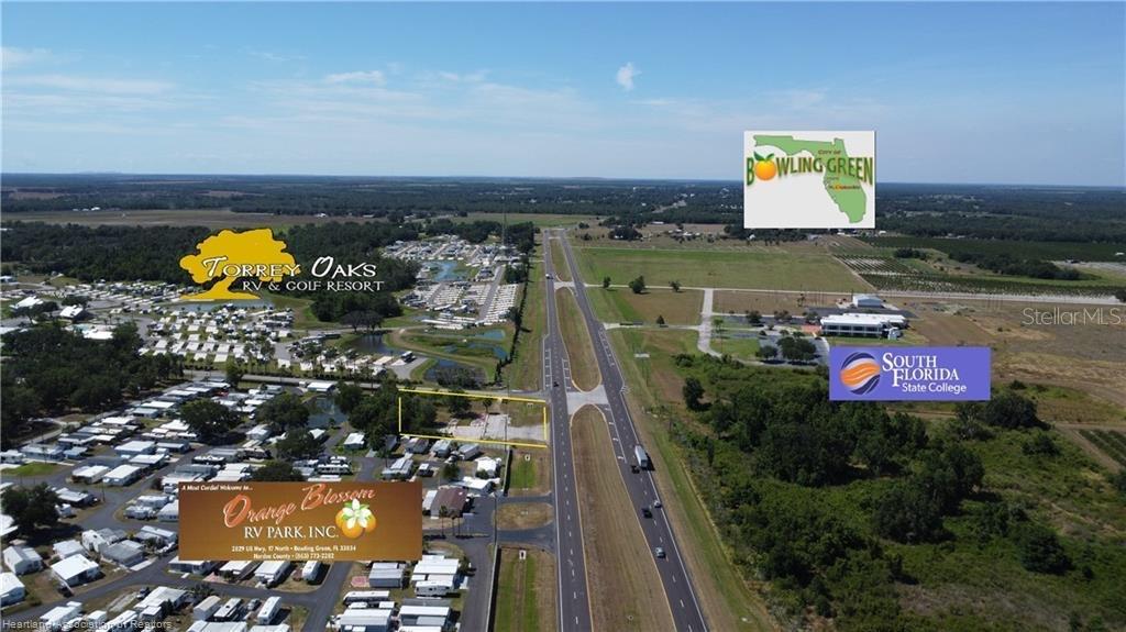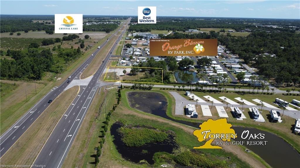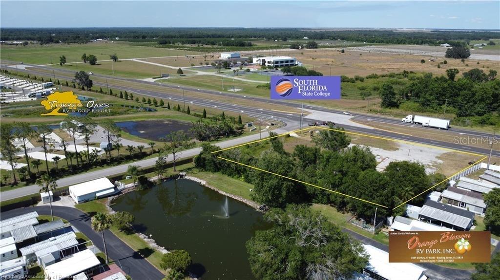 Uma esquina difícil de um acre na US Hwy 17, com cruzamento, entre dois resorts para trailers em expansão - um com campo de golfe - e em frente ao South Florida State College. Os hóspedes e residentes do resort SFSC e RV NÃO têm loja de varejo/conveniência, fast food ou combustível por três quilômetros em qualquer direção. Este lote fica a 240 pés do campus SFSC, contíguo a um resort para trailers e no caminho para a entrada principal do outro. A contagem diária de tráfego excede 18.000 na rodovia e um tremendo tráfego local nesta esquina impulsionado pelo campus da faculdade, campo de golfe e resorts para trailers!